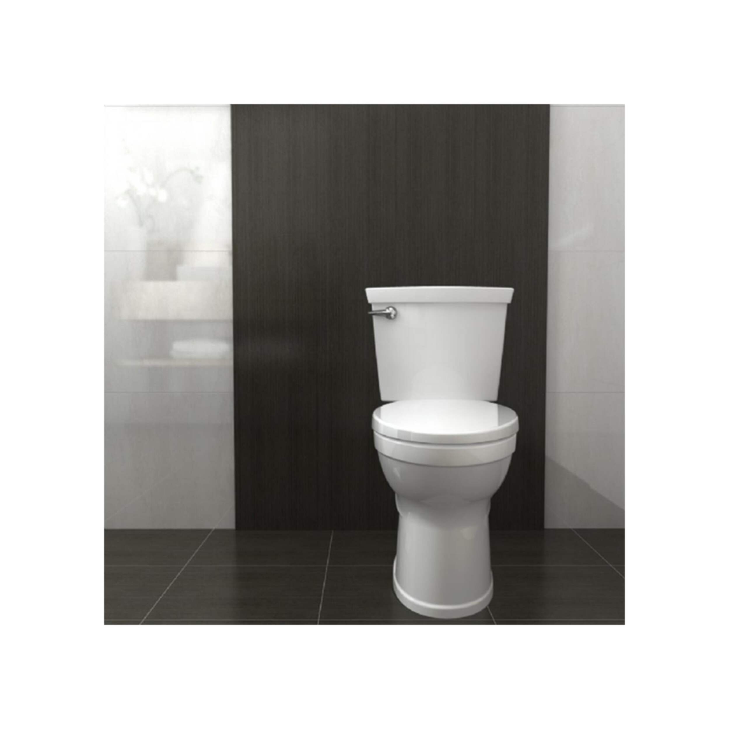 Upgrade your bathroom with the comfort and convenience of the American Standard Champion 4 Right Height Elongated Complete Toilet. This 4.9 litre per flush toilet delivers a powerful flush with its champion flushing system. An enlarged flush valve and trapway move waste nearly 70% larger than regular toilets, virtually eliminating clogs. The EverClean surface inhibits bacteria, mould and mildew growth for easy cleaning. Included with the complete package are a slow-close seat, wax ring, bolts and no-tool installation for simple do-it-yourself installation.