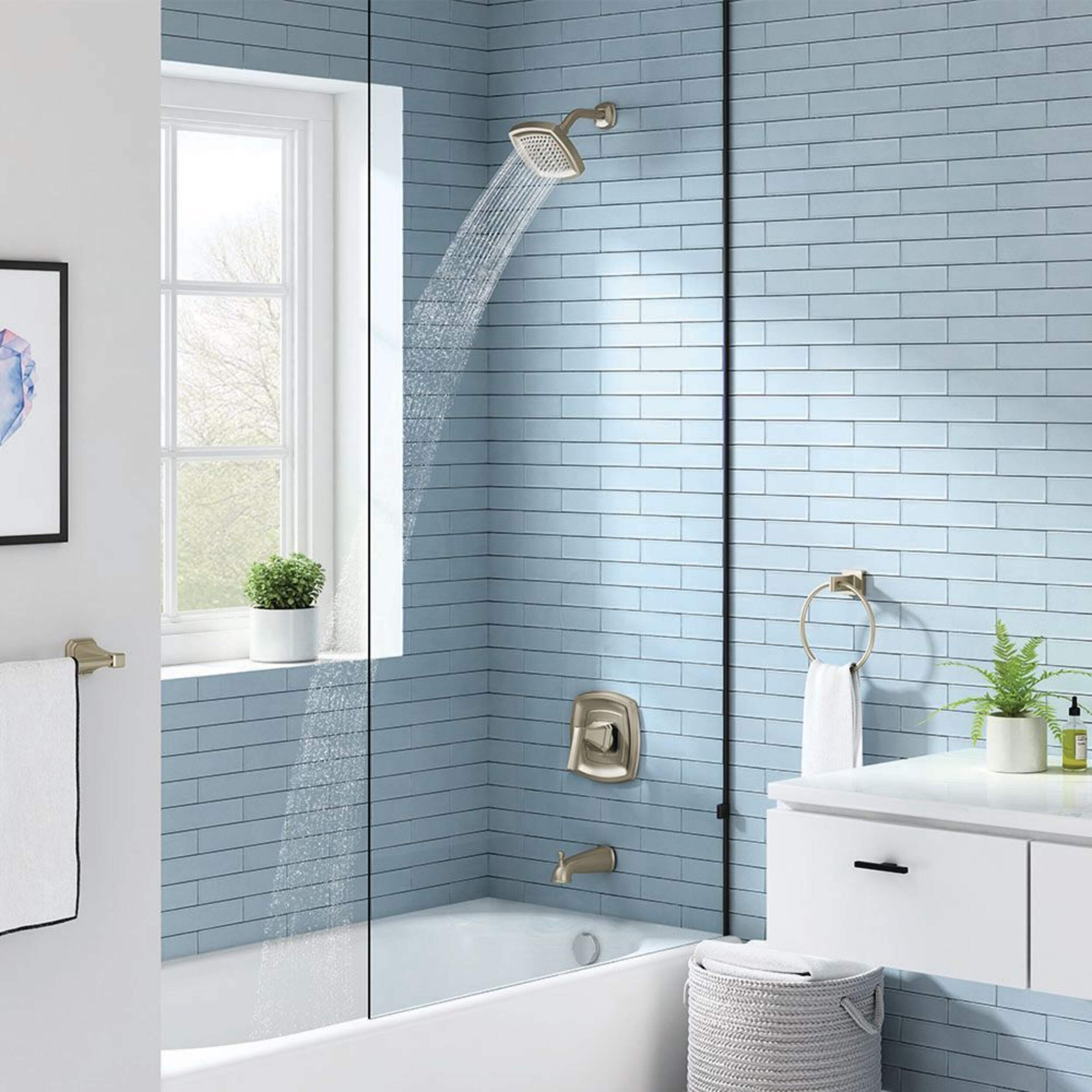 The American Standard Westerly Brushed Nickel Tub and Shower Trim Kit is designed to complement the American Standard Westerly collection