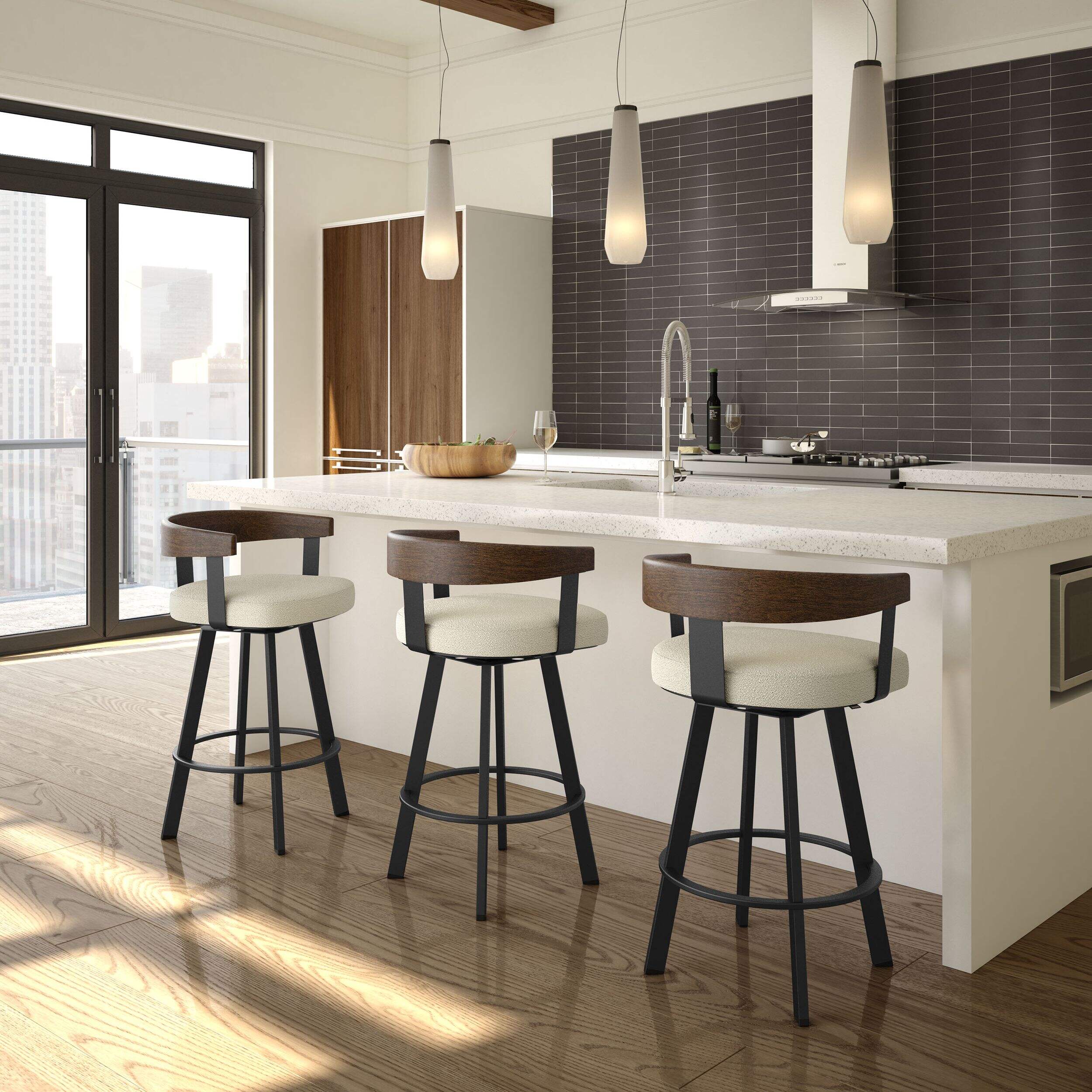 Cozy up to your kitchen island or home bar with the Amisco Lars Wood Swivel Counter Stool. Crafted with a superior steel frame, you won't experience any wobbling or teetering with this durable seat. Thanks to its smooth swivel function, you can effortlessly glide between your kitchen and your party space to chat with guests. Complete with all relevant assembly hardware, this stool fuses top-tier craftsmanship with a modern rustic aesthetic.