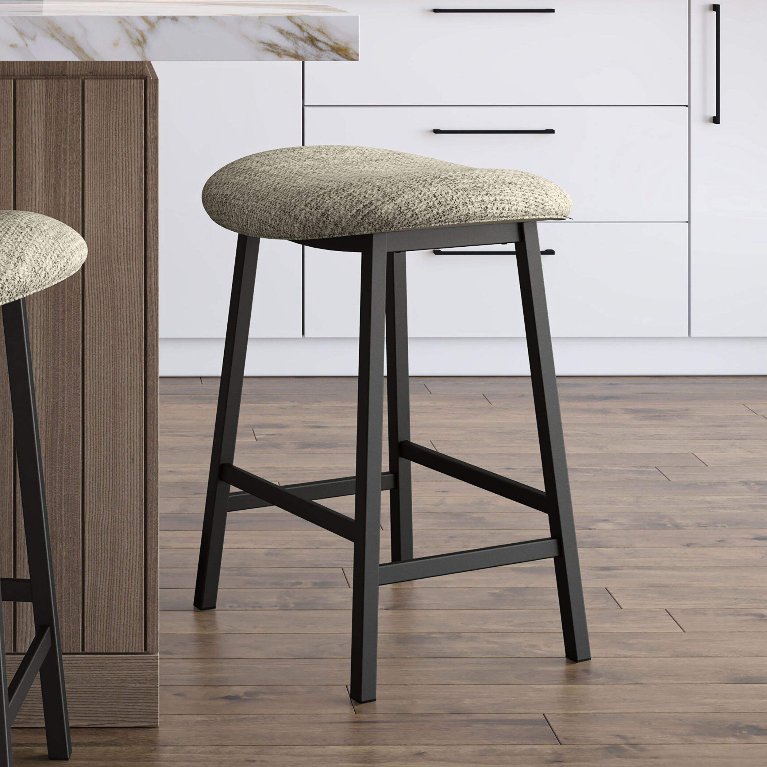 The Winston stool is a versatile piece that effortlessly complements a range of styles and settings, from a rustic farmhouse kitchen to a traditional home bar. Its symmetrical structure pairs beautifully with the smooth curves of the generously cushioned oval seat, offering both comfort and style. It can easily be tucked under the counter, providing a quick and convenient space-saving solution.