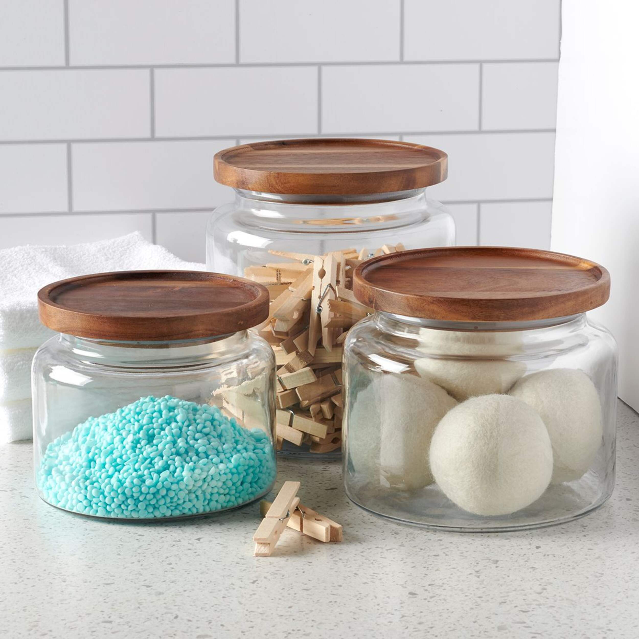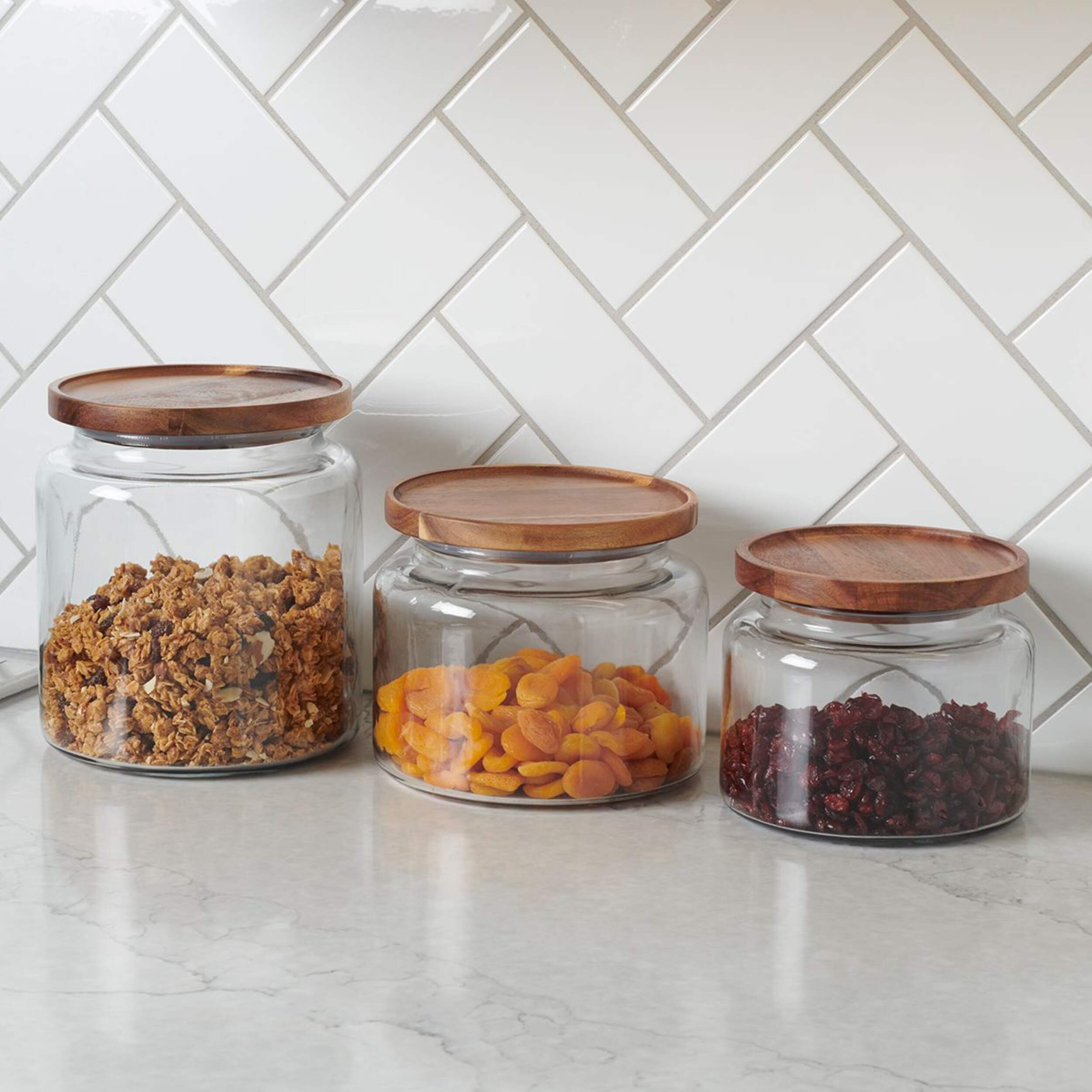 Keep your kitchen organized with the Anchor Hocking Montana® Wide Mouth Glass Storage Jar with Acacia Lid. With a generous 96-ounce capacity, this jar is perfect for storing bulk items like flour, sugar, pasta, and cereals. Made from sturdy glass, it offers a clear view inside and is designed for effortless pouring, scooping, and filling, making your pantry essentials accessible. This jar combines functionality with aesthetic appeal, making it ideal for organizing both wet and dry goods.