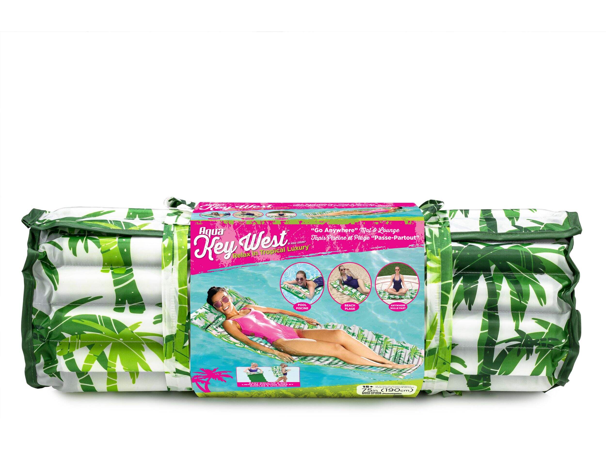 Up your relaxation game with the comfort of the Aqua Inflatable/Foam Fold-and-Go Travel Pool Float/Lounger. This bright, tropical-patterned lounger is ideal for floating lazily in the pool, catching some sun on the beach or even stretched out as an exercise mat. With a comfortable surface and built-in headrest, it provides instant comfort, then rolls up when you're done so it’s easy to take along wherever you go.