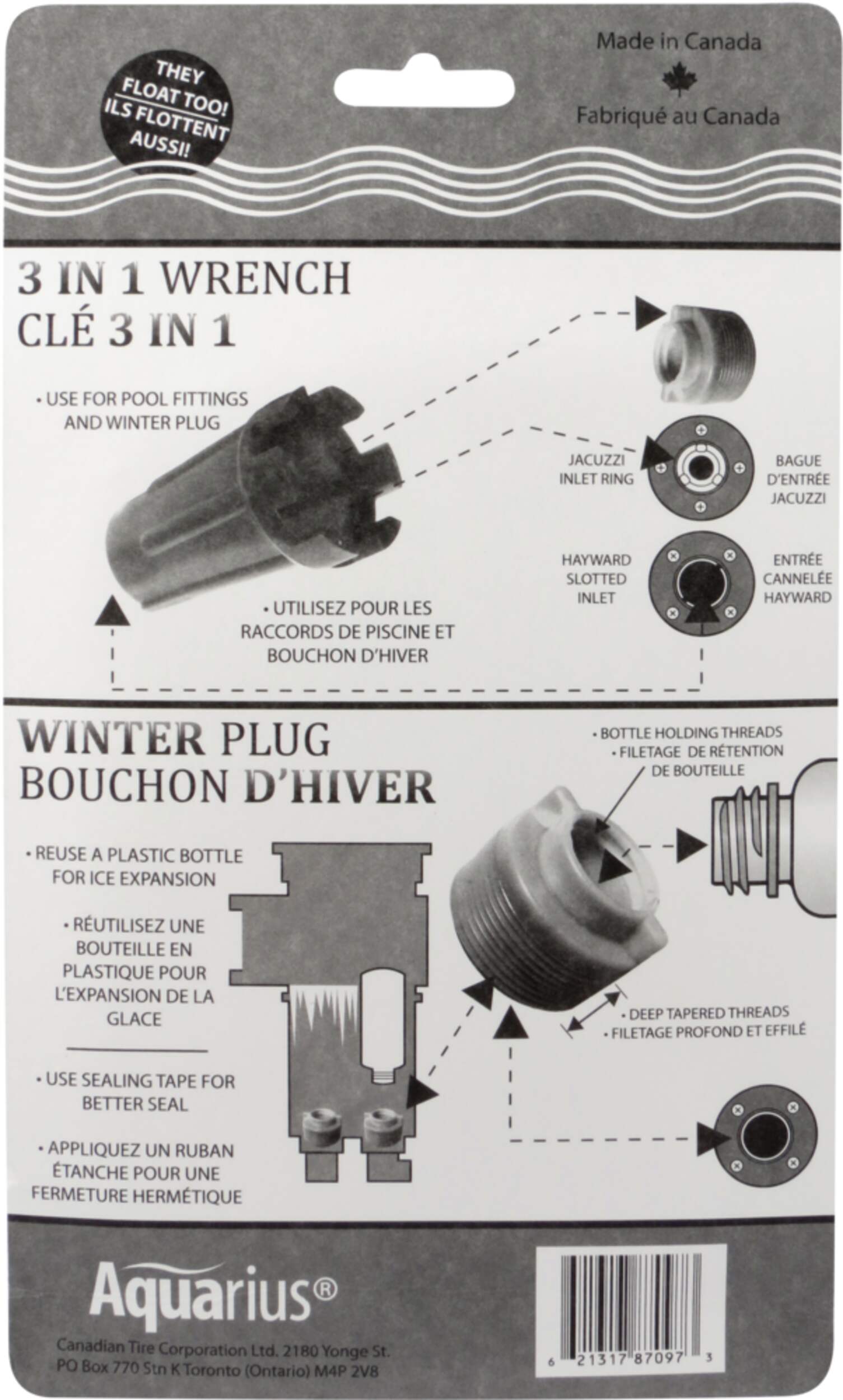 Aquarius Wrench and Plug Package is used at the end of a season to close off pipes, water returns and skimmers from damage over winter