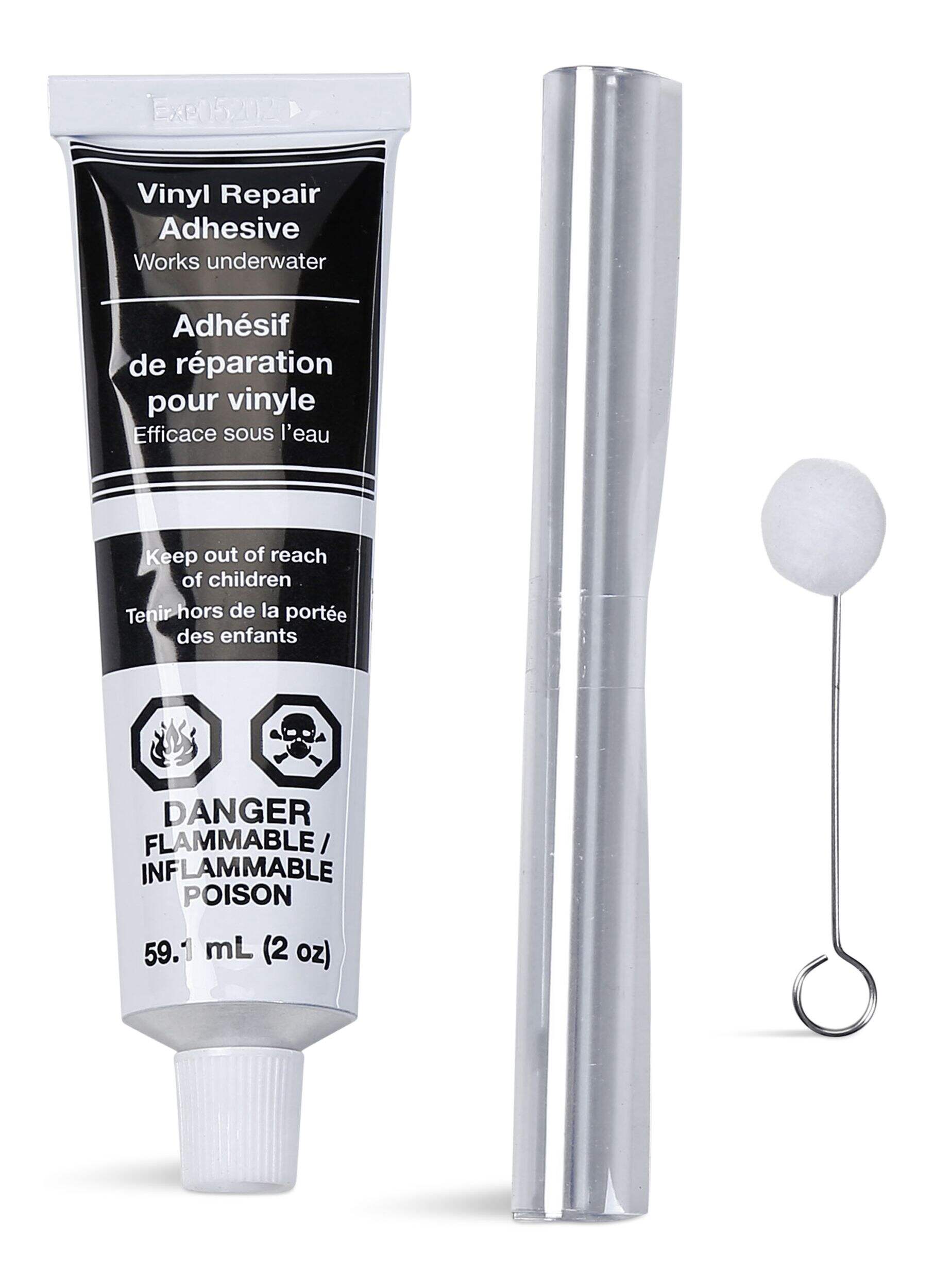 Vinyl Repair Kit includes adhesive, applicator and vinyl patch