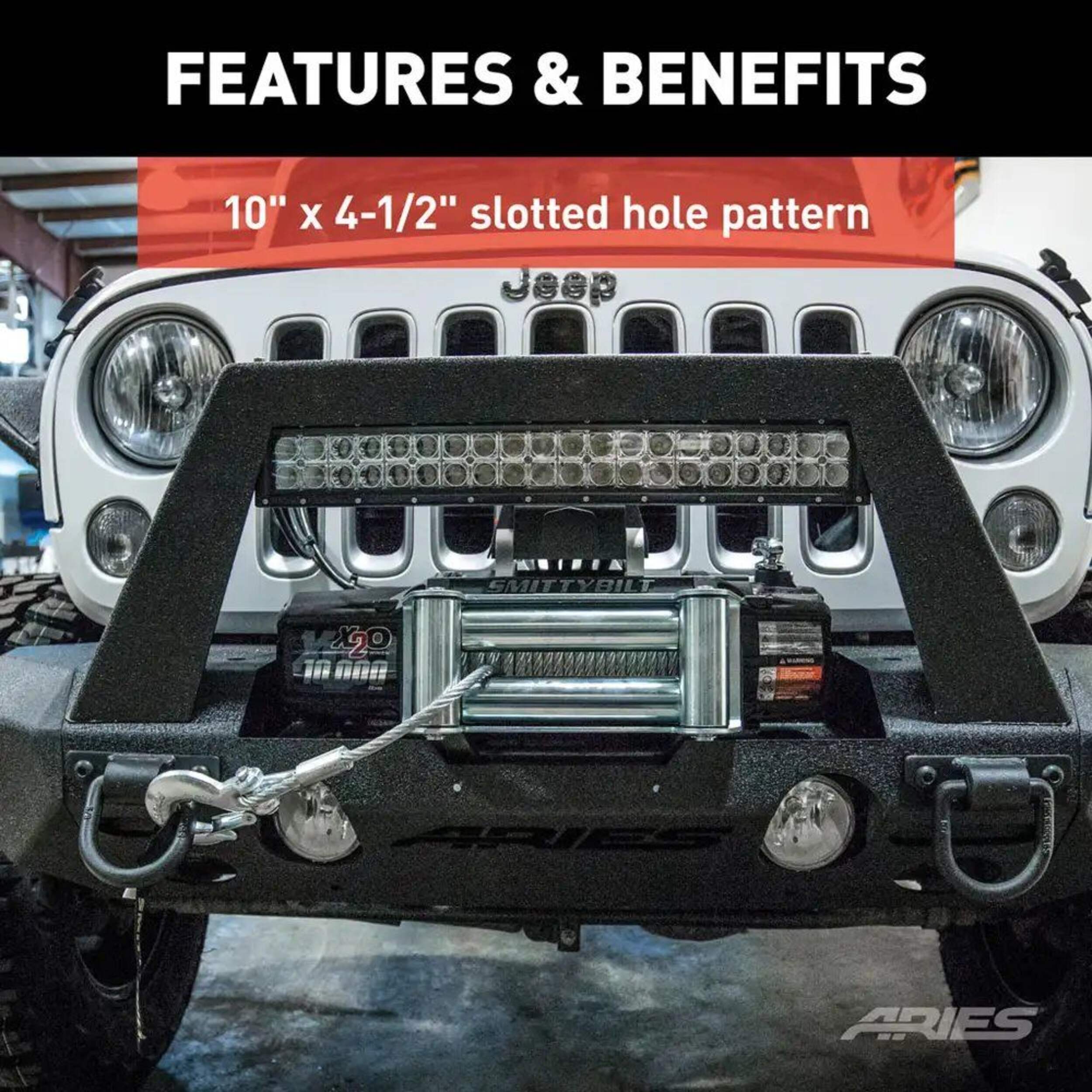 Aries Jeep Winch Reinforcement Bracket features heavy-duty steel construction with durable textured black powder coat finish