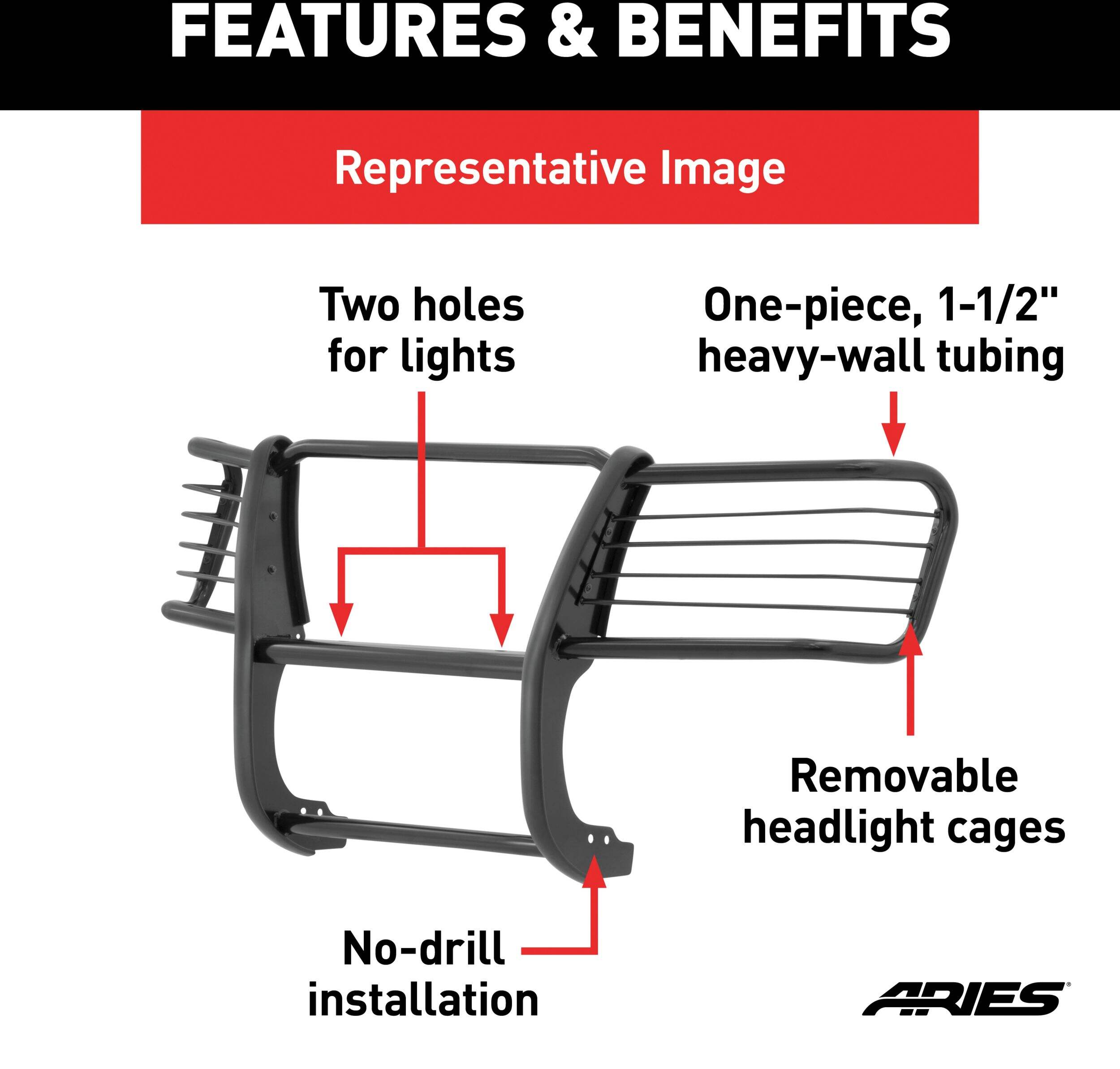 ARIES Grille Guard features a one-piece, 1-1/2" diameter, heavy-wall tube design