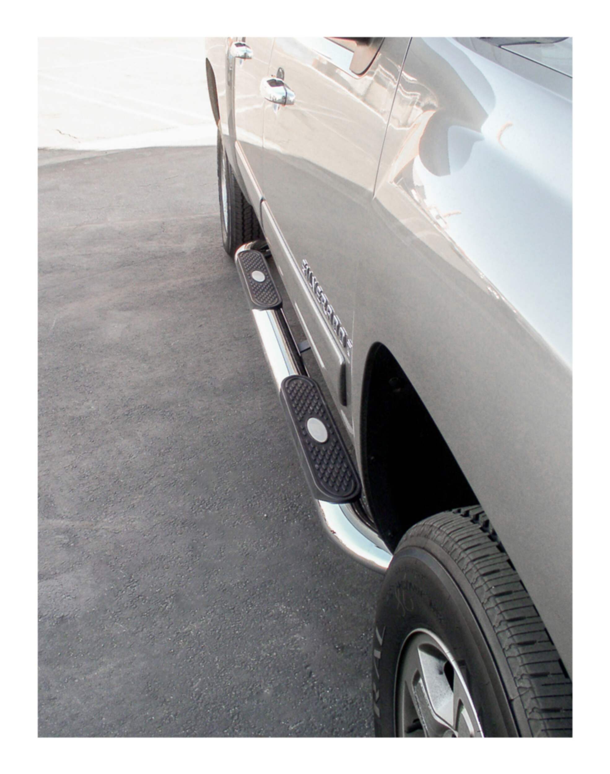 Raised, custom, non-skid step pads for safe, comfortable entry and exit