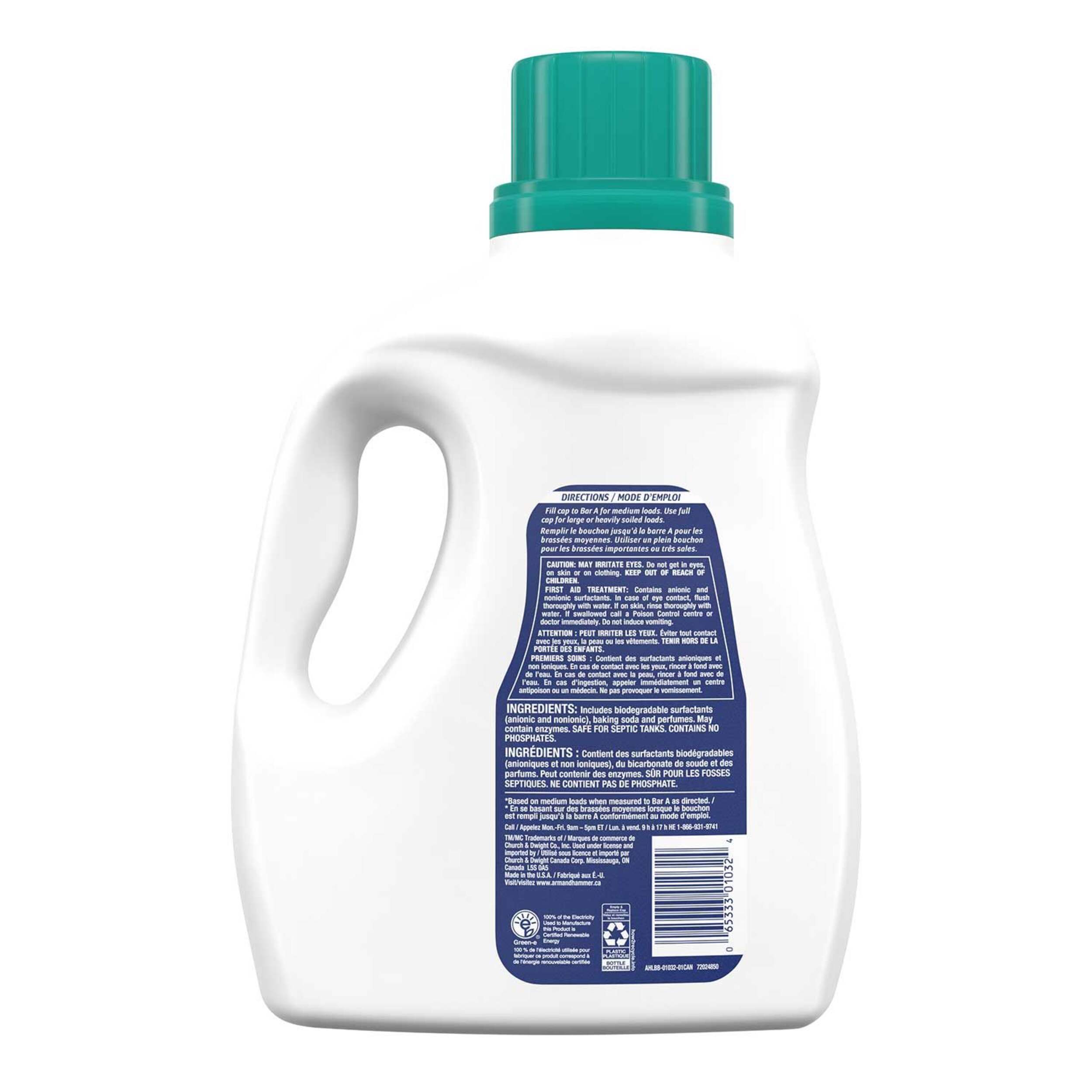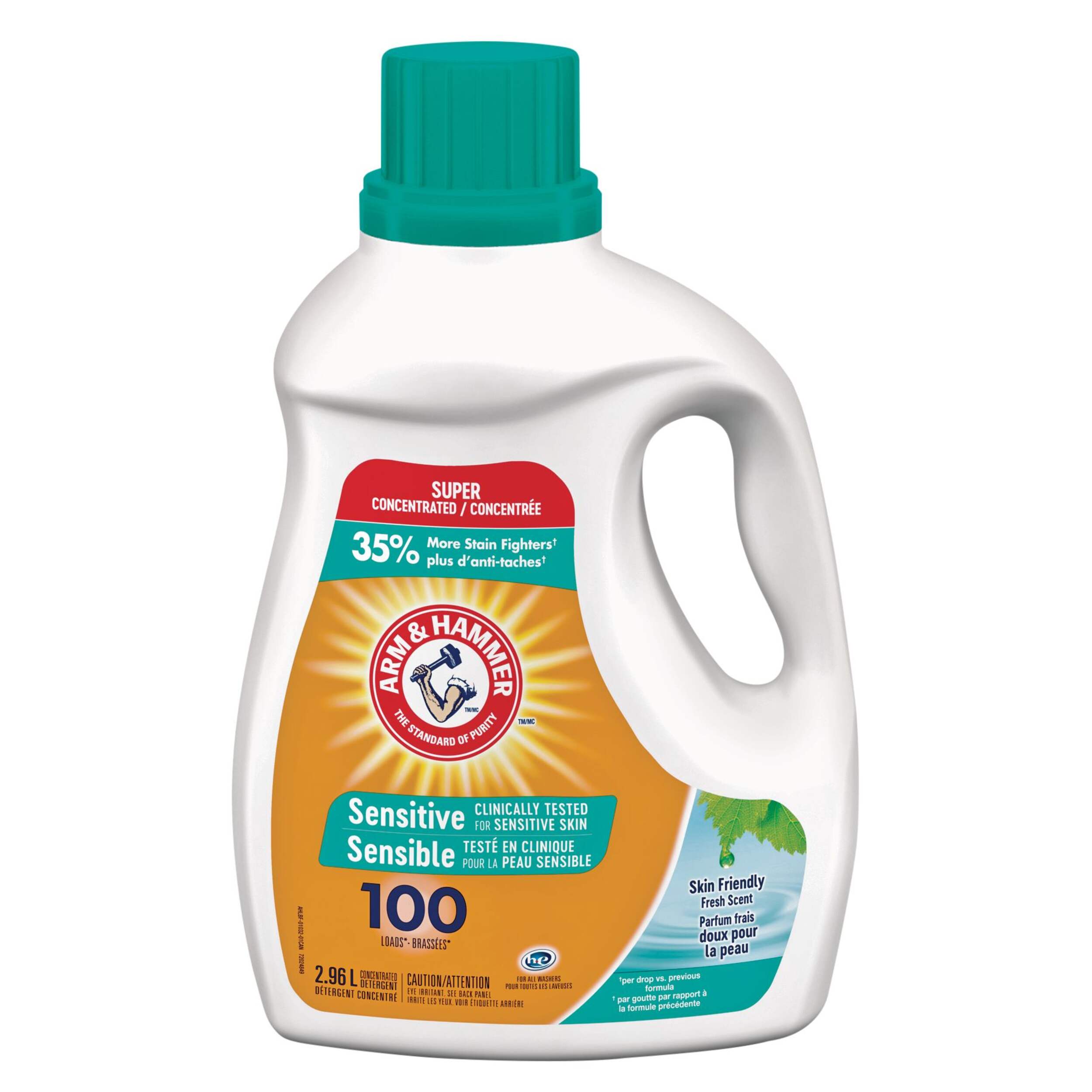 Arm & Hammer Liquid Laundry Detergent features a concentrated formula that tackles dirt and stains with the freshening power of baking soda, leaving your laundry clean and smelling fresh. The low-suds, dye-free detergent is specially designed for people with sensitive skin. Simply fill the cap to the indicated level for medium or large loads - the powerful stain fighters in every drop work hard to deliver the same great clean as before with less detergent.