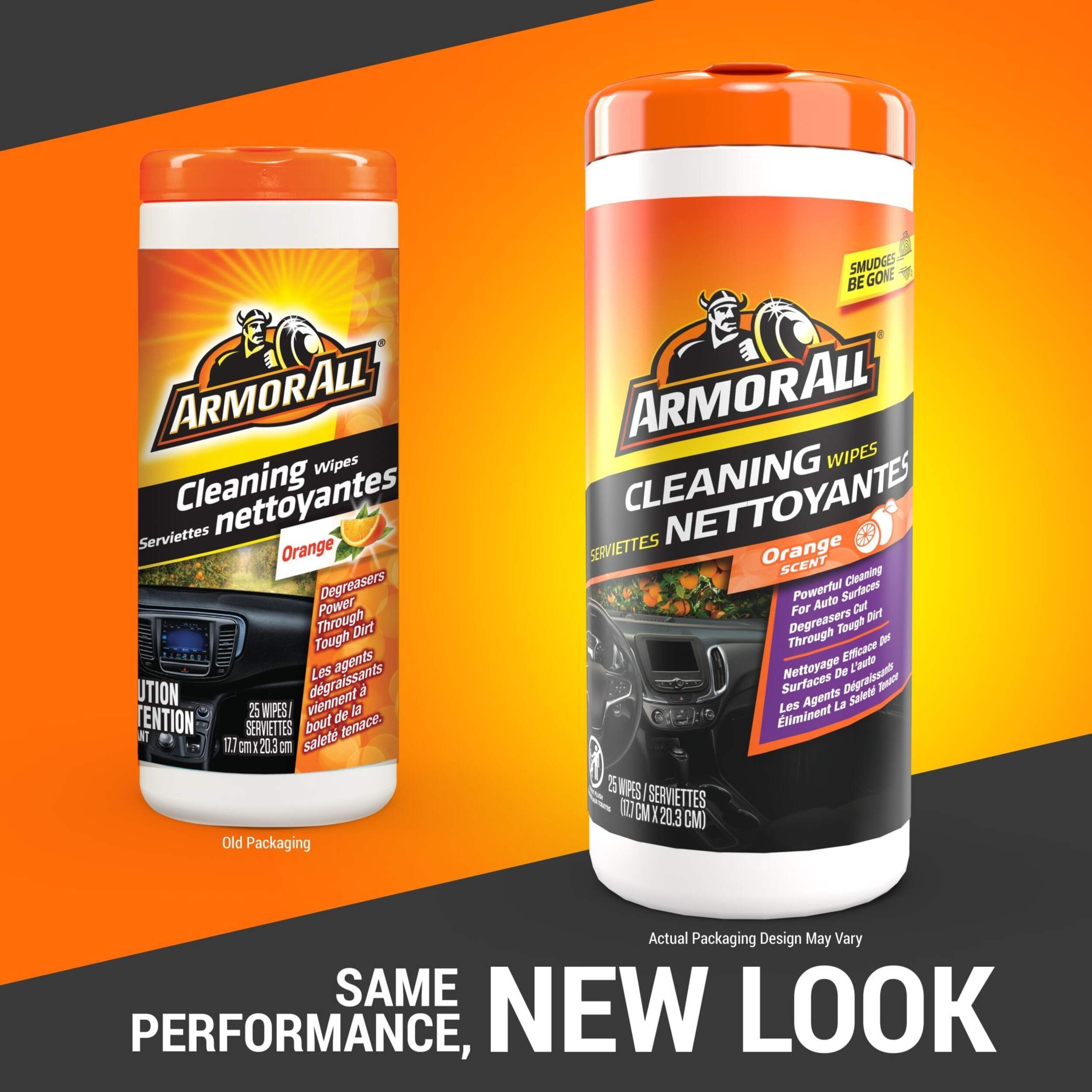 Armor All Orange Air Freshening Car Cleaning Wipes offer a convenient way to clean your car's interior while leaving a refreshing scent. These wipes effectively tackle dirt and grime without harming surfaces like vinyl, fabric, and leather.
