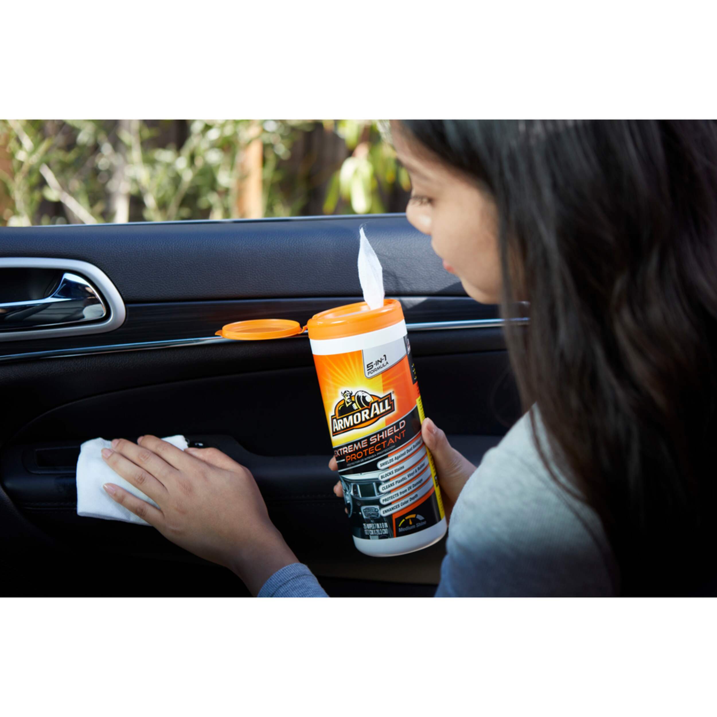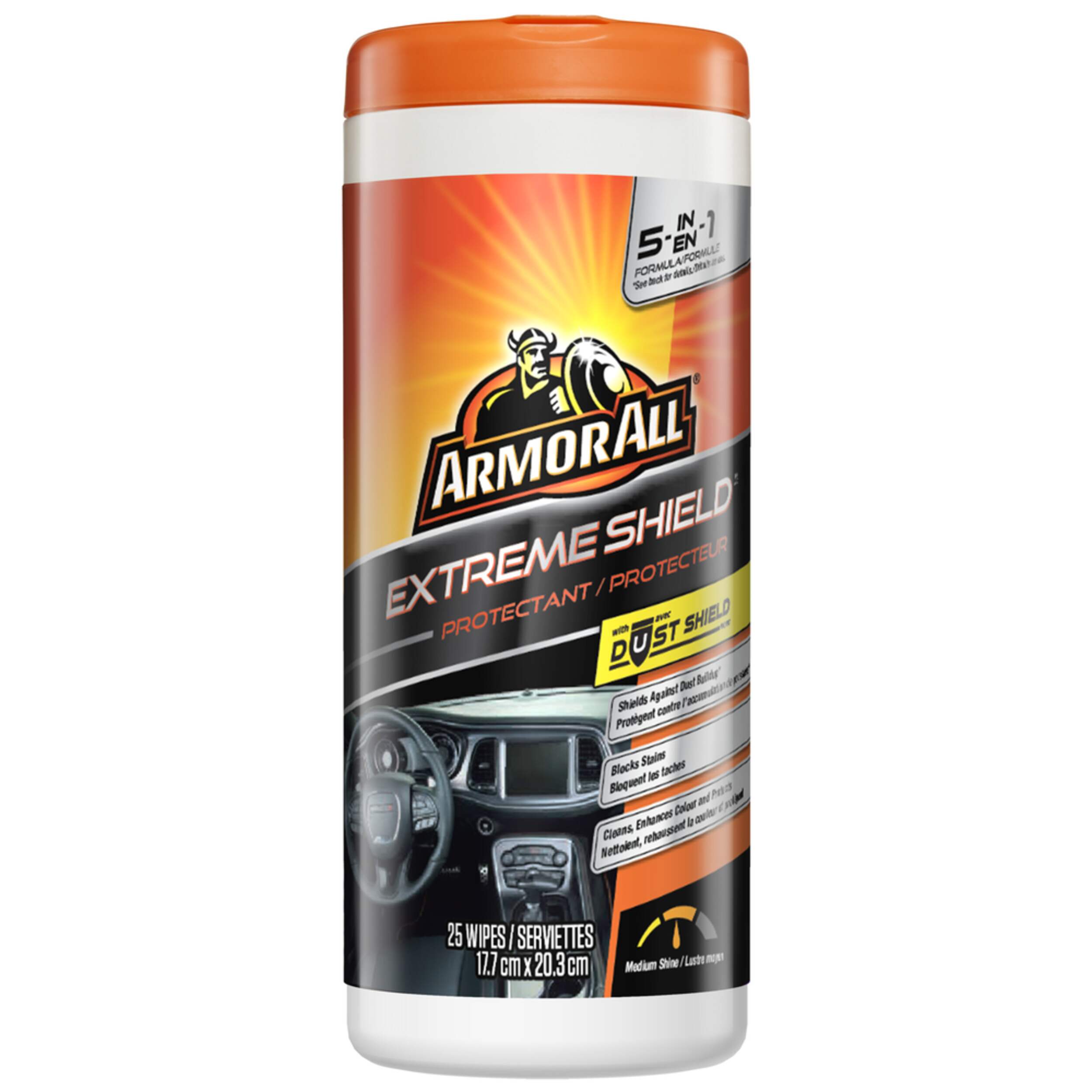 Armor All Extreme Shield Protectant cleans, shines and protects your vehicle’s interior plastic, rubber and vinyl while also helping to prevent dirt, dust and lint buildup to keep your vehicle looking cleaner, longer.