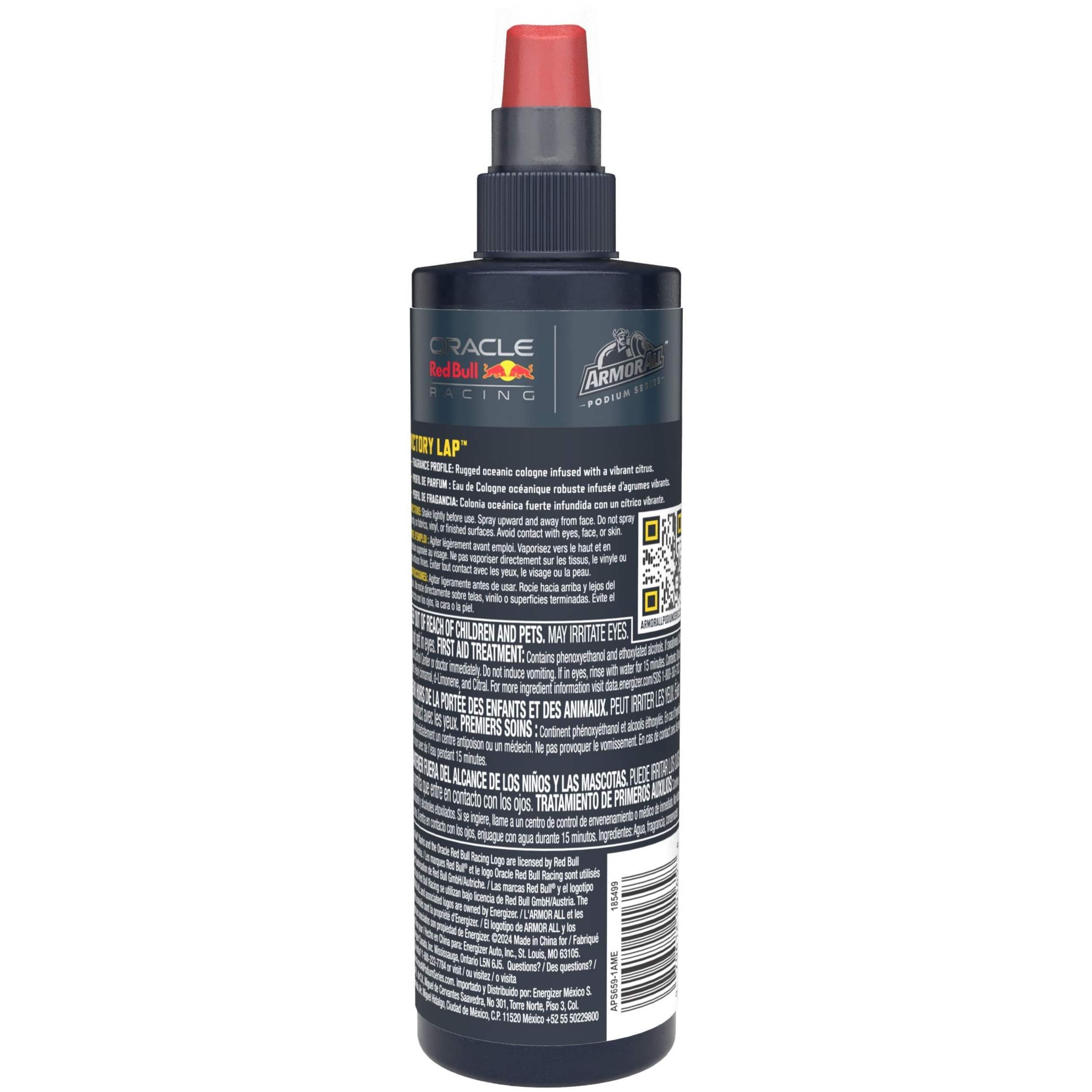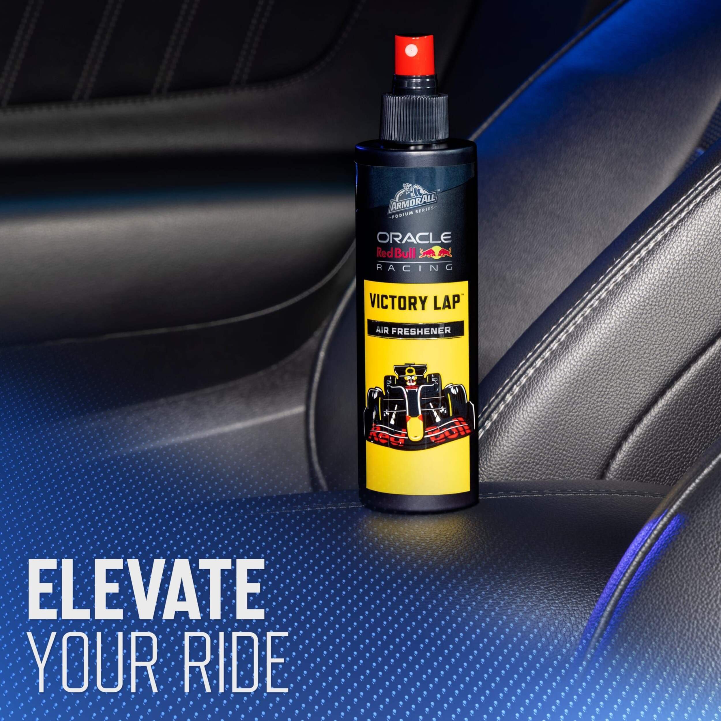 Armor All Victory Lap Air Freshener Spray contains an invigorating fragrance inspired by victory and celebration. Licensed by Armor All and Oracle Red Bull, this water-based spray eliminates odours with a gentle mist. For drivers in need of refreshment, Armor All provides an ideal solution.