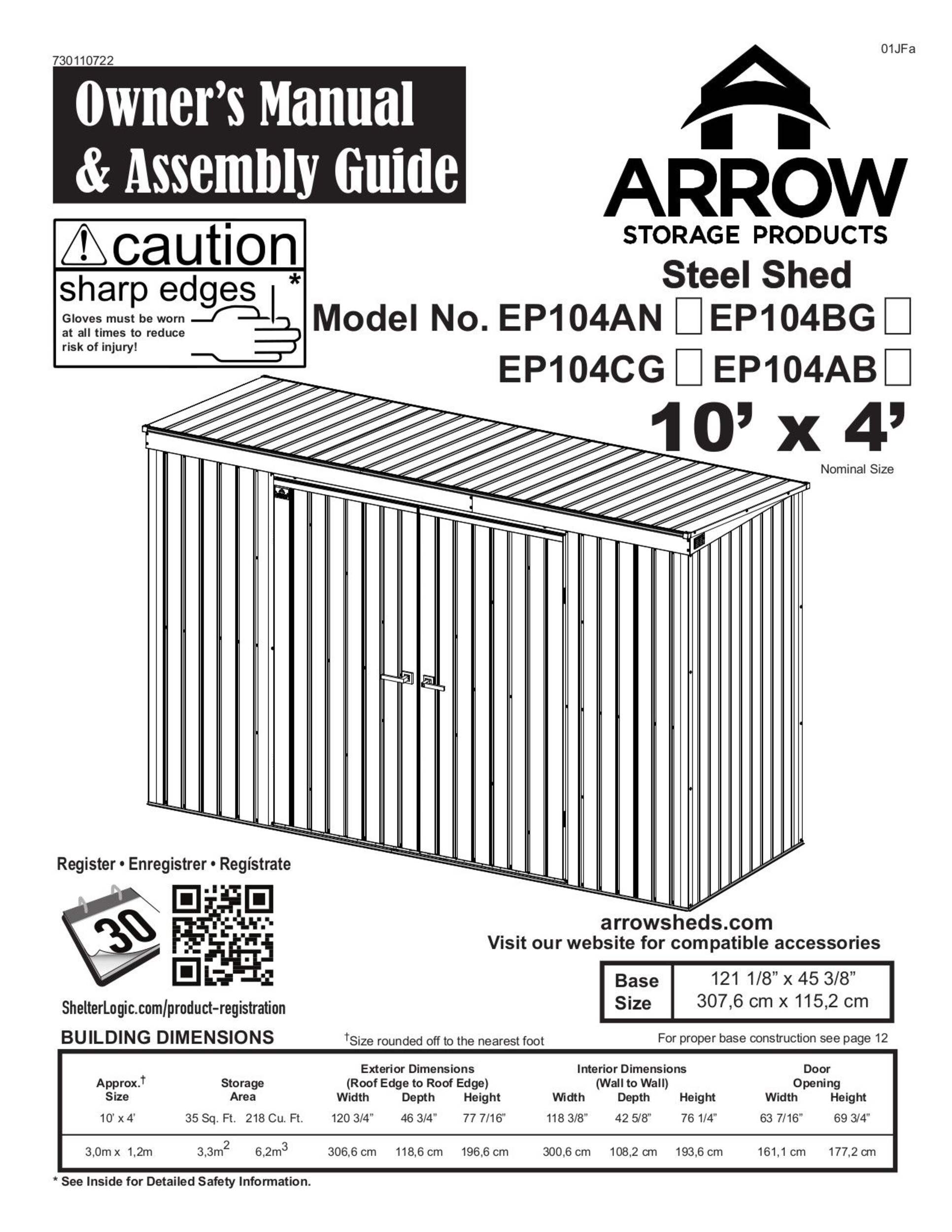 The Arrow Elite series storage shed is a welcome fixture in any backyard, garden or outdoor setting. Made from PermaPlate, a Galvalume steel with an aluminum and zinc plating which is highly anti-corrosive. The Elite series sheds also feature a tall 72 in. wall height and high gable roof for added headroom. The rigid reinforced swing open doors with brushed nickel key lock handle allows for easy access to the interior. In addition, gable vents provide increased air flow to the shed's interior.