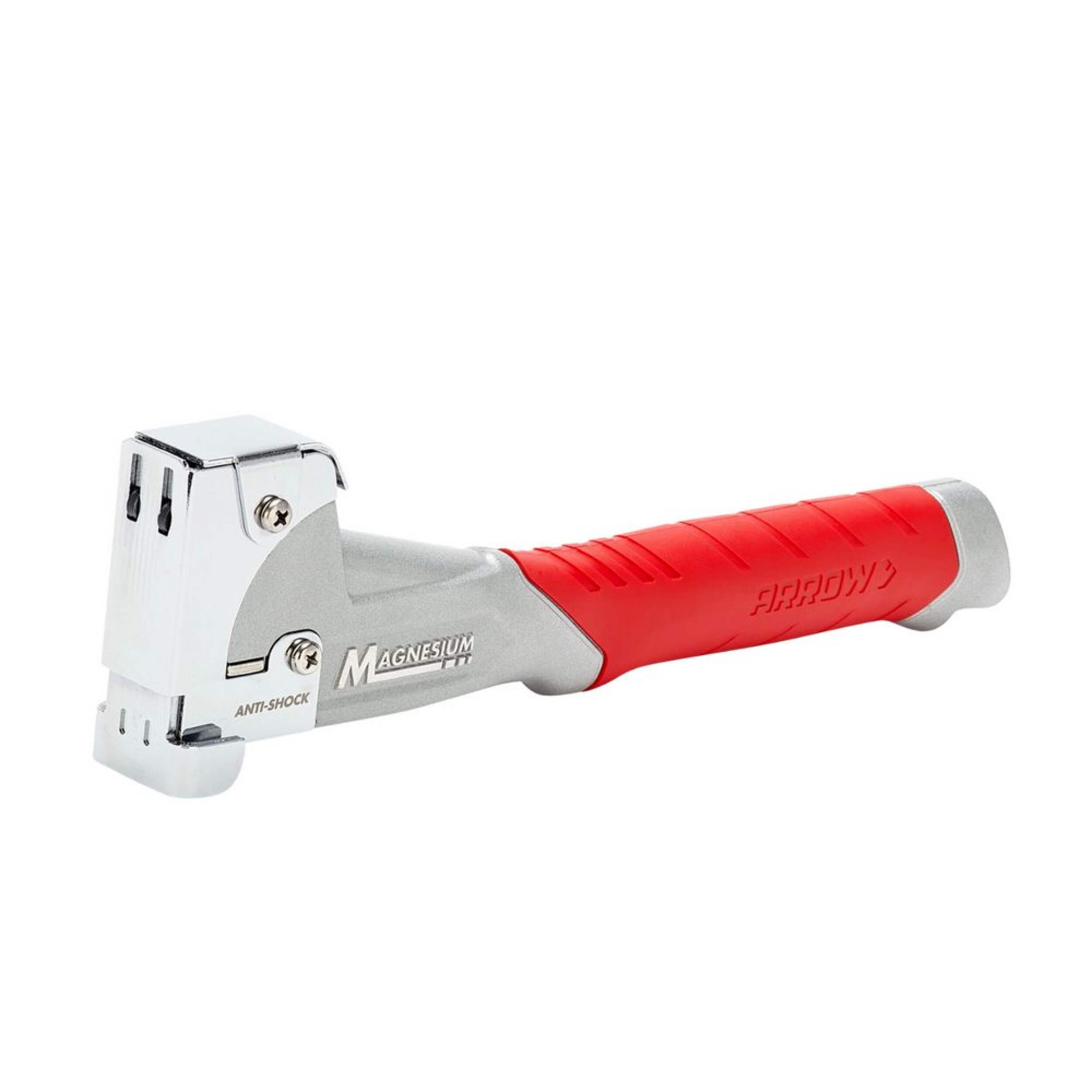 The Arrow HT50MG Magnesium Hammer Tacker improves on Arrow's classic hammer tacker by increasing durabilty, and reducing vibrations. The patented design delivers more drive in every staple compared to standard hammer tackers, and will protect your workpiece from dents and scratches. The magnesium body is resistant to corrosion. The shock resistant build will reduce vibrations by 20%. And the rubber handle will give you a firm, comfortable grip. Works with T50 staples in sizes 5/16 inch, 3/8 inch, or 1/2 inch.
