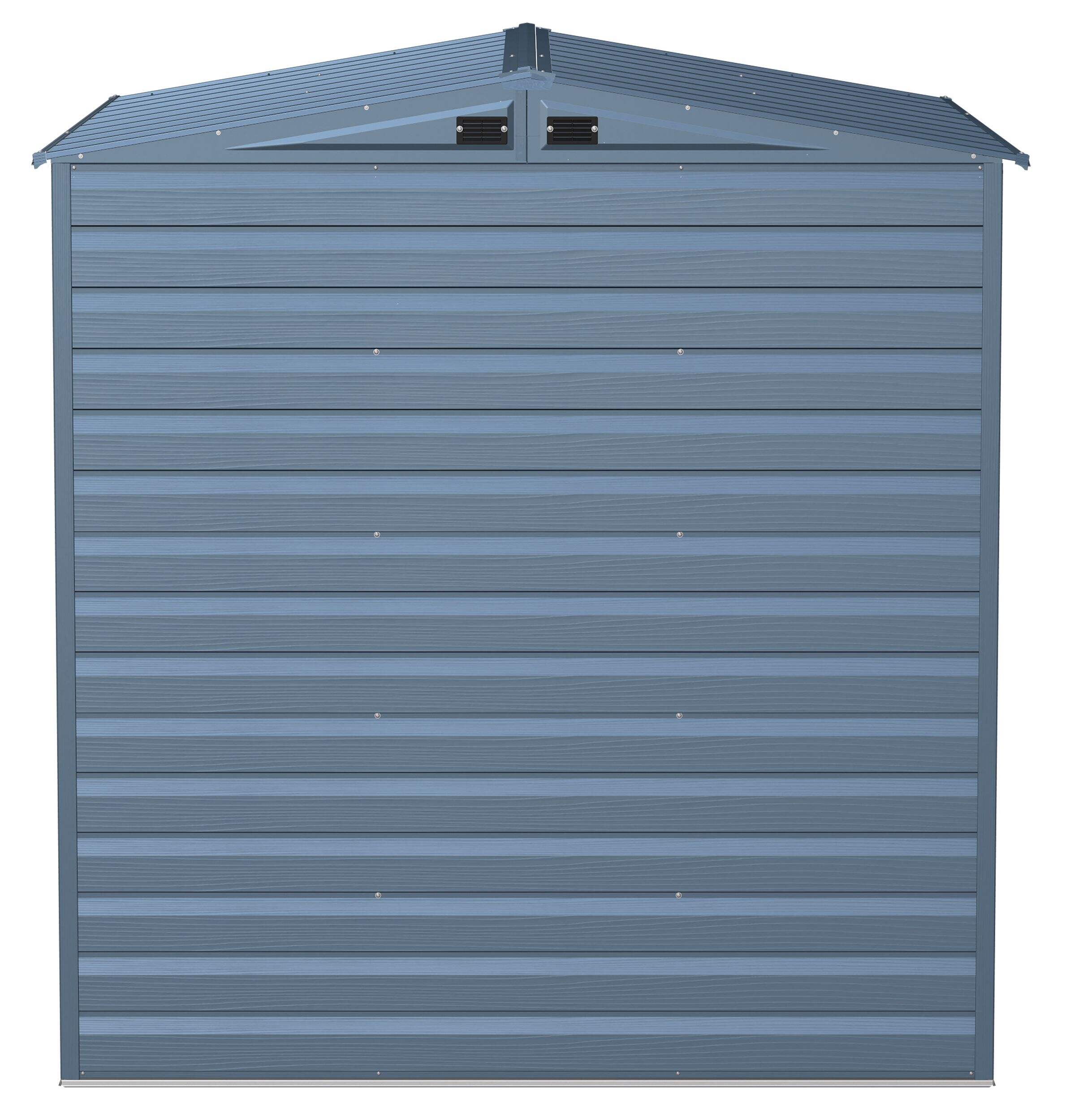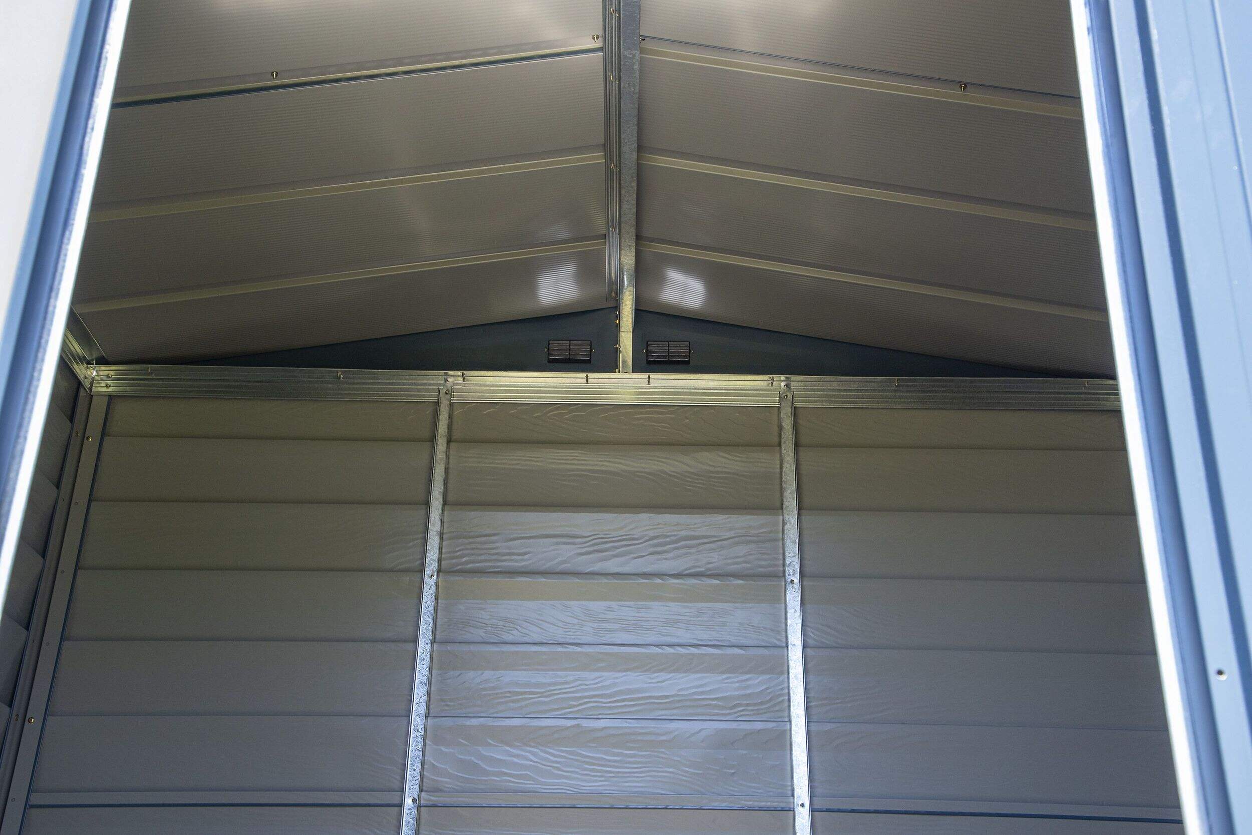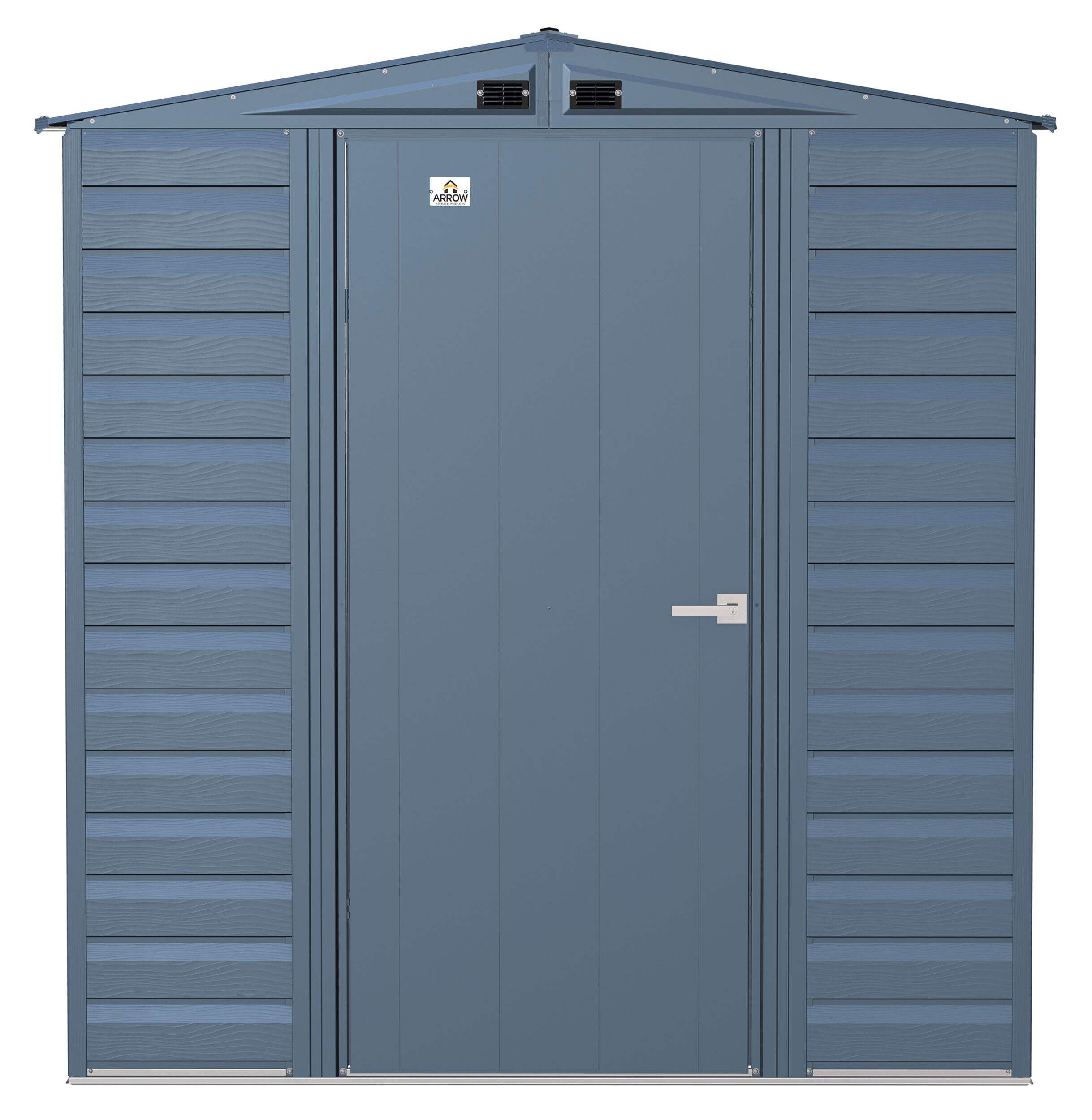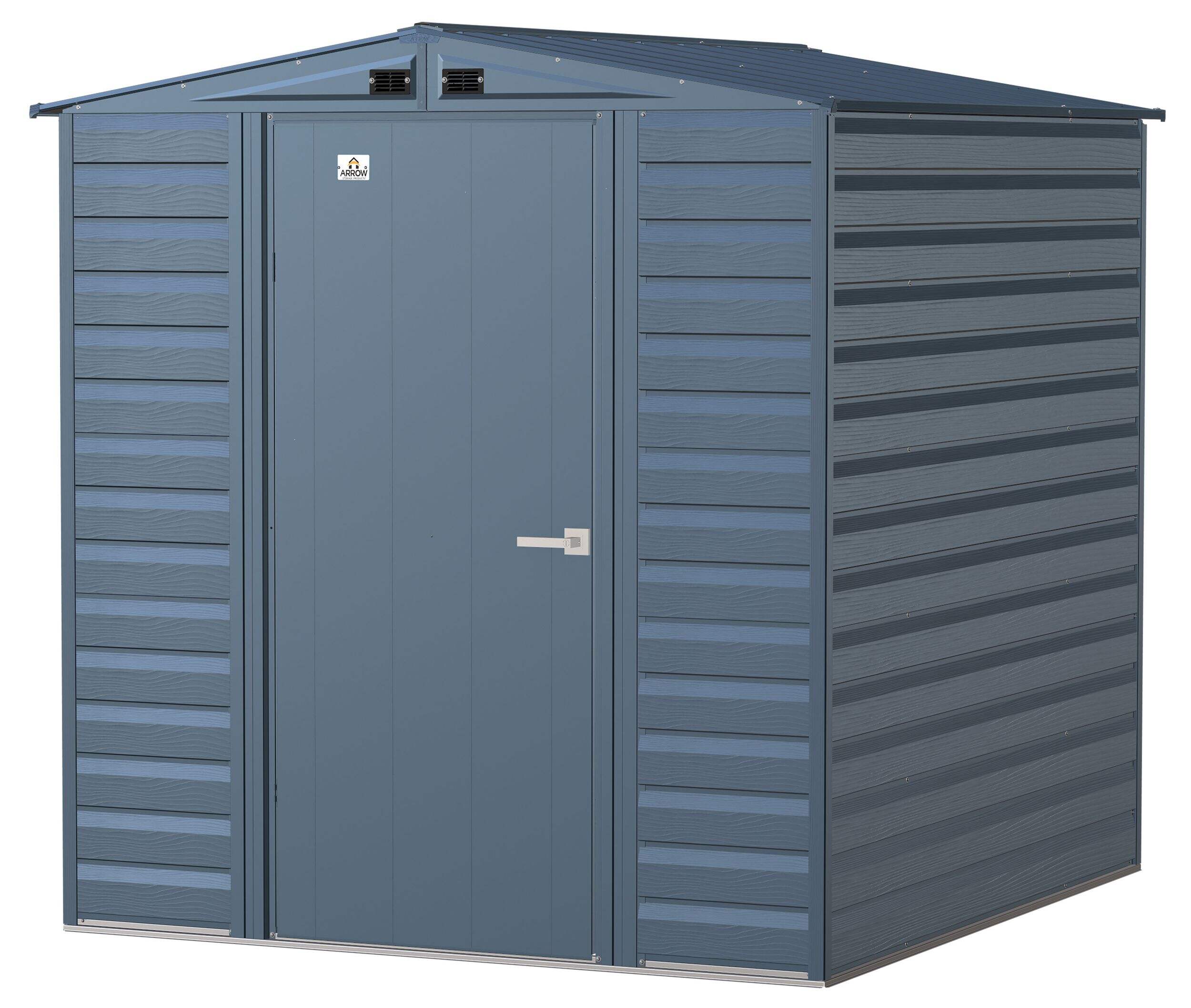 The Arrow Select line of strong, sturdy steel storage sheds is a pleasant addition to your backyard. Made with galvanized steel that is treated to provide long-term protection against corrosion and rust, Arrow Select sheds are engineered to protect your stored items from the elements. Inside, the 71 in. walls provide extra headroom, vertical storage space, and added entryway clearance. That makes it great for storing ladders, rakes, pole saws, and anything you want to pile high. The Arrow Select line also has a high gable roof to prevent pooling of rainwater and debris, built-in air vents for better circulation, and locking door handles for security. It also has a smooth, strong Sherwin-Williams® paint finish that protects it from the elements and gives the steel extra protection from rust and corrosion.
