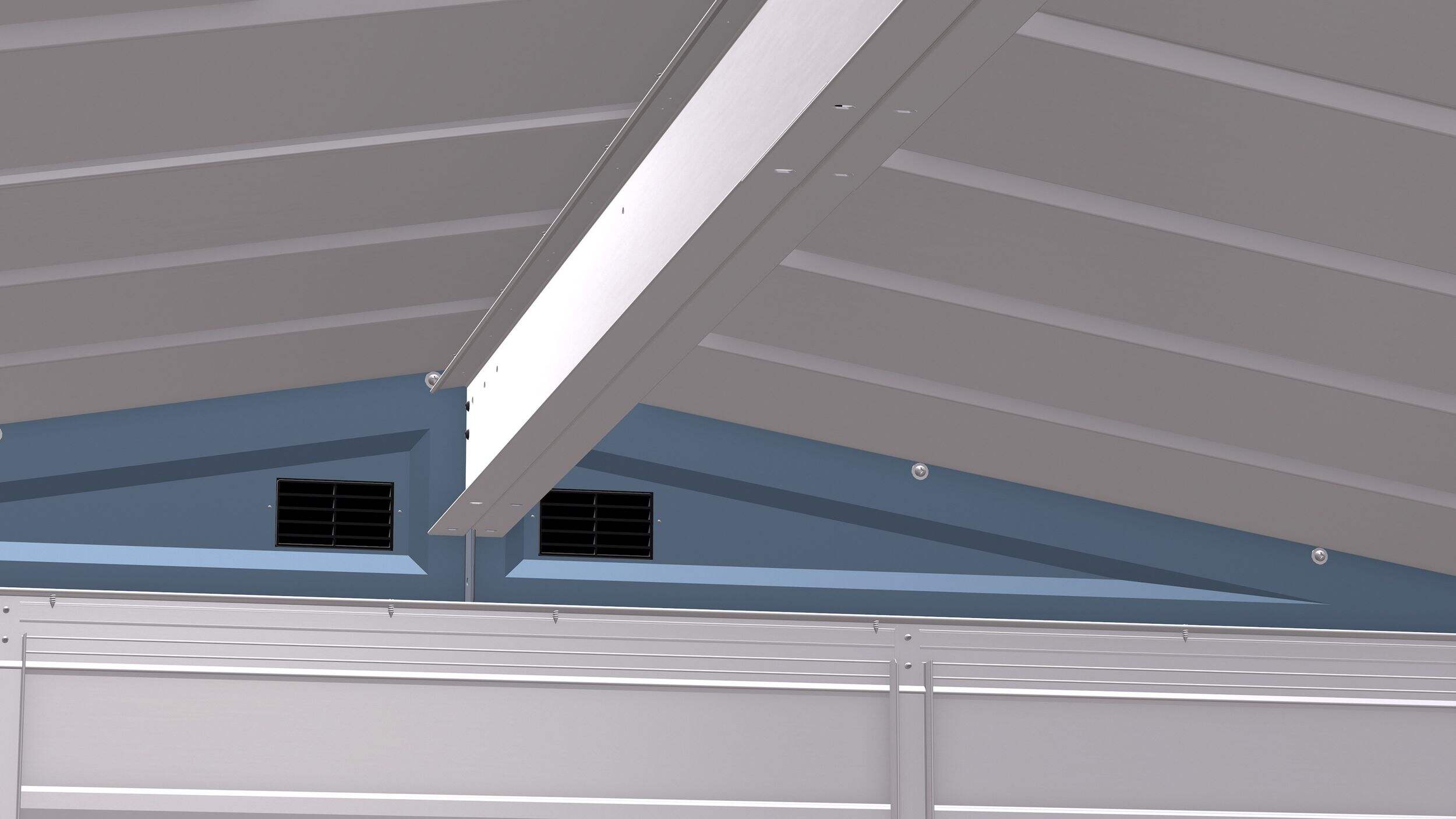 High gabled roof pitch prevents rainwater from pooling, and debris from accumulating