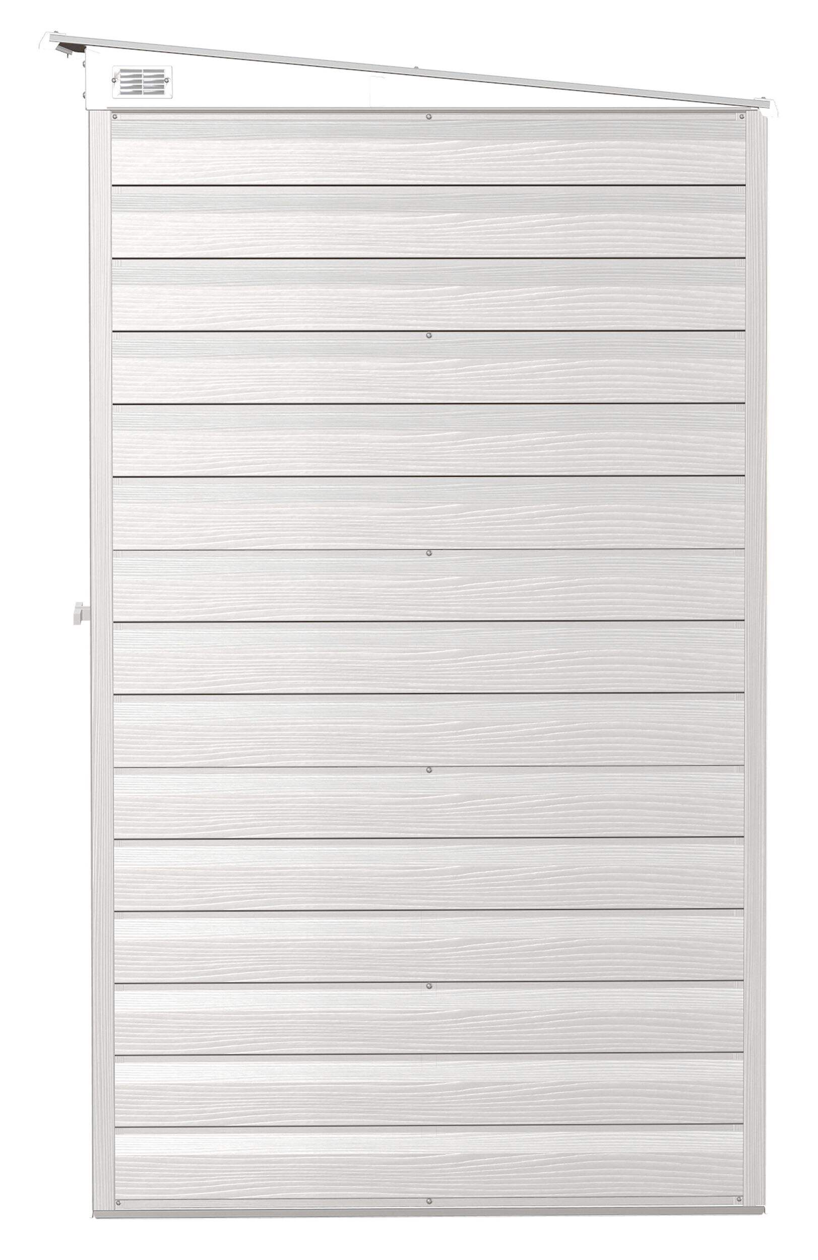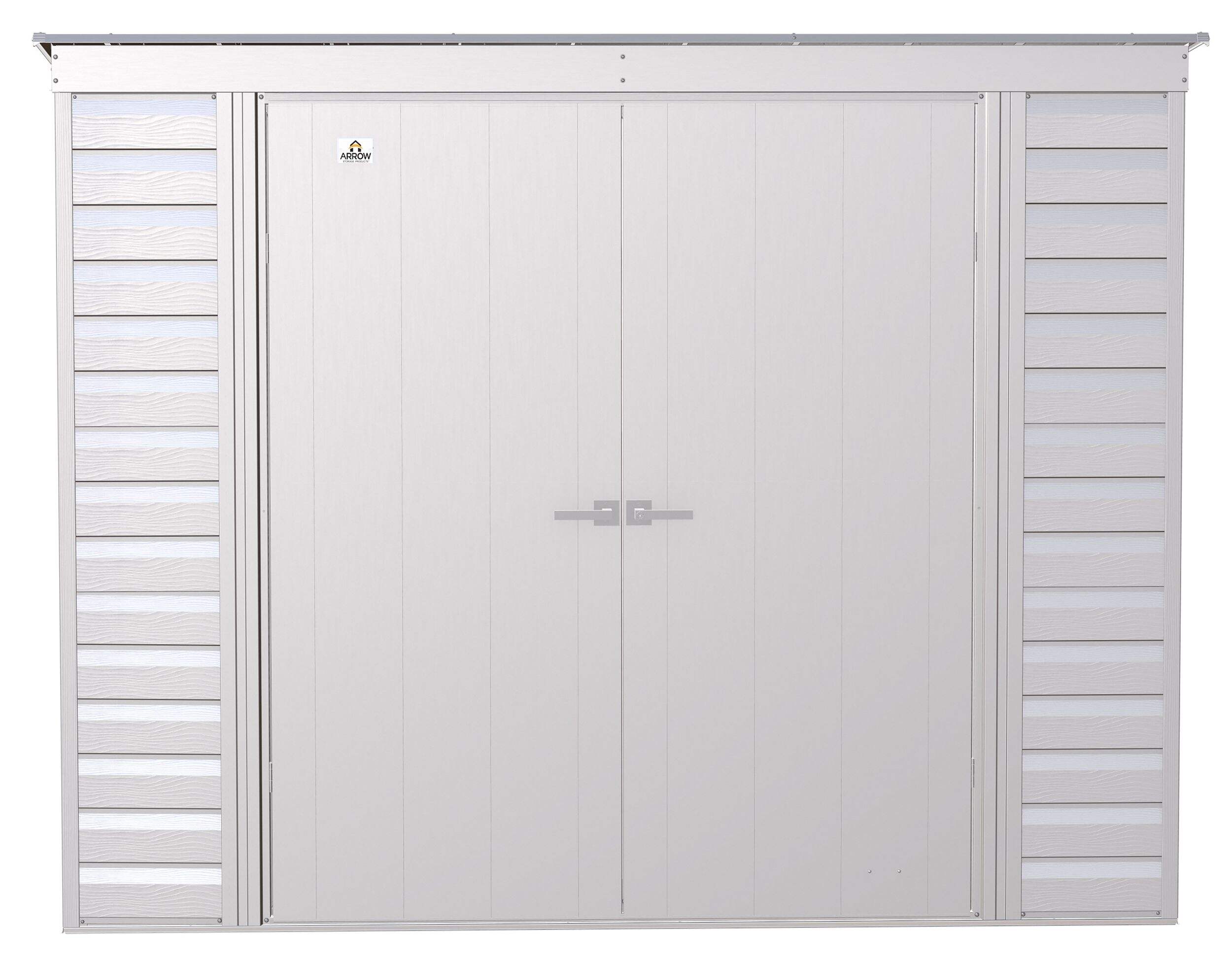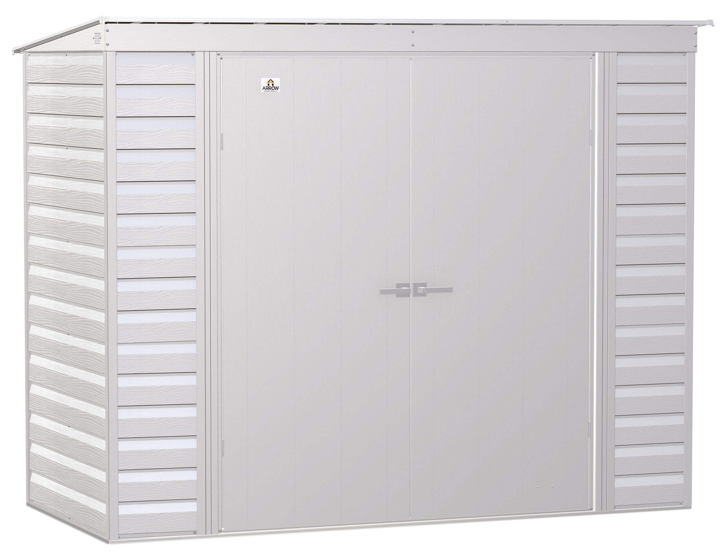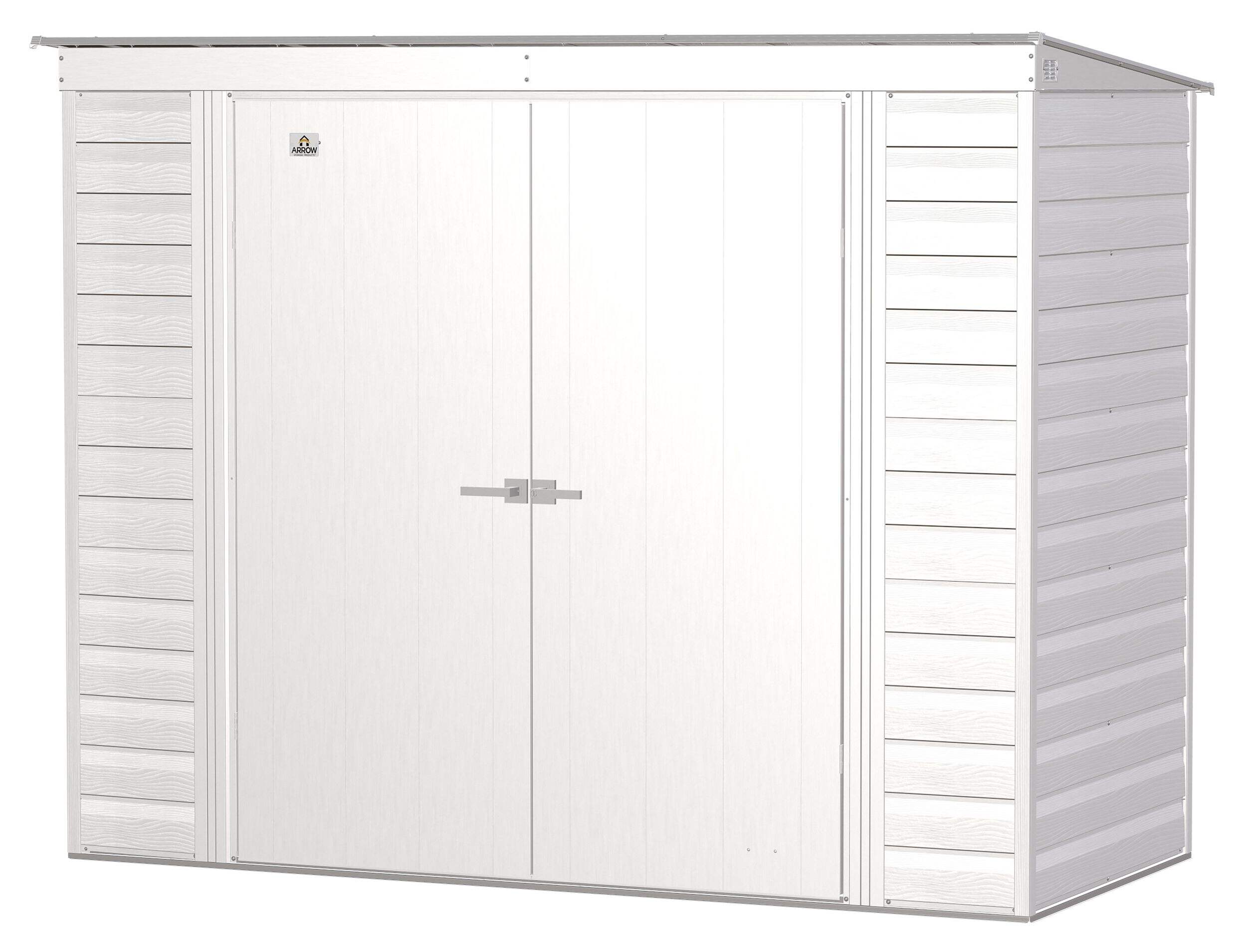 The Arrow Select line of strong, sturdy steel storage sheds is a pleasant addition to your backyard. Made with galvanized steel that is treated to provide long-term protection against corrosion and rust, Arrow Select sheds are engineered to protect your stored items from the elements. Inside, the 71 in. walls provide extra headroom, vertical storage space, and added entryway clearance. That makes it great for storing ladders, rakes, pole saws, and anything you want to pile high. The Arrow Select line also has a high gable roof to prevent pooling of rainwater and debris, built-in air vents for better circulation, and locking door handles for security. It also has a smooth, strong Valspar paint finish that protects it from the elements and gives the steel extra protection from rust and corrosion.