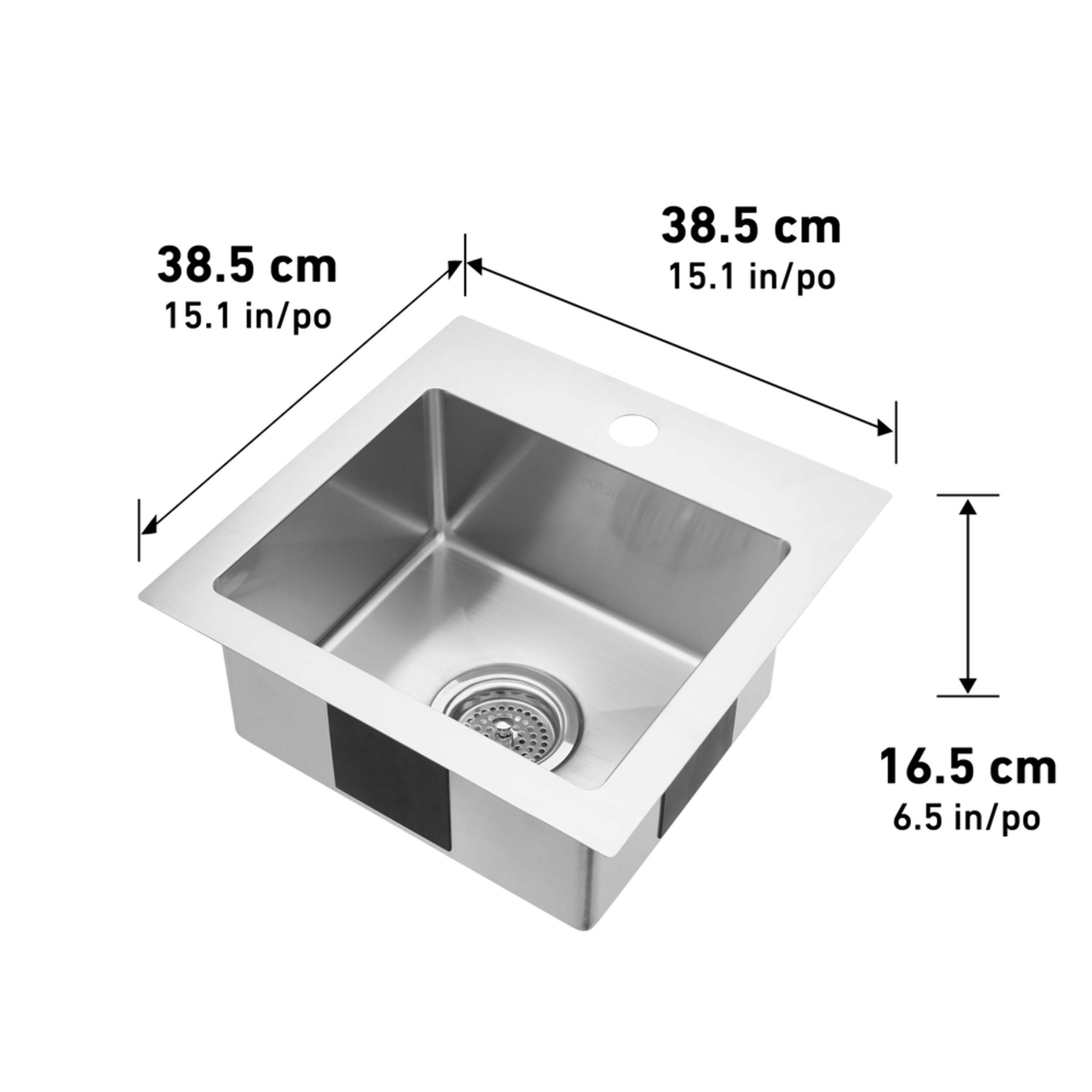 The benefits of the Plaza stainless steel single bowl sink are many. First, its masterful design guarantees durability and quality. Moreover, its optimal size and contemporary look accommodate your kitchen seamlessly. Easy to install, the sink includes a strainer and drain. The sound-dampening design lets you perform your tasks peacefully. Install it easily above or below your countertop.