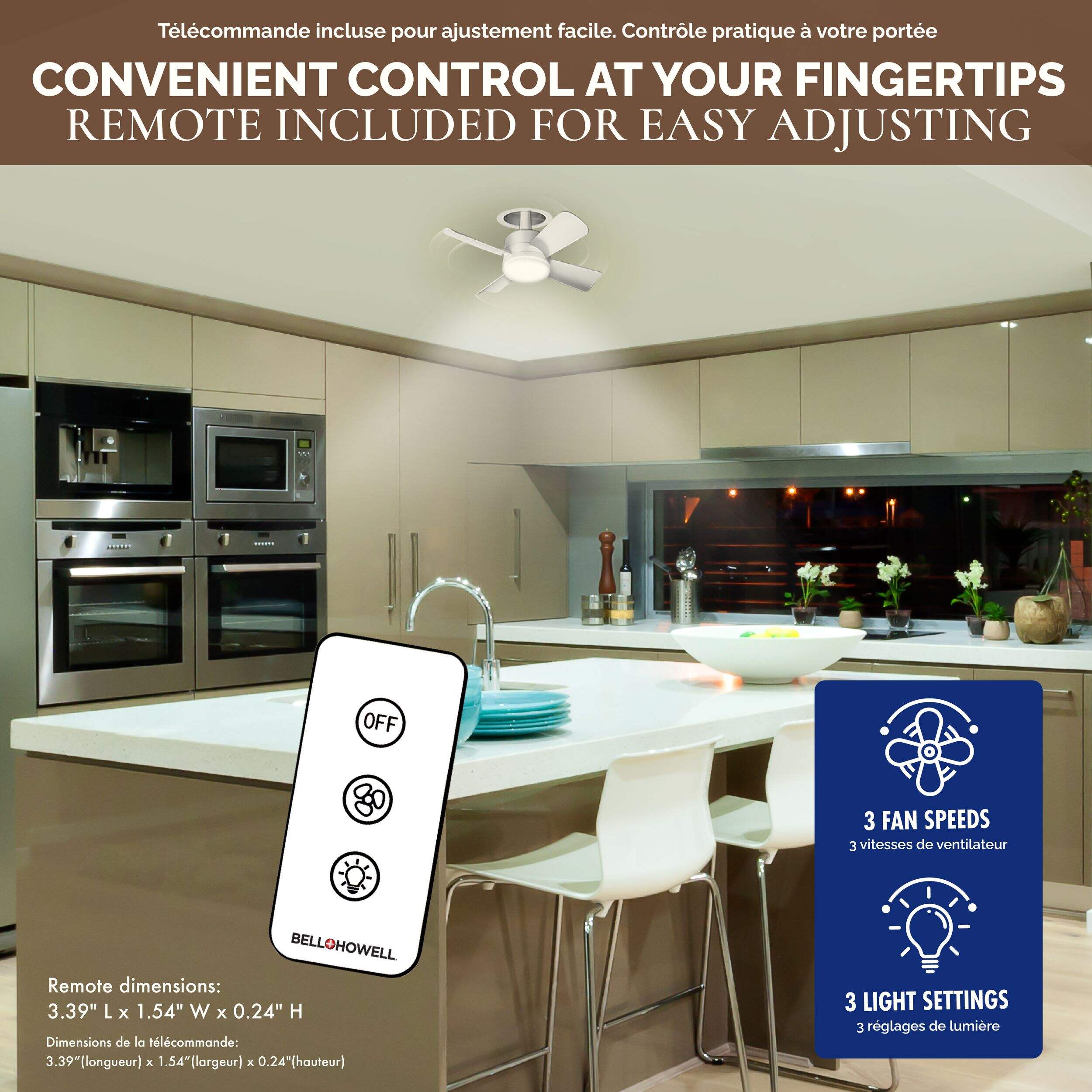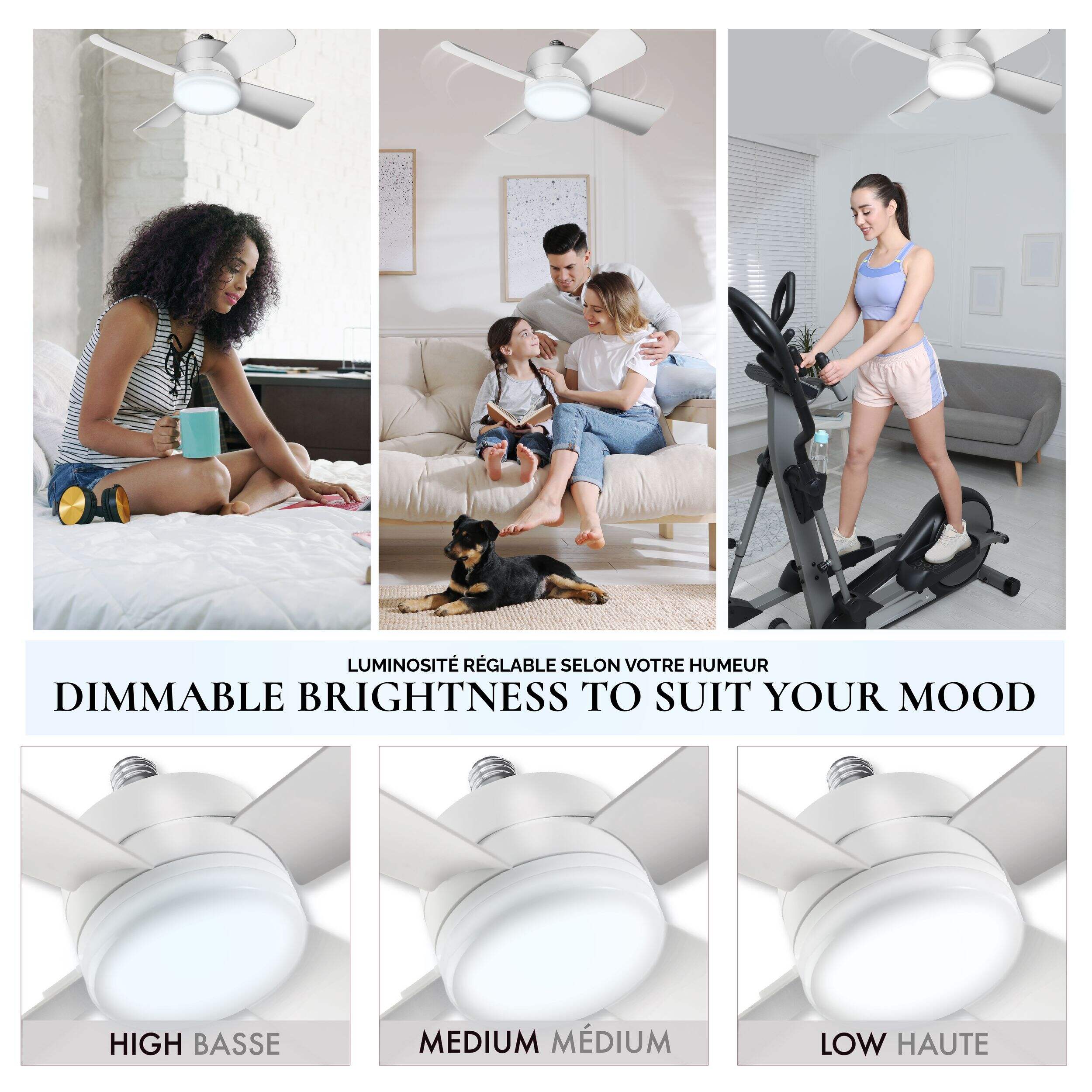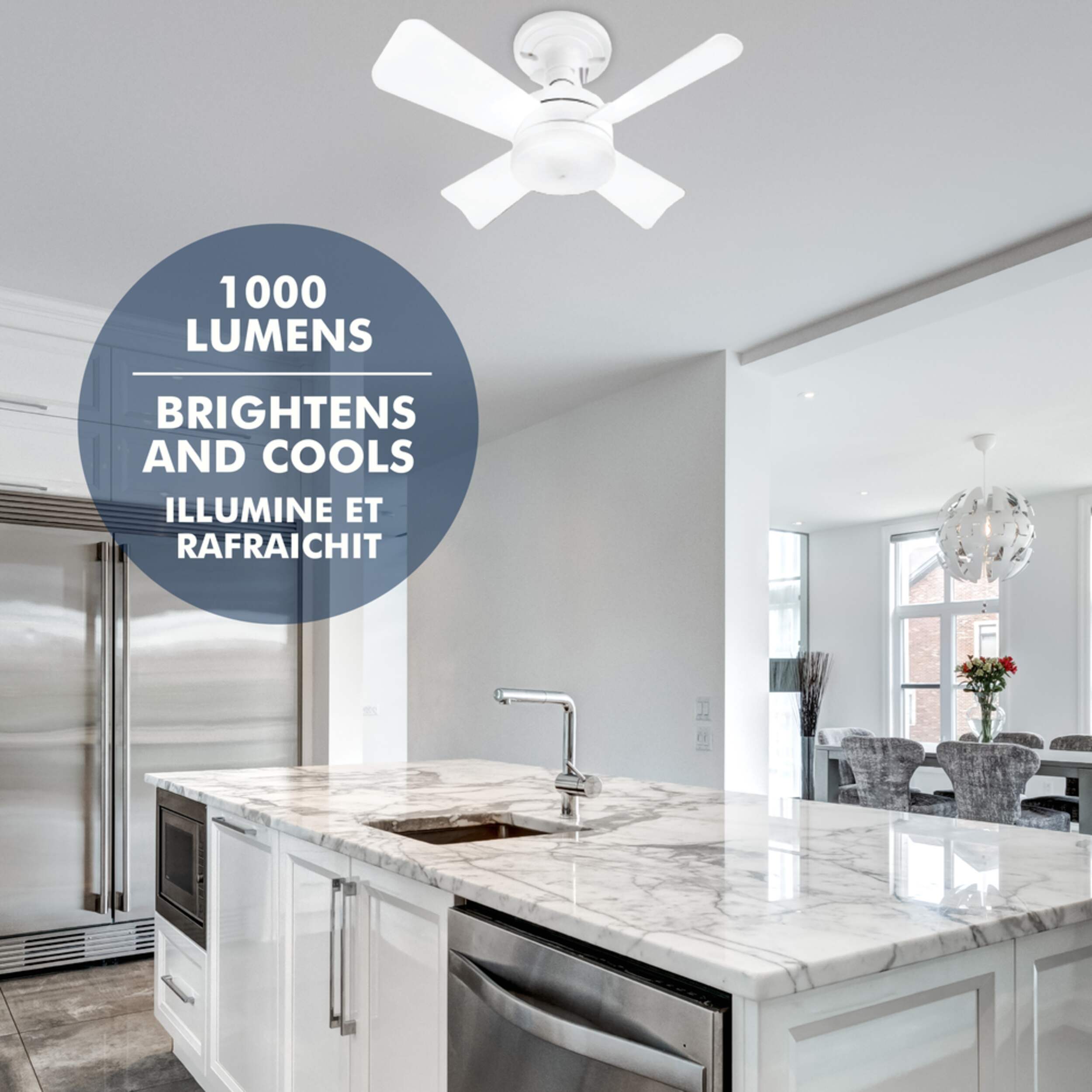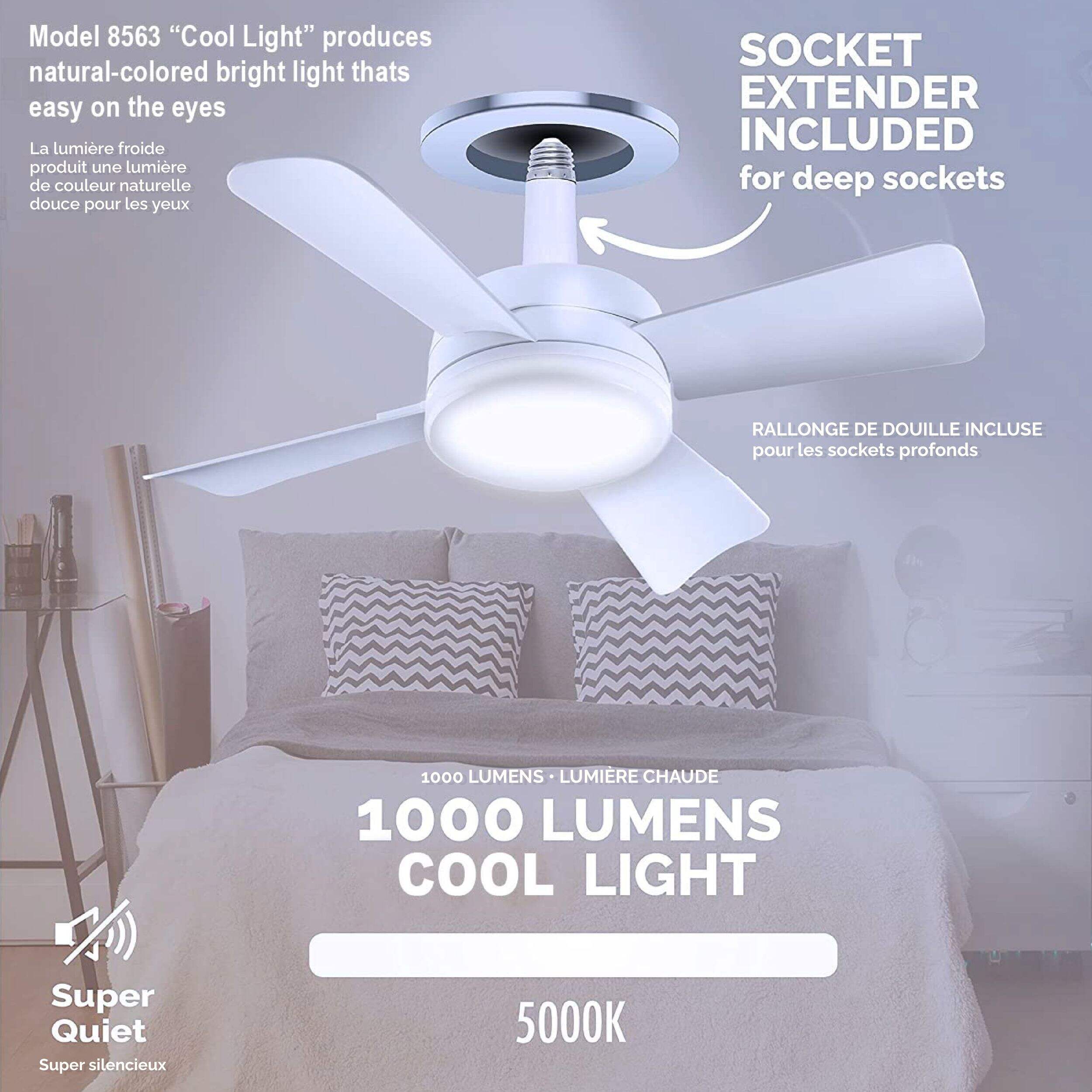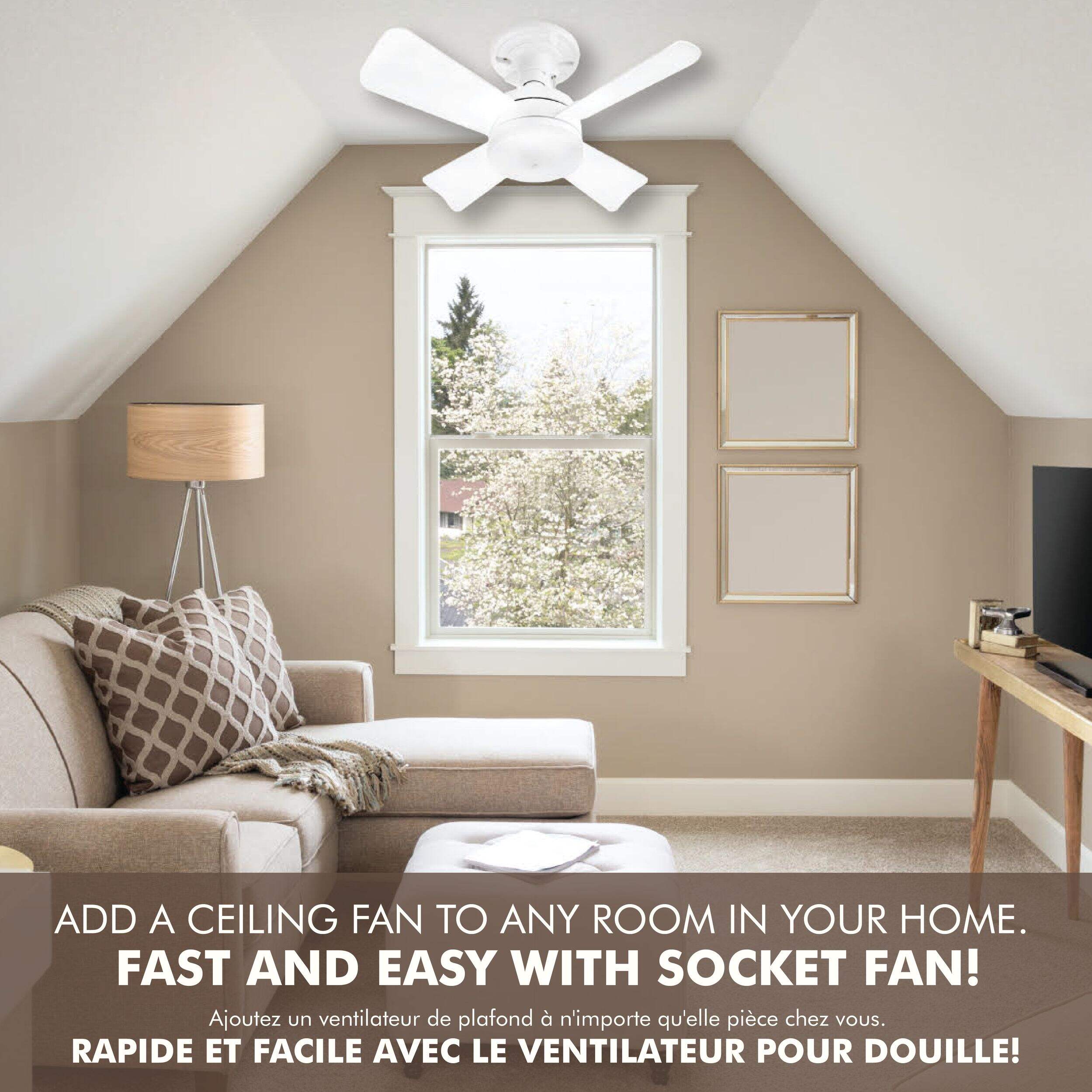 Keep your room functional with this innovative As Seen On TV Bell & Howell Socket Fan Light with Remote. Made for easy installation, this fan and light can be used together or individually to help ensure your garage, balcony, living room, office and more gets needed air circulation and illumination. Remote controlled and featuring different brightness levels and fan speeds, this fan light is easy to adjust to suit your needs at any moment.