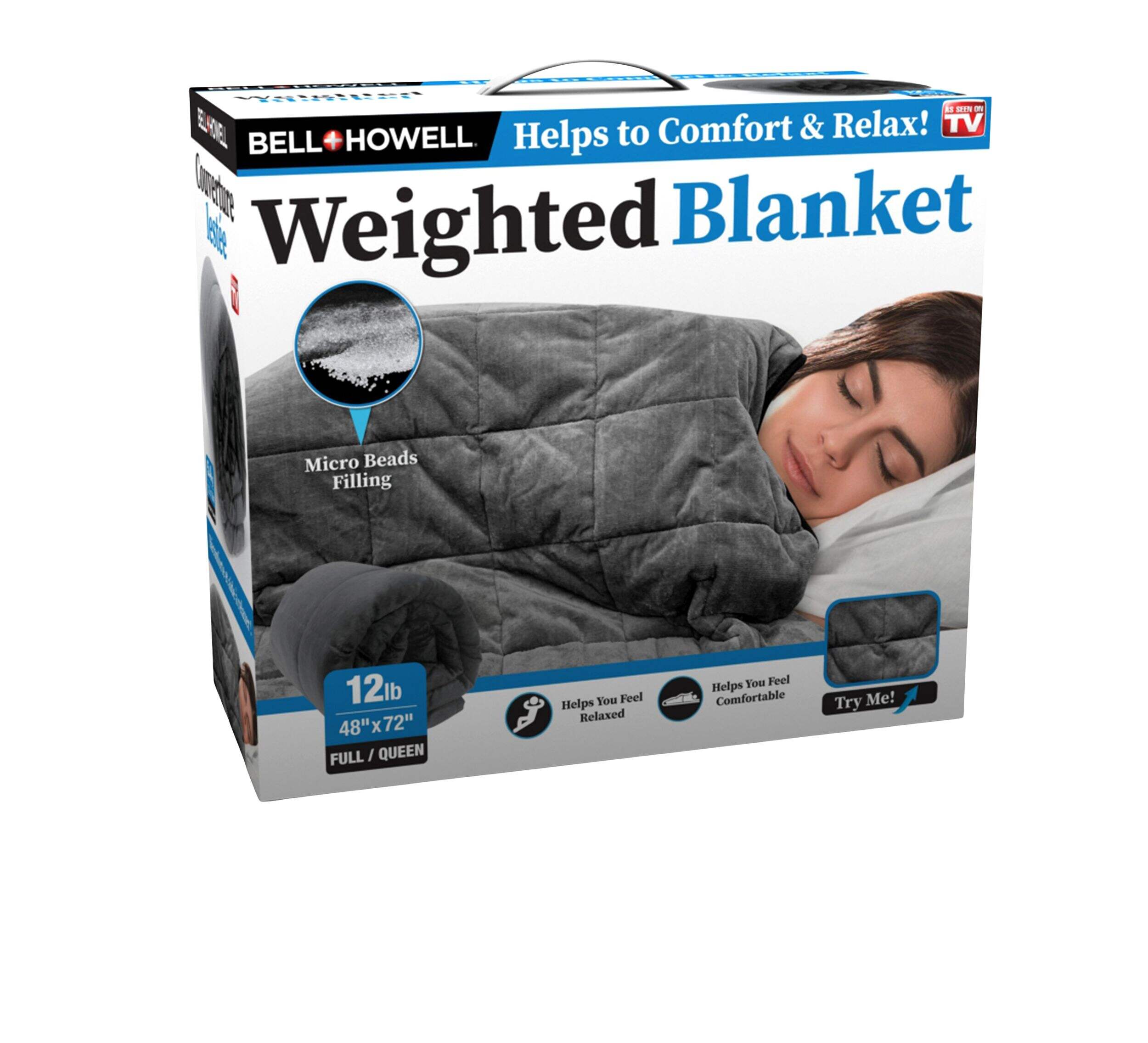 Enhance your relaxation with the As Seen On TV Bell & Howell Weighted Blanket. At 12 lbs, it provides therapeutic pressure to reduce stress and promote restful sleep. Crafted with soft and breathable materials, it’s suitable for year-round use. Whether you’re winding down after a busy day or improving your nightly rest, this blanket is designed for comfort, making it an excellent addition to your bedding.