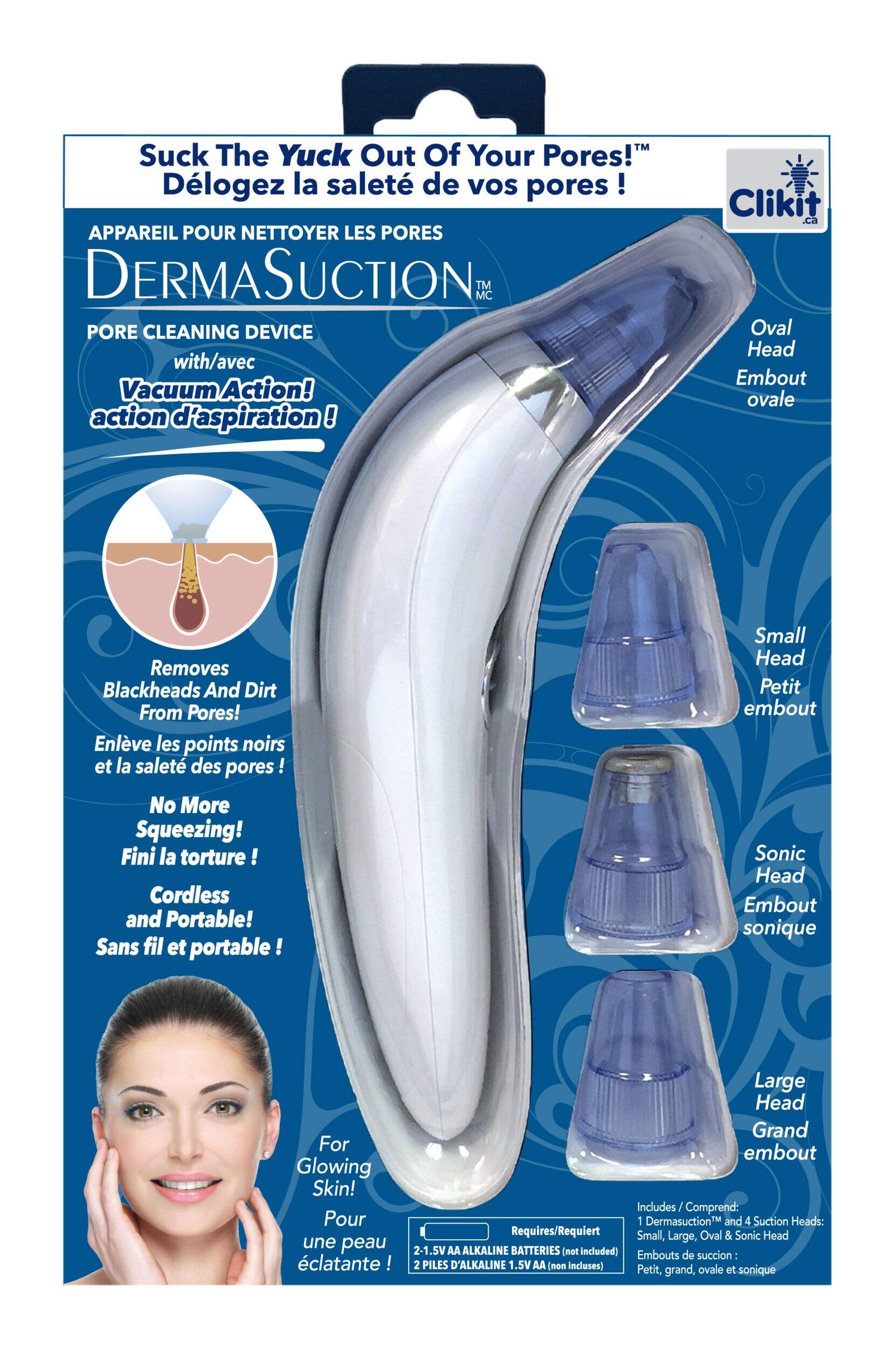 Derma suction Pore Cleaning Device - Suck the gunk out of your pores the painless way with this handheld device. Avoiding the damaging effects of squeezing, the 4 suction heads easily remove blackheads and dirt from your pores. Perfect for keeping your complexion clear without irritation.