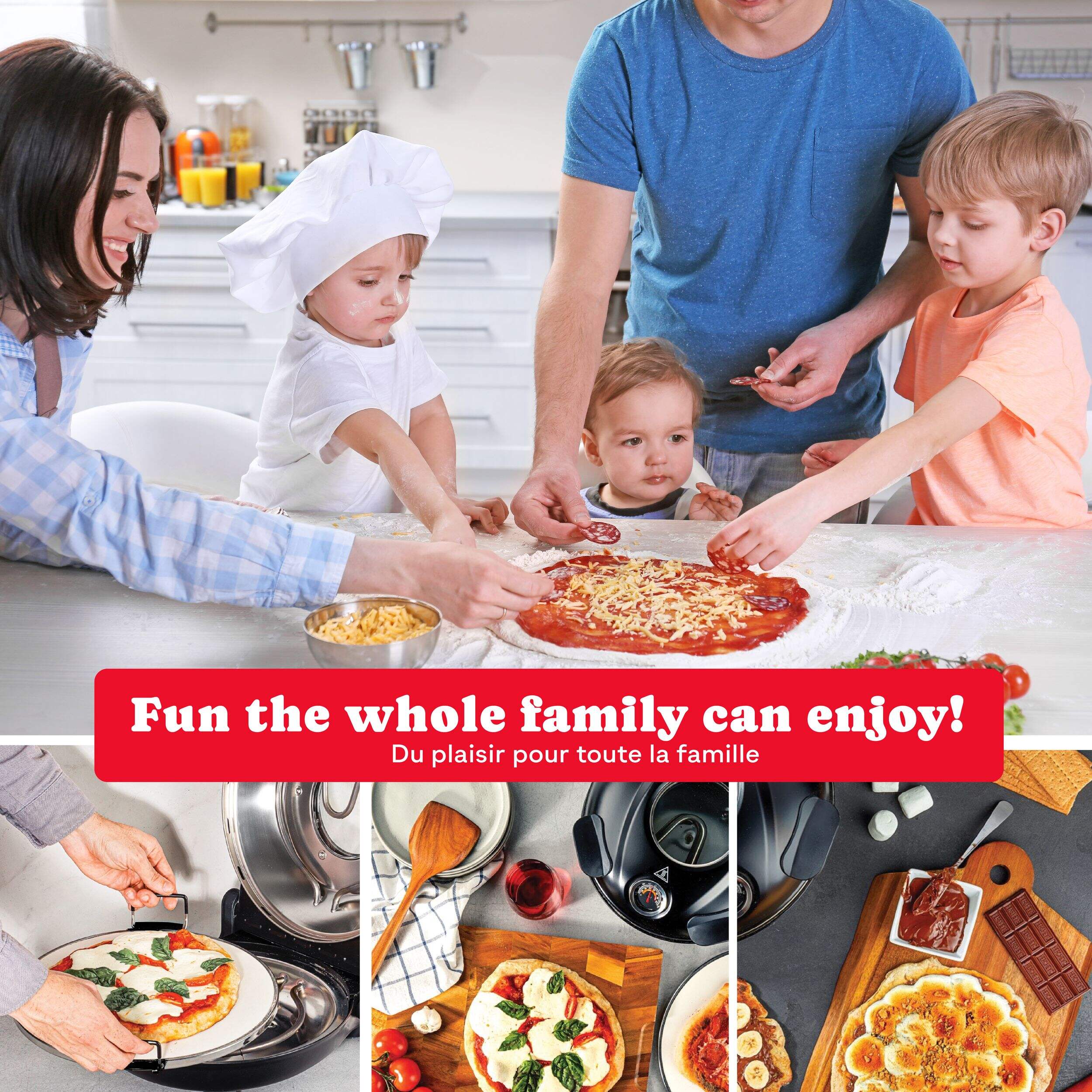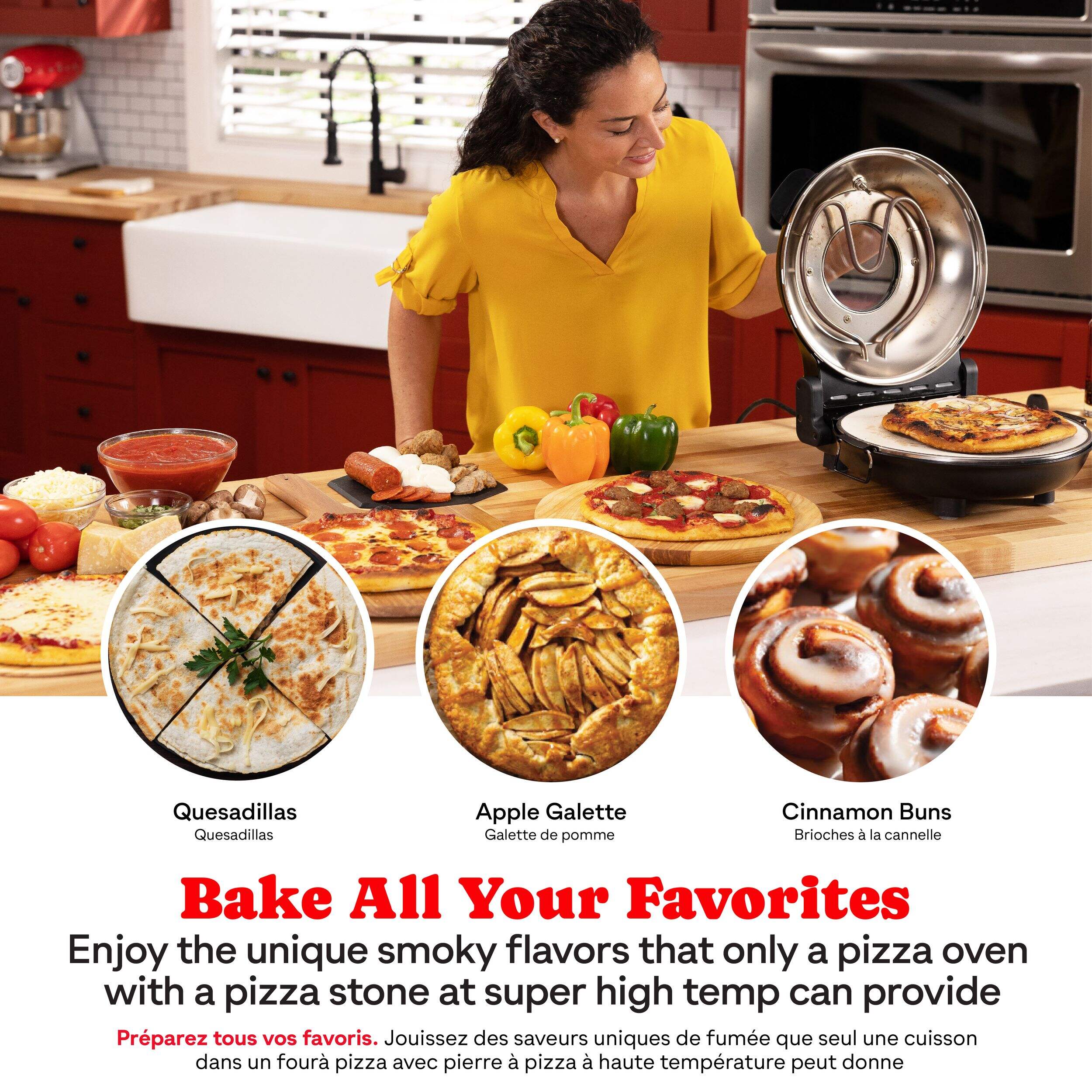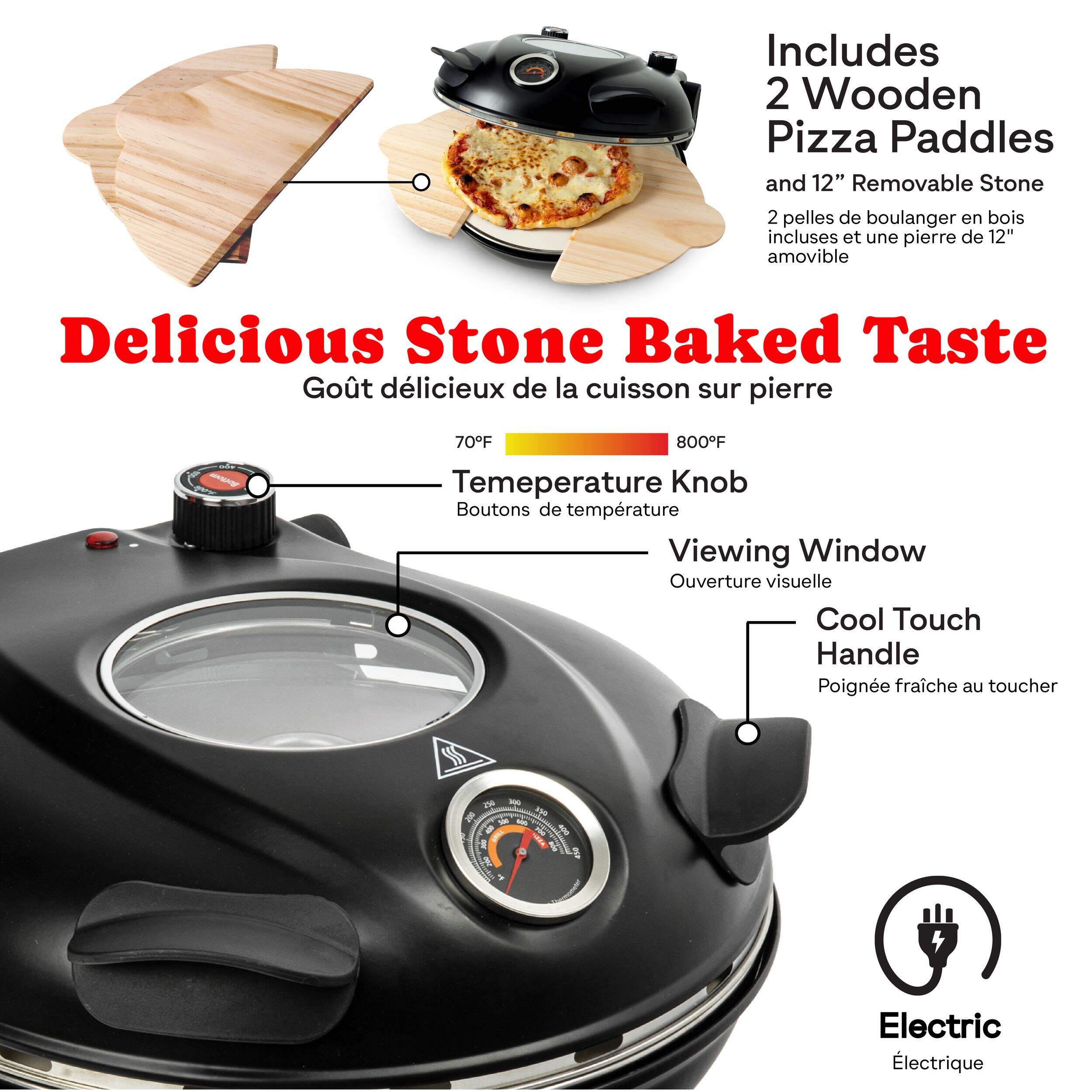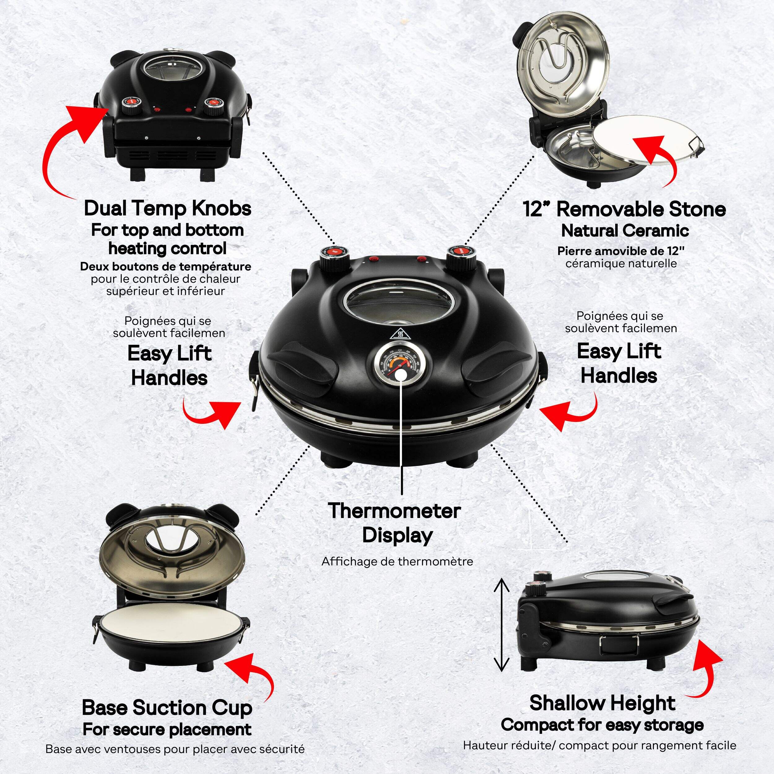 Viewing window and thermometer display make it easy to control the cook on your pizza