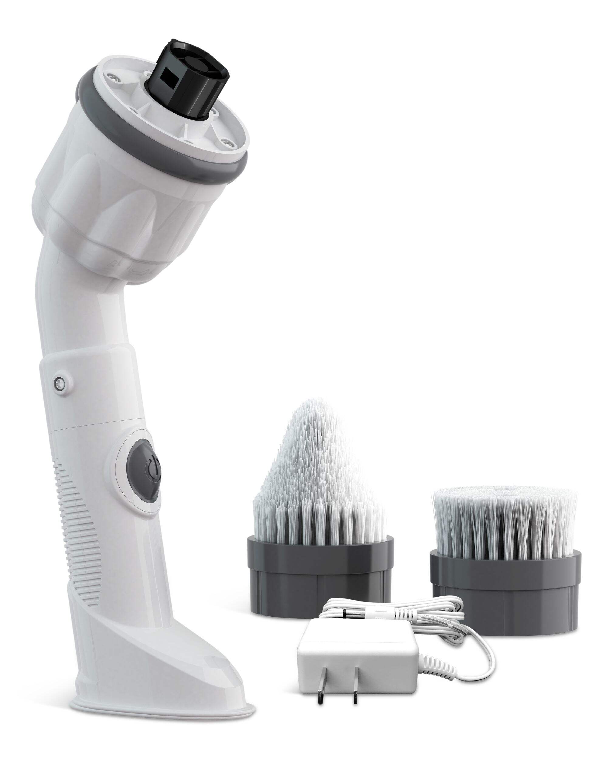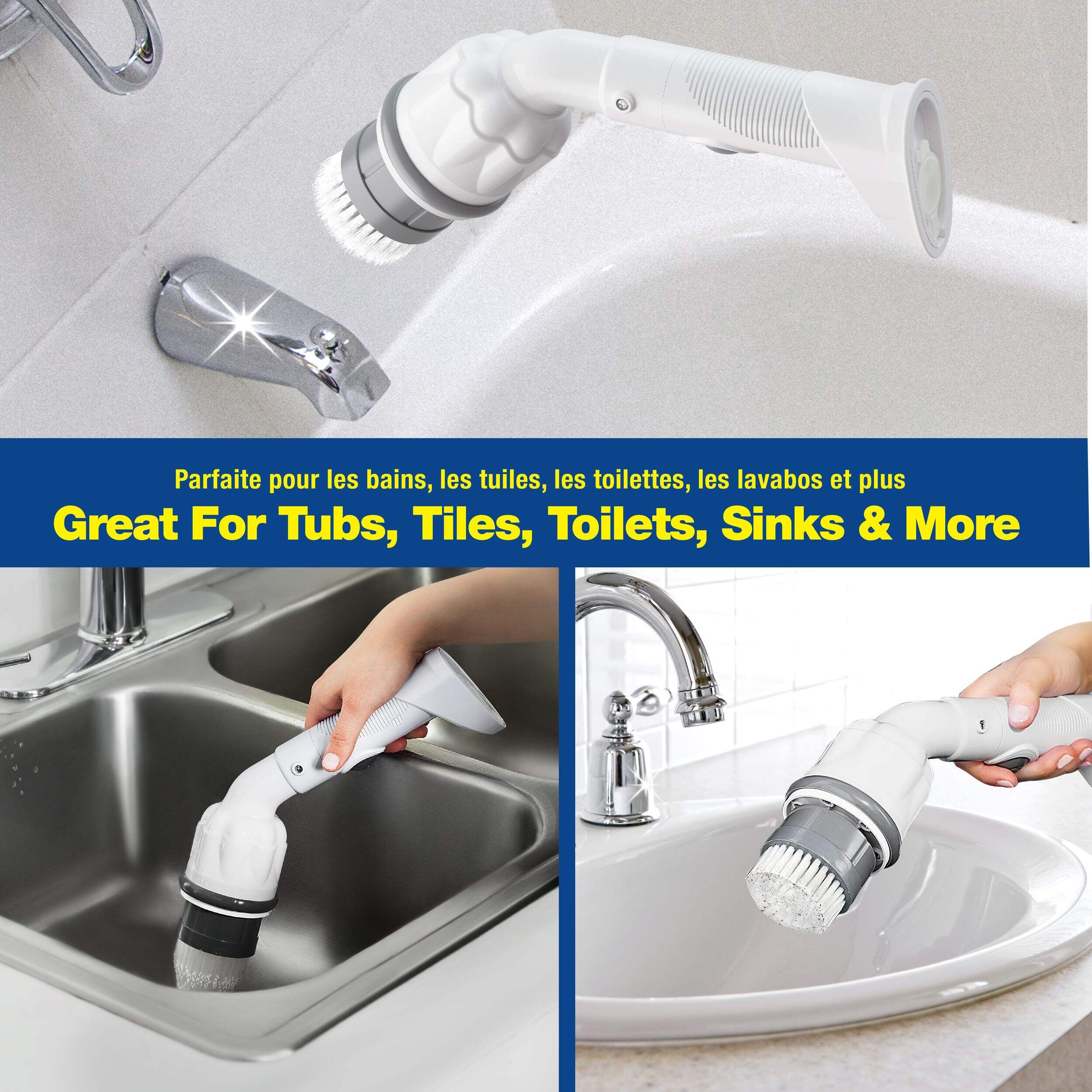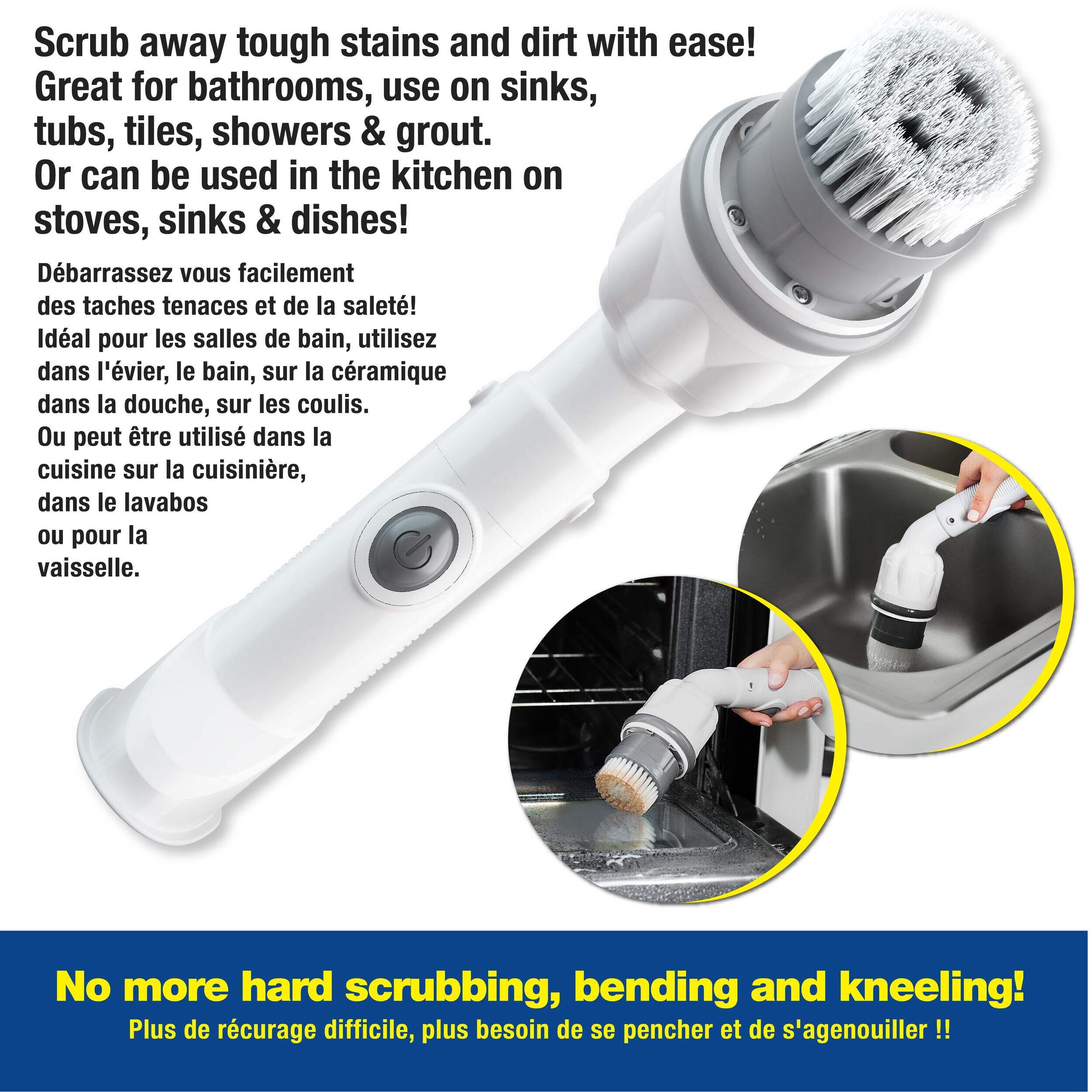 The As Seen on TV Scrubtastic Max Powerful Handheld Scrubber makes quick work of tough cleaning jobs. The rechargeable, cordless design lets you scrub counters, tiles, sinks and more with 300 revolutions per minute of scrubbing power. Its dual brush heads - a cone brush and flat brush - tackle everything from kitchen stoves to bathtub grout. No batteries required and charges in just 4 hours for up to 90 minutes of scrub time, making it perfect for a deep clean of the whole house in one go.