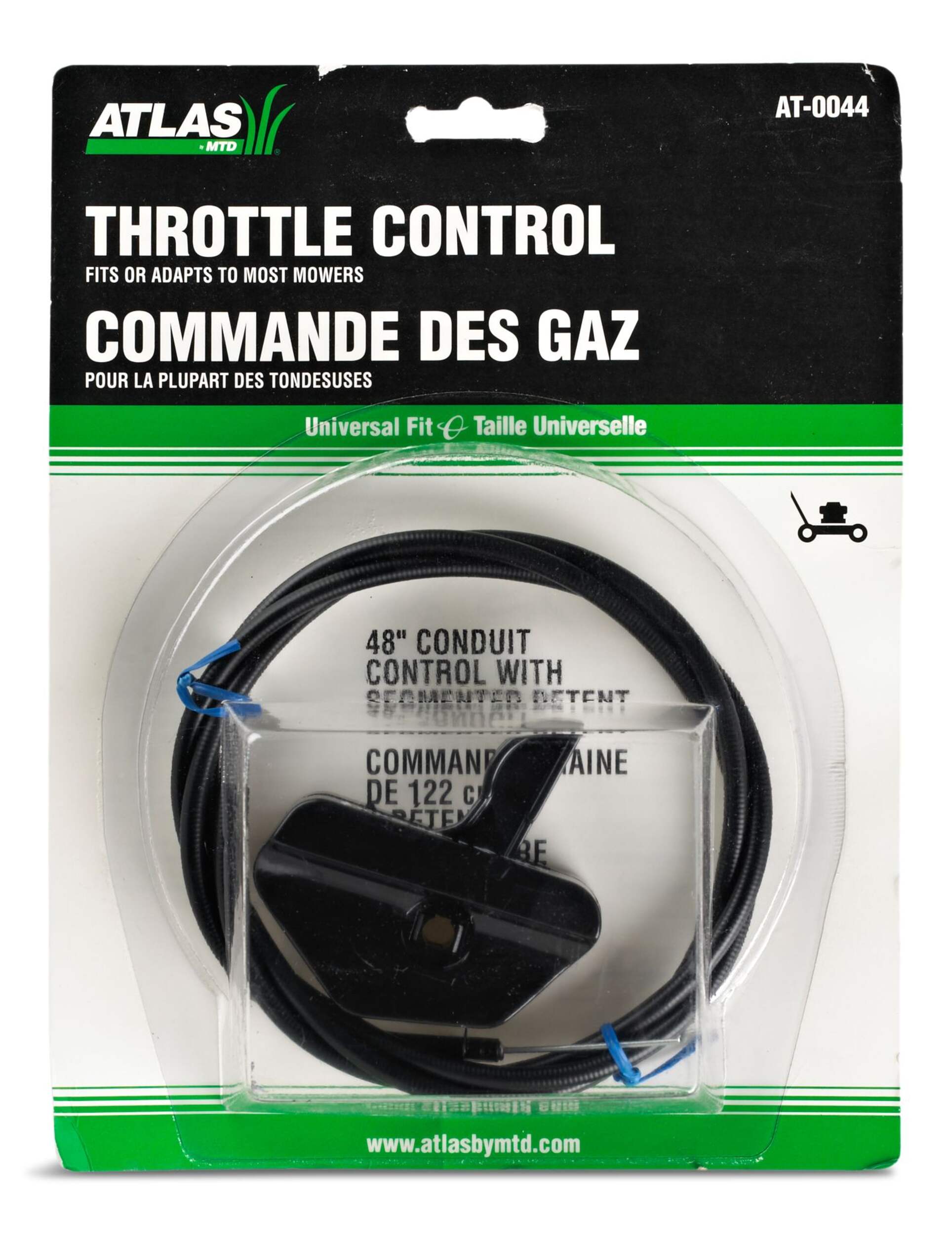 This universal throttle control from Atlas takes the hassle out of replacing a worn out mower handle. With a bolt-on design that fits most walk-behind mowers, installation is a breeze. The durable metal casing measures a generous 54 inches long to ensure compatibility with a range of mower models while the 48-inch conduit control features segmented detents for precise speed adjustments. Whether you need a quick repair or an upgrade, this replacement throttle control offers a budget-friendly, no-frills solution that gets your lawn mower up and running again in a snap. Simply attach it, adjust it and get back to enjoying your freshly cut grass.