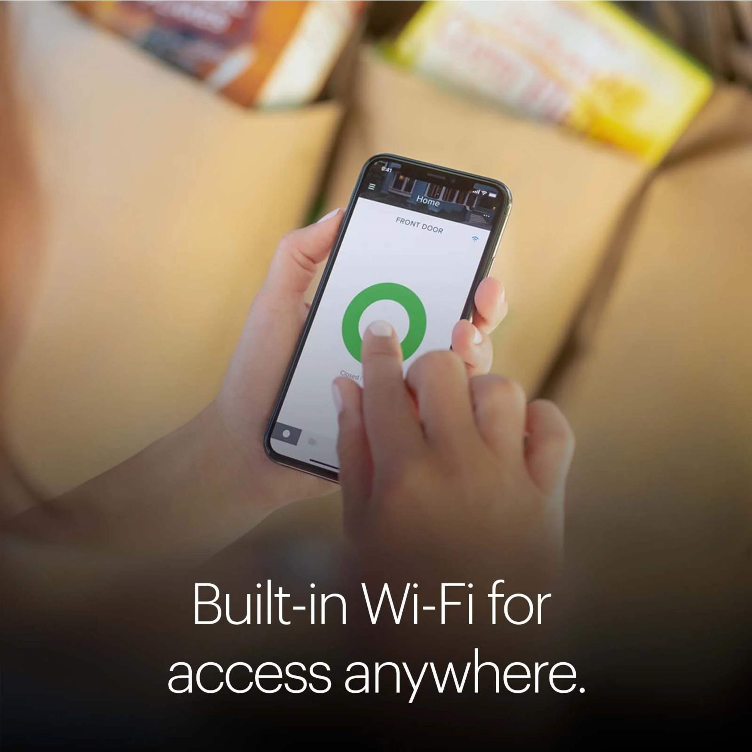 The front door just got smarter. This August Wi-Fi smart lock lets you lock and unlock your door from anywhere using your phone, giving you peace of mind when you're not home. No more lost keys or running back to the house to check if you remembered to lock up. The slim, subtle design installs easily in place of most deadbolt locks and connects to your home Wi-Fi network. Now you'll never again have to juggle groceries and fumble for keys at the door.