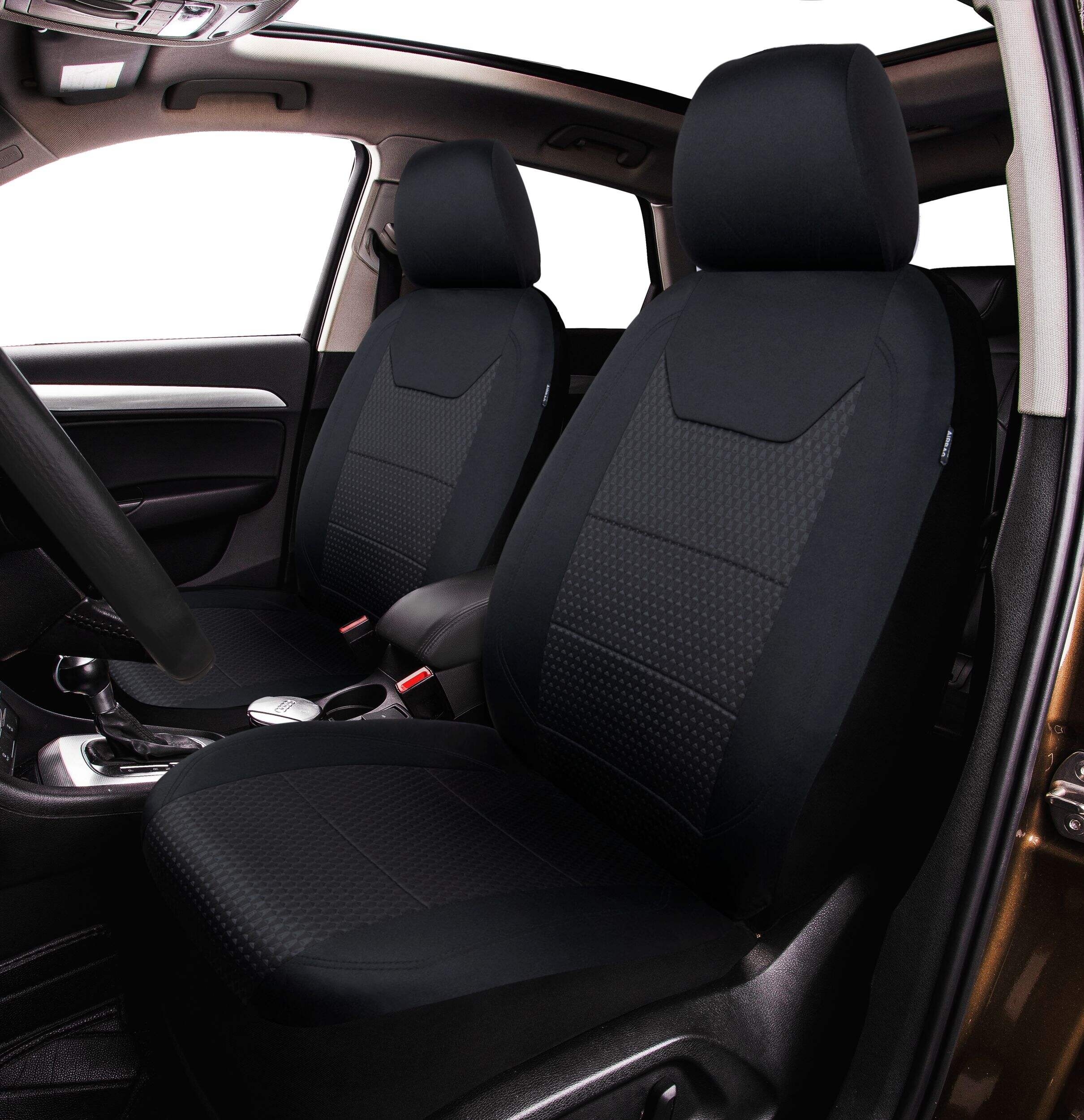 The AutoTrends 3D Embossed Seat Cover provides efficient and stylish protection for your vehicle's seats. Featuring an embossed 3D design, this seat cover shields against wear, spills, and dirt. Offering a universal fit for most seats with adjustable headrests, the AutoTrends Seat Cover is easy to install, simply fitting over your existing seats. Each package contains two car seat covers, and has a 1-year warranty included.