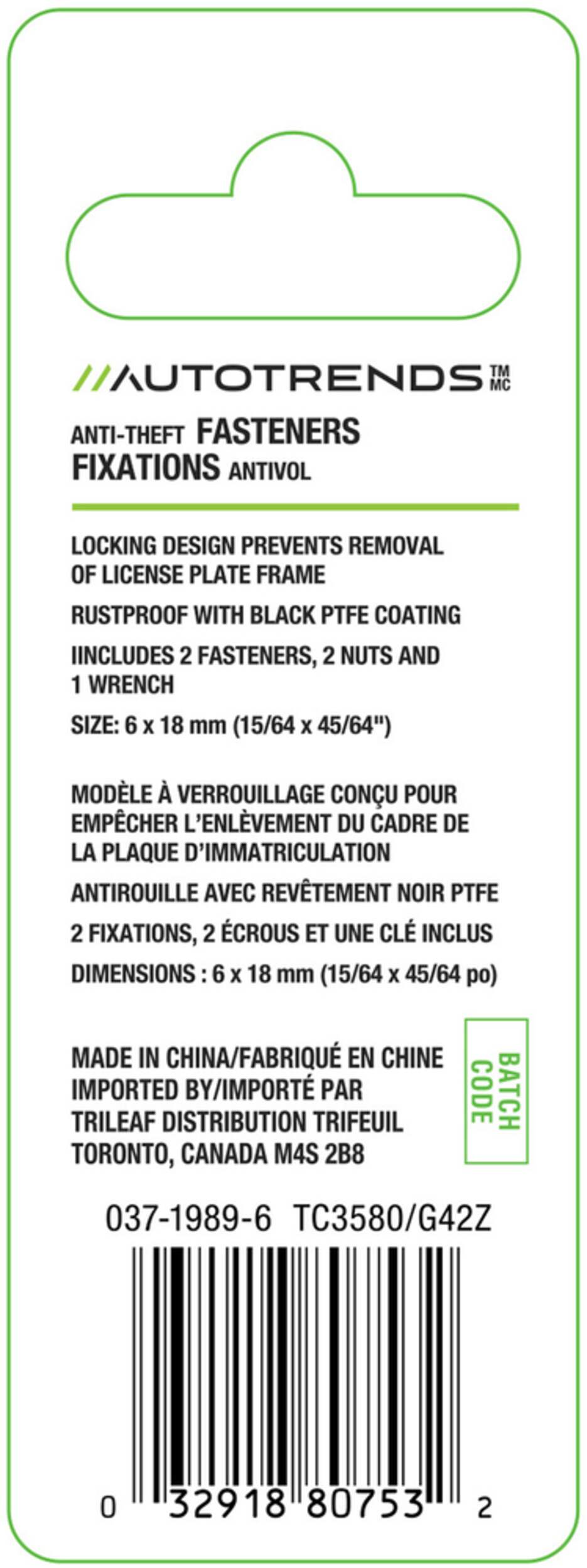 AutoTrends Anti-Theft License Plate Fasteners are designed for use with import vehicles