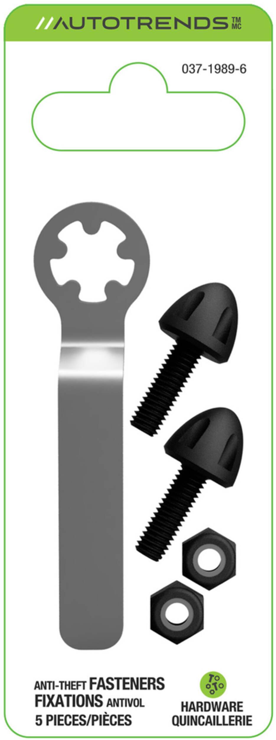 Includes 2 fasteners, 2 self-locking nuts, 1 anti-theft wrench