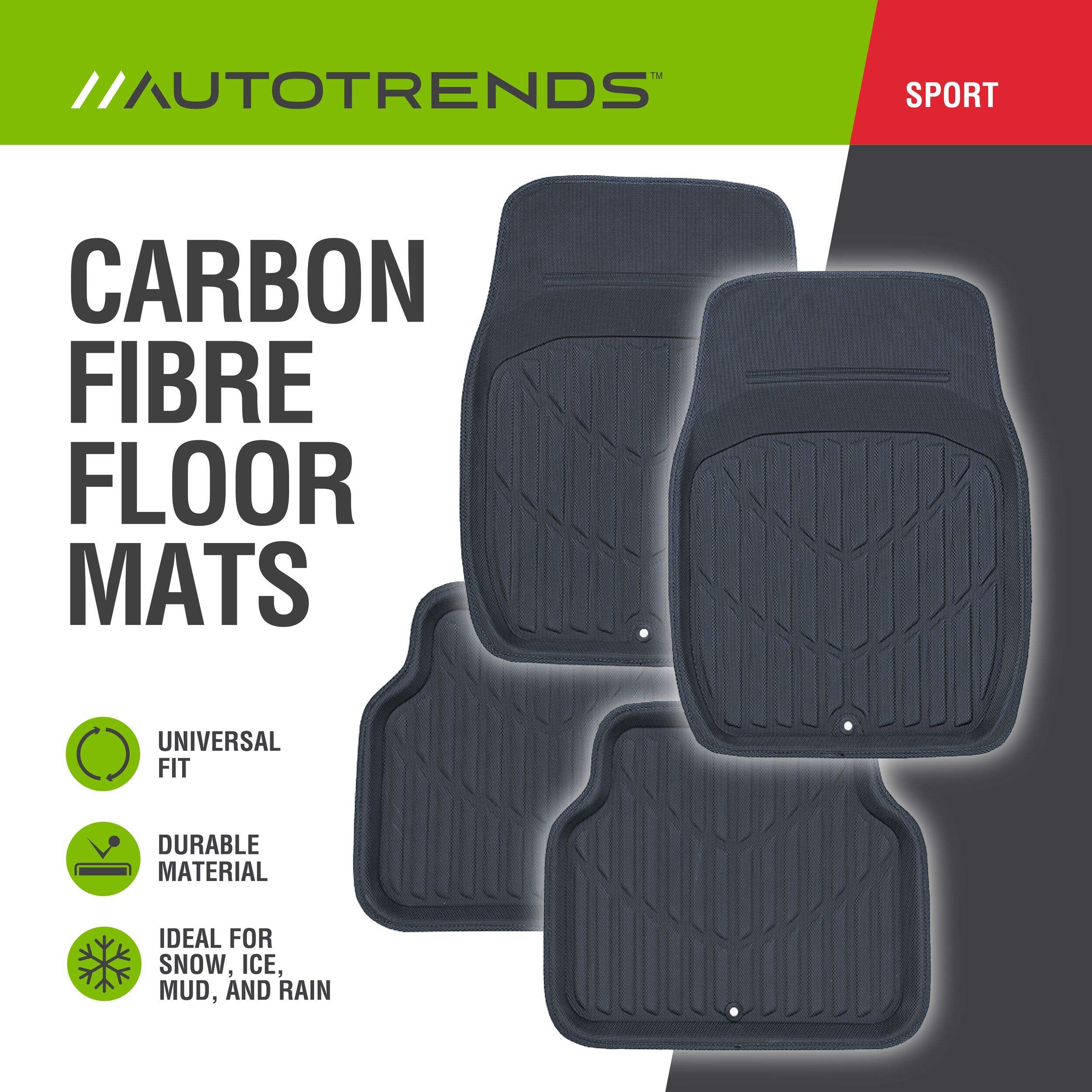 Keep your car neat and fresh with these AutoTrends Carbon Fibre Floor Mats. Made from durable material that also helps prevent odours, these floor mats are designed to catch dirt, debris, spills, water and more, so the carpet in your vehicle stays cleaner for longer. The anti-slip backing keeps these car mats in place for distraction-free driving while the universal design makes for seamless use. Easy to clean and ideal for all weather conditions, these floor mats are a convenient addition to any vehicle.