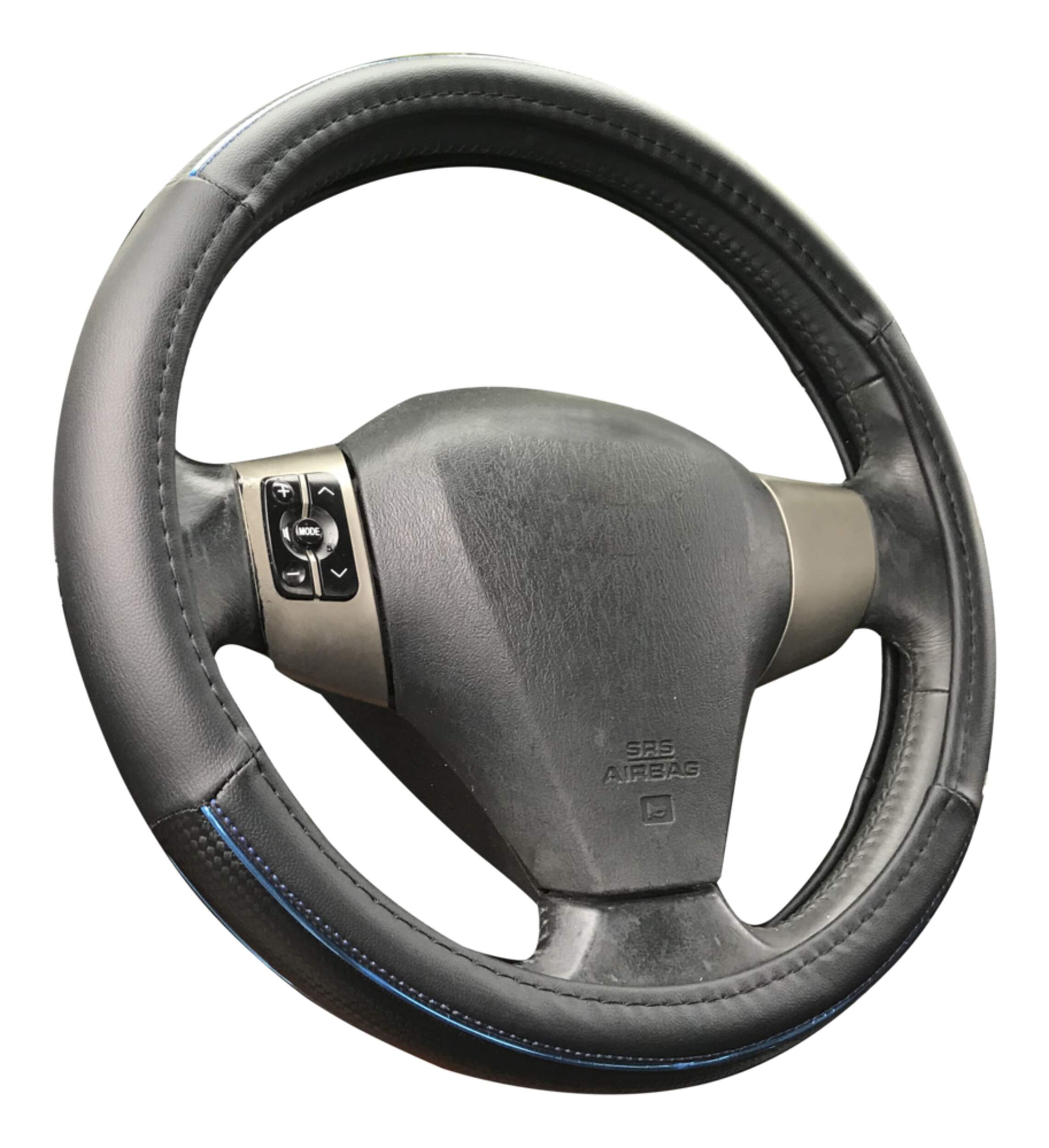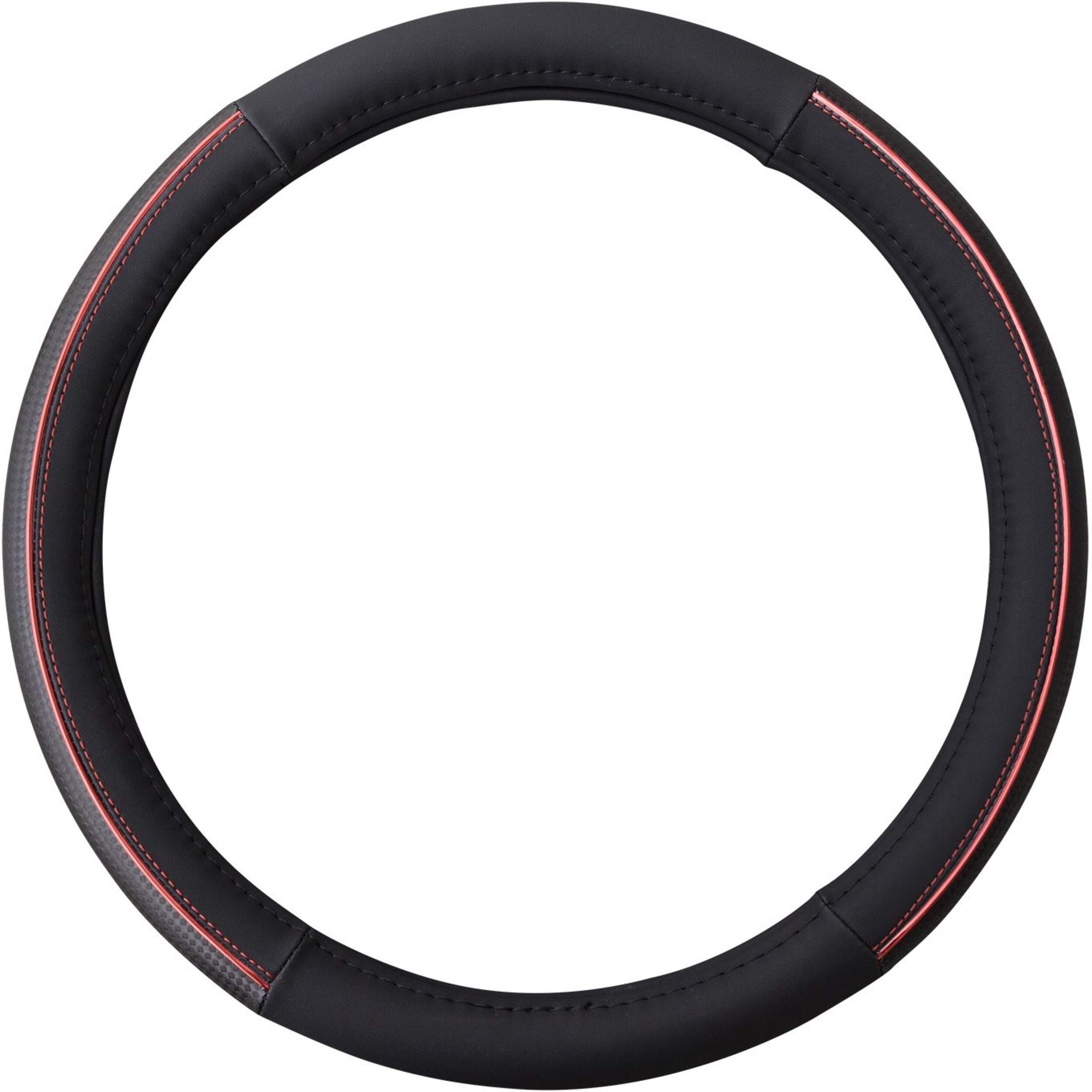 Add comfort and style to your ride with the AutoTrends Carbon Fibre With Metallic Stripe Steering Wheel Cover. This car wheel wrap is designed to keep your steering wheel clean. It ensures that steering wheel remains protected against wear and tear, scratches, and other damages. Made from high-quality carbon fibre material, the steering wrap is both durable and reliable. Its metallic stripe design helps you customise your car's interior. Additionally, your hands remain protected from hot and cold temperatures. This car steering wrap features a universal fit and is ideal for steering wheels with 14.5 to 15.5 inches ( 36.8-39.4 cm) diameter. Easy to install with a simple slip-on design, this steering cover is available in blue or red.