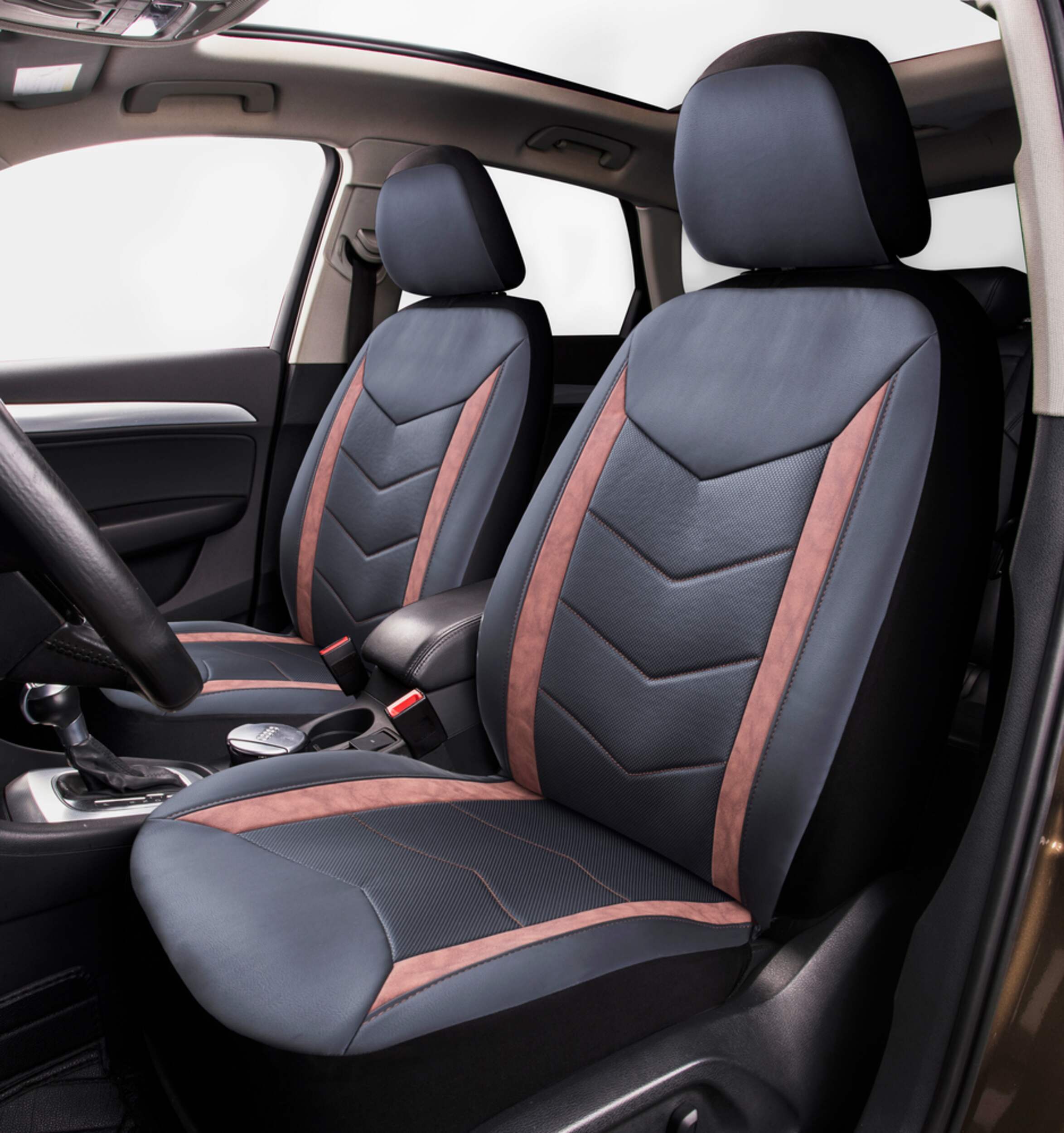 Add elegance and protection to your vehicle with the AutoTrends Premium Faux Leather Chevron Seat Cover pack. This synthetic leather cover is extra durable to provide the ultimate protection for your car seats. With a stylish two-tone colouring and chevron design, the car seat cover instantly transforms the look of your interior. This set of two seat covers provides a universal fit to protect your upholstery.