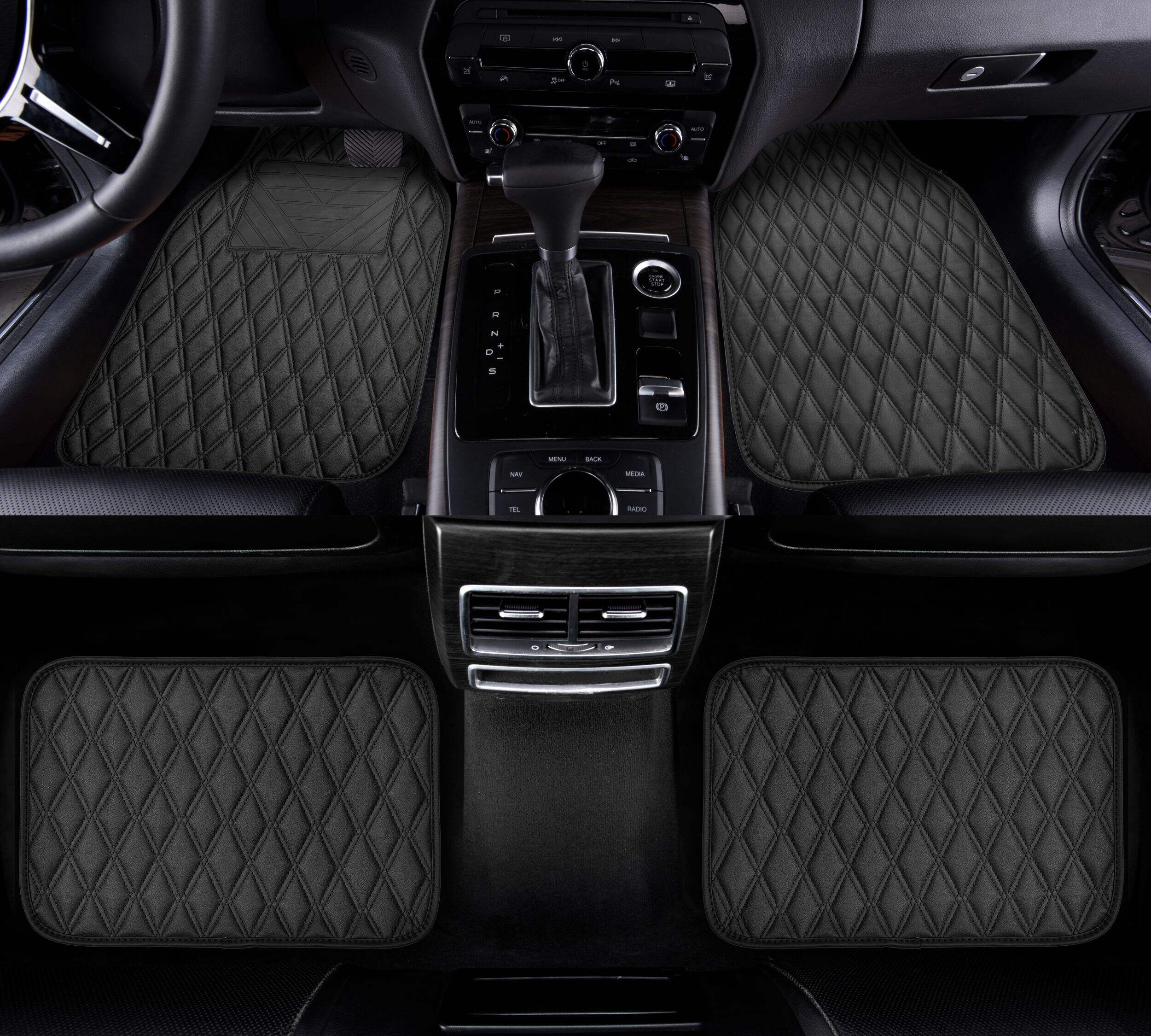 Protect your car’s interior with style using the AutoTrends Quilted Faux Leather Car Floor Mats. These mats offer luxury and practicality with a sleek quilted design. They are lightweight and easy to remove for cleaning, whether it's mud, spills, or water from rainy days. The flexible material easily conforms to your vehicle’s footwells for a snug fit. The set includes two front and two rear mats, making it a complete solution for your vehicle’s interior protection.