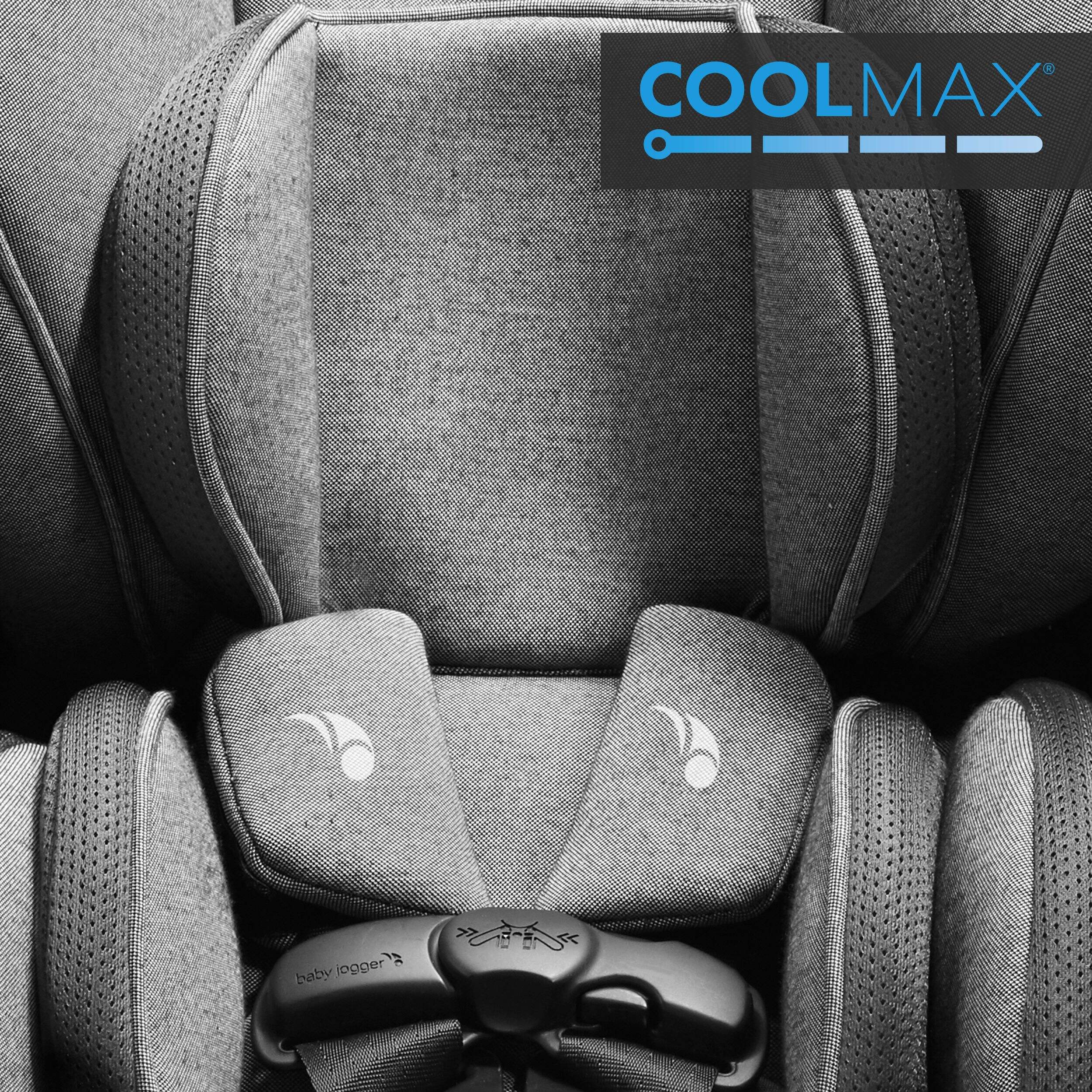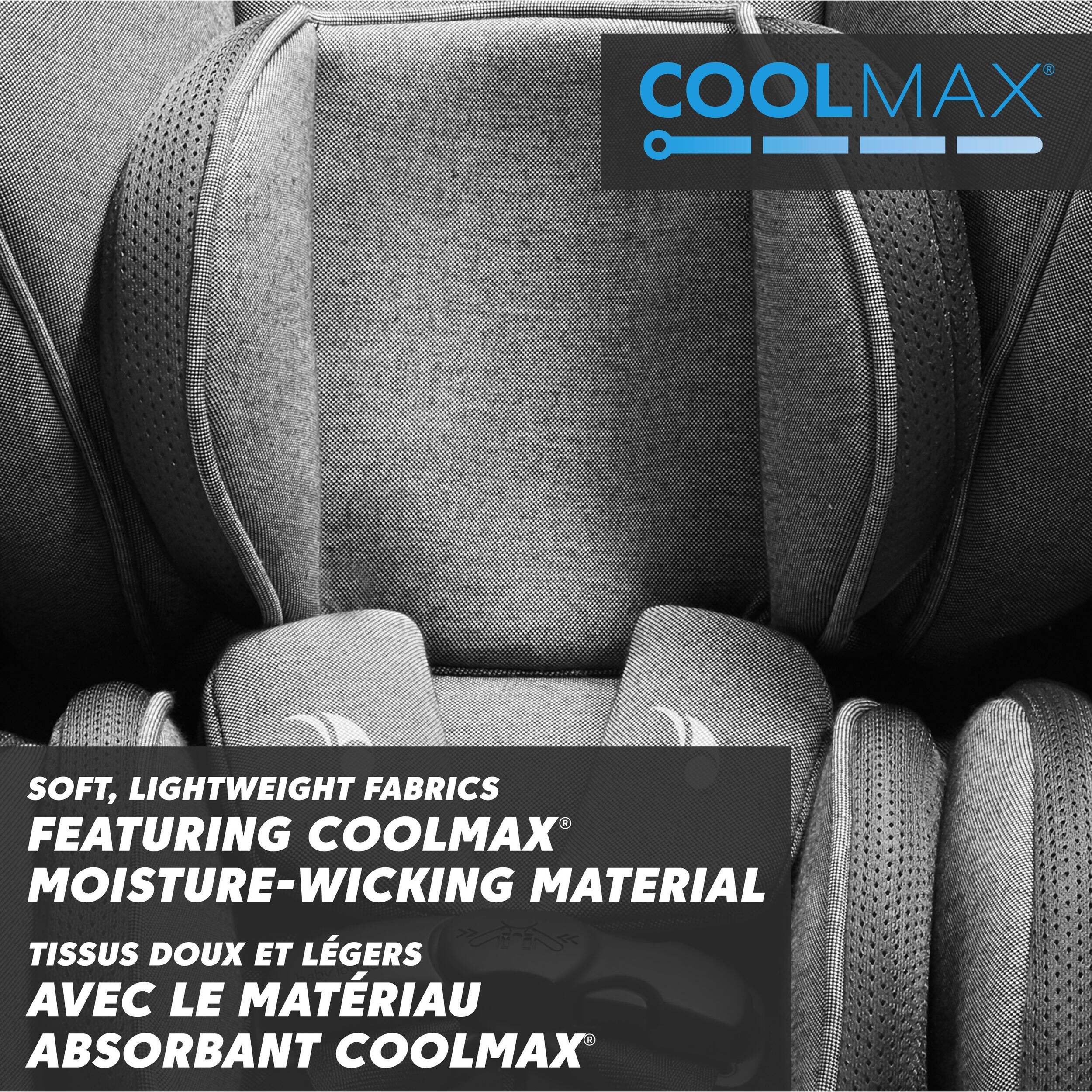 10-position headrest and 5-position recline with a no-rethread harness makes adjusting your seat quick & simple
