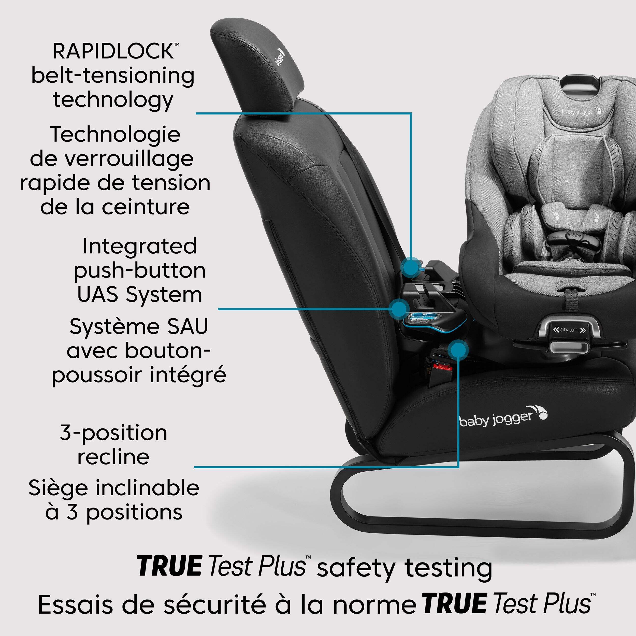 The Baby Jogger® City Turn Rotating Convertible Car Seat in Onyx Black provides a safe and comfortable ride for your child. Featuring easy installation with advanced safety standard, it ensures both comfort and practicality for parents and children alike.
