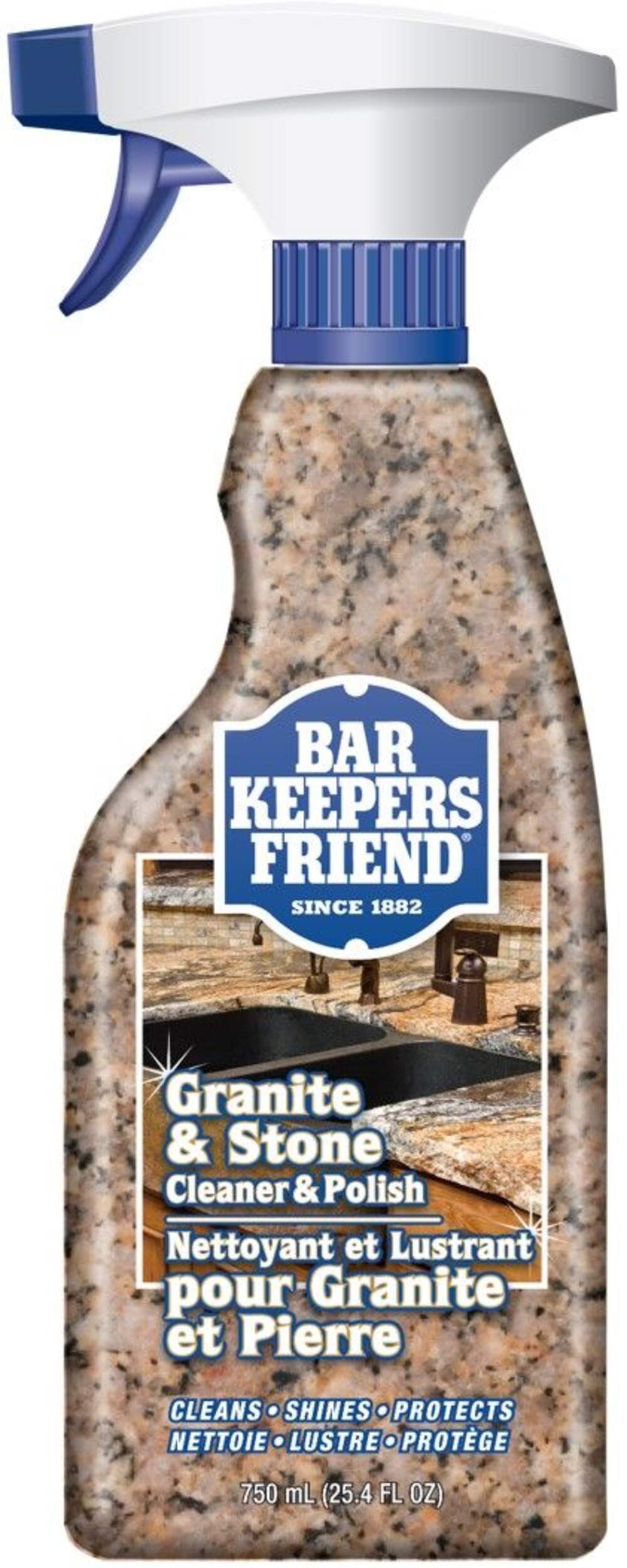 Looking for a way to safely clean your granite or stone countertop? Bar Keepers Friend Granite & Stone Cleaner & Polish is formulated specifically to clean and polish stone without damaging delicate surfaces. Use on smooth, polished stone surfaces including granite, marble, and quartz to clean and enhance the beauty of your natural stone surfaces in one step. Bar Keepers Friend Granite & Stone Cleaner & Polish is a safe alternative to harsh spray cleaners, bleach, and abrasive cleansers. Keep your countertops looking brand-new with BKF’s new product for granite and stone surfaces.