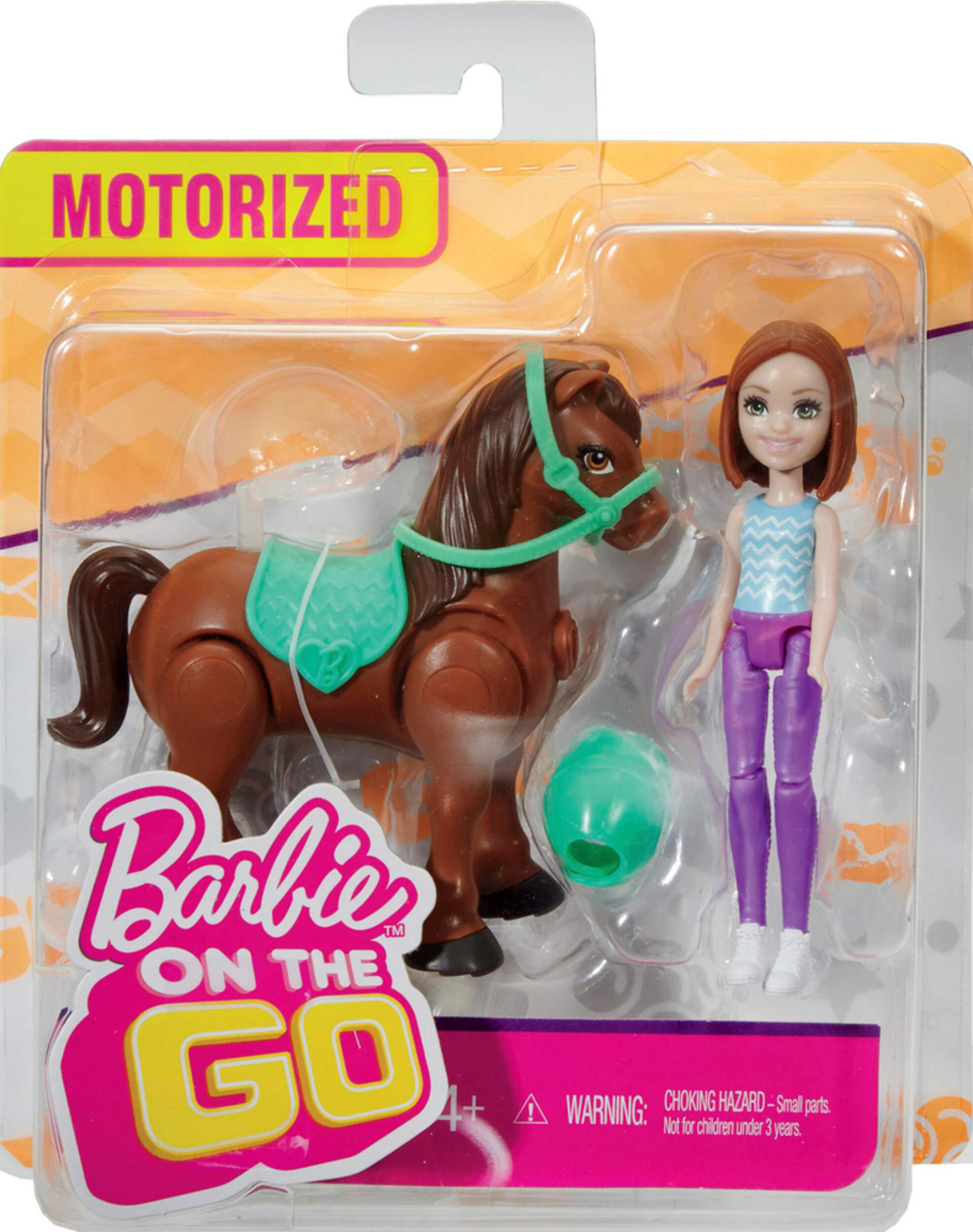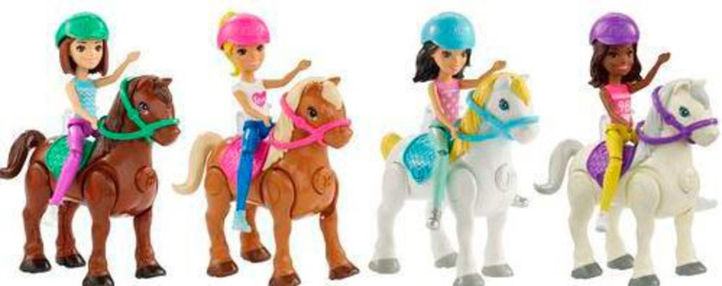 Barbie small dolls are ready to ride with flexible hips and knees that allow them to sit in the saddle and heads that bobble with movement