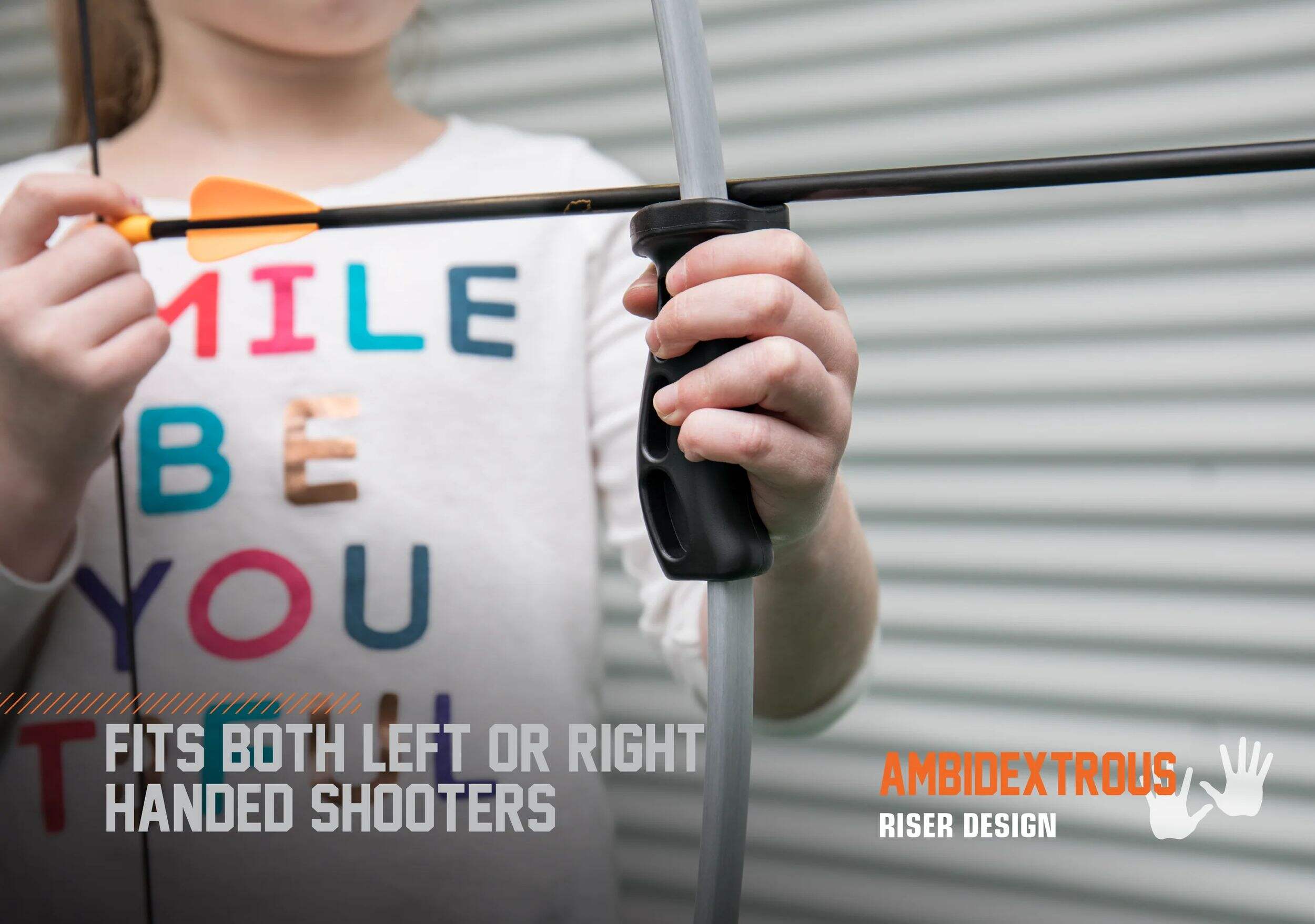 For more than 80 years, Bear Archery has been America's No. 1 brand in youth and institutional archery. The Wizard Youth Bow Set comes ready to shoot with two Safetyglass™ arrows. The set also includes a finger tab, armguard, and arrow quiver. The recommended age range for children is 5 to 10 years old. The Wizard is a 44-inch long ambidextrous bow that features durable composite limbs and up to 18 lb. draw weight and up to 24-inch draw length range. It's never too early to share Bear with the next generation of archers.