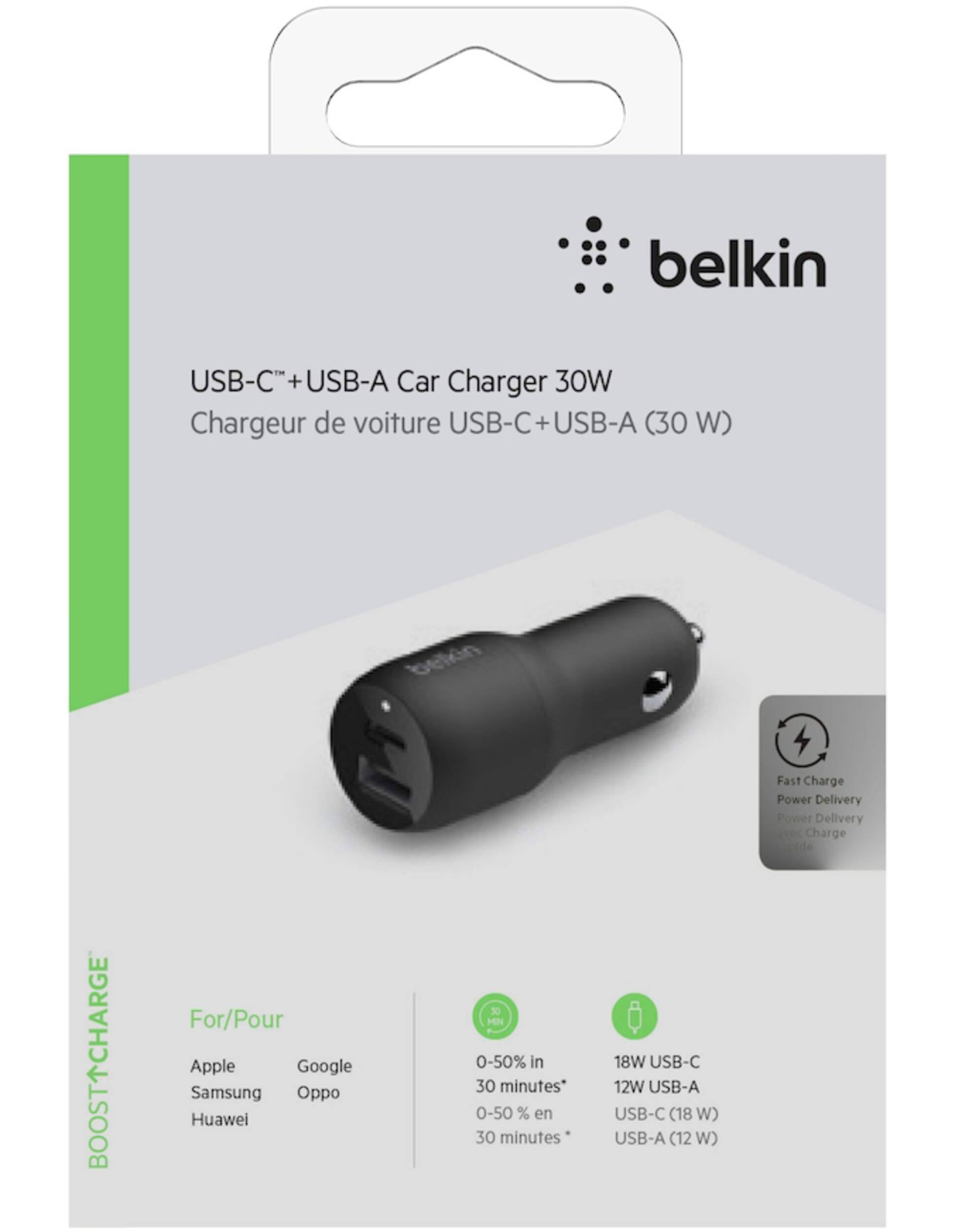 Charge 0-50% in 30 minutes for most fast charge devices using the USB-C port