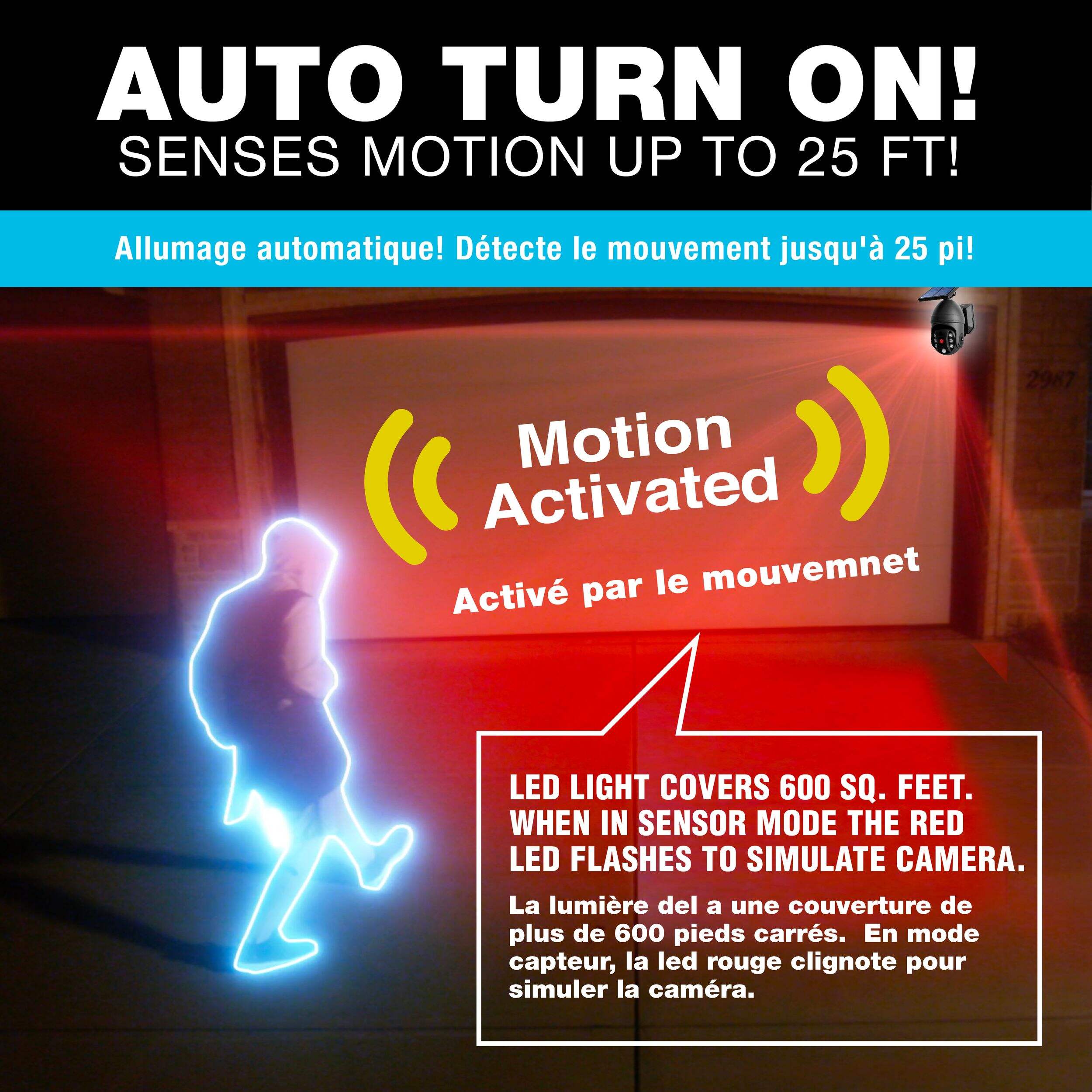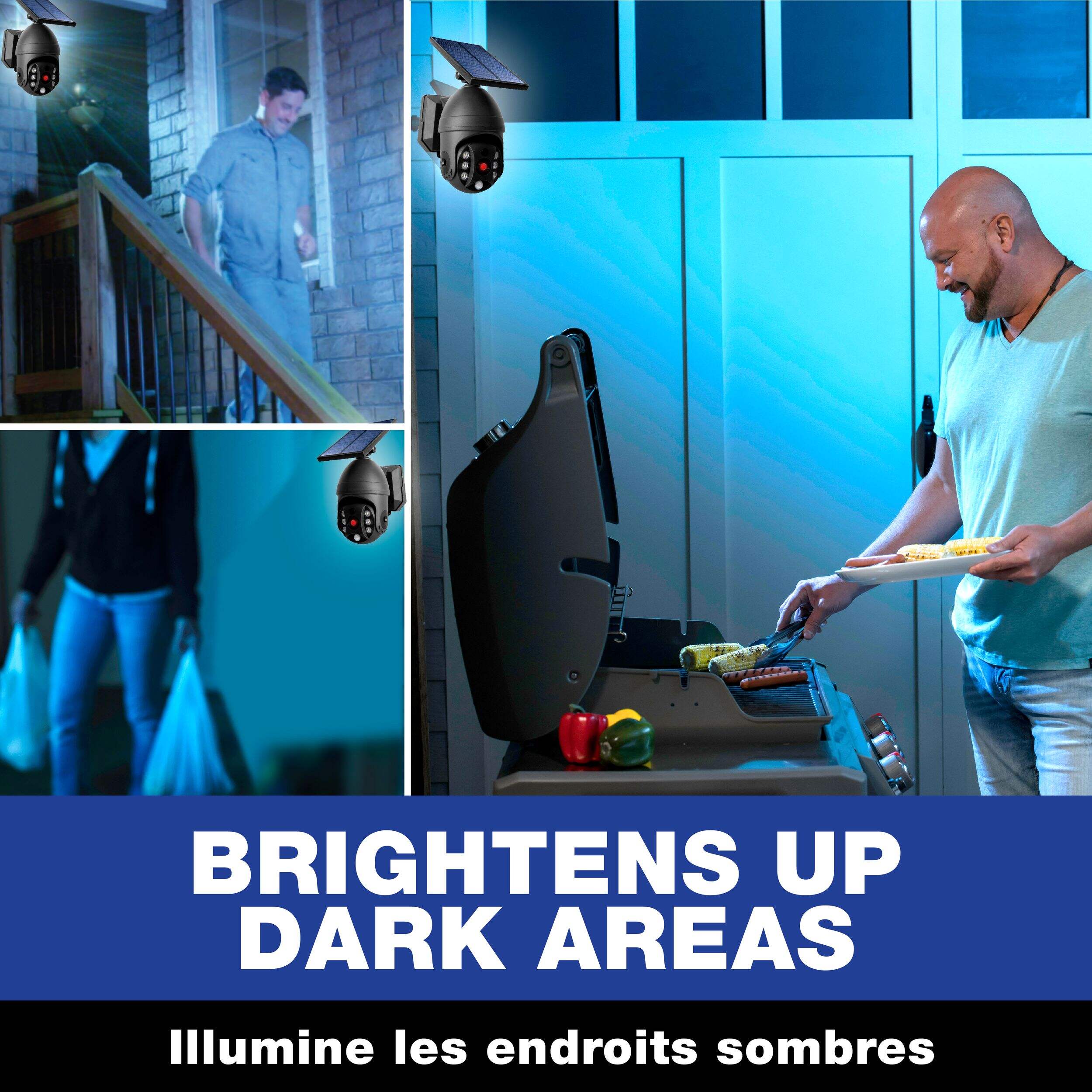 The Bell & Howell Bionic Spotlight is a motion-activated solar security light that installs easily (no wiring required). This innovative light absorbs solar energy during the day to power the built-in LED bulb, then automatically turns on to illuminate dark areas when motion is detected at night. Resembling a security camera, this weather-resistant bionic spotlight deters intruders while providing bright, renewable lighting. With a swiveling head that follows movement, this solar-powered LED light from Bell & Howell is the smart choice for energy-efficient home security and visibility.