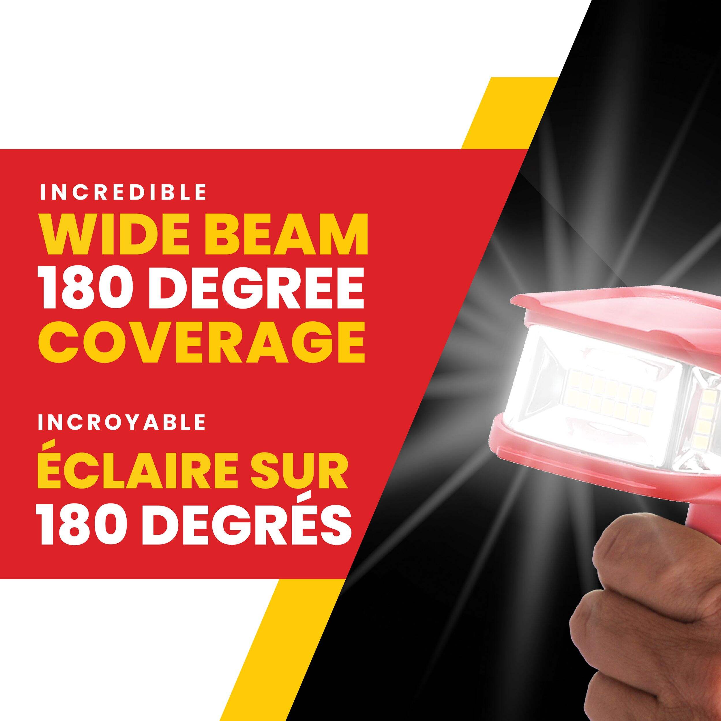 Bell & Howell's wide beam flashlight casts a flood of bright red light wherever you point it. Its 650 lumens come from 24 super bright LEDs, and the 90-degree pivoting head lets you direct the light exactly where you need it. The magnetic base makes it perfect for mechanics and garage work, while the hanging hook keeps it within reach. The easy grip handle ensures you'll keep a hold of it, even when your hands are oily.