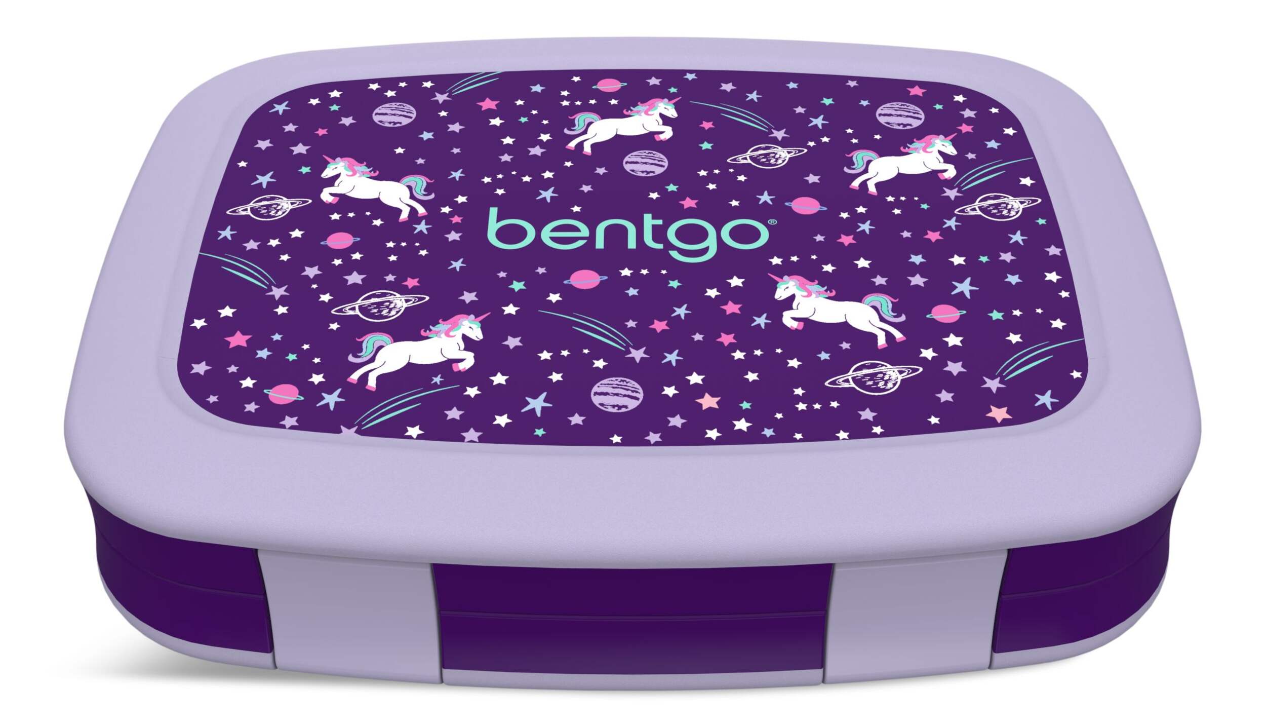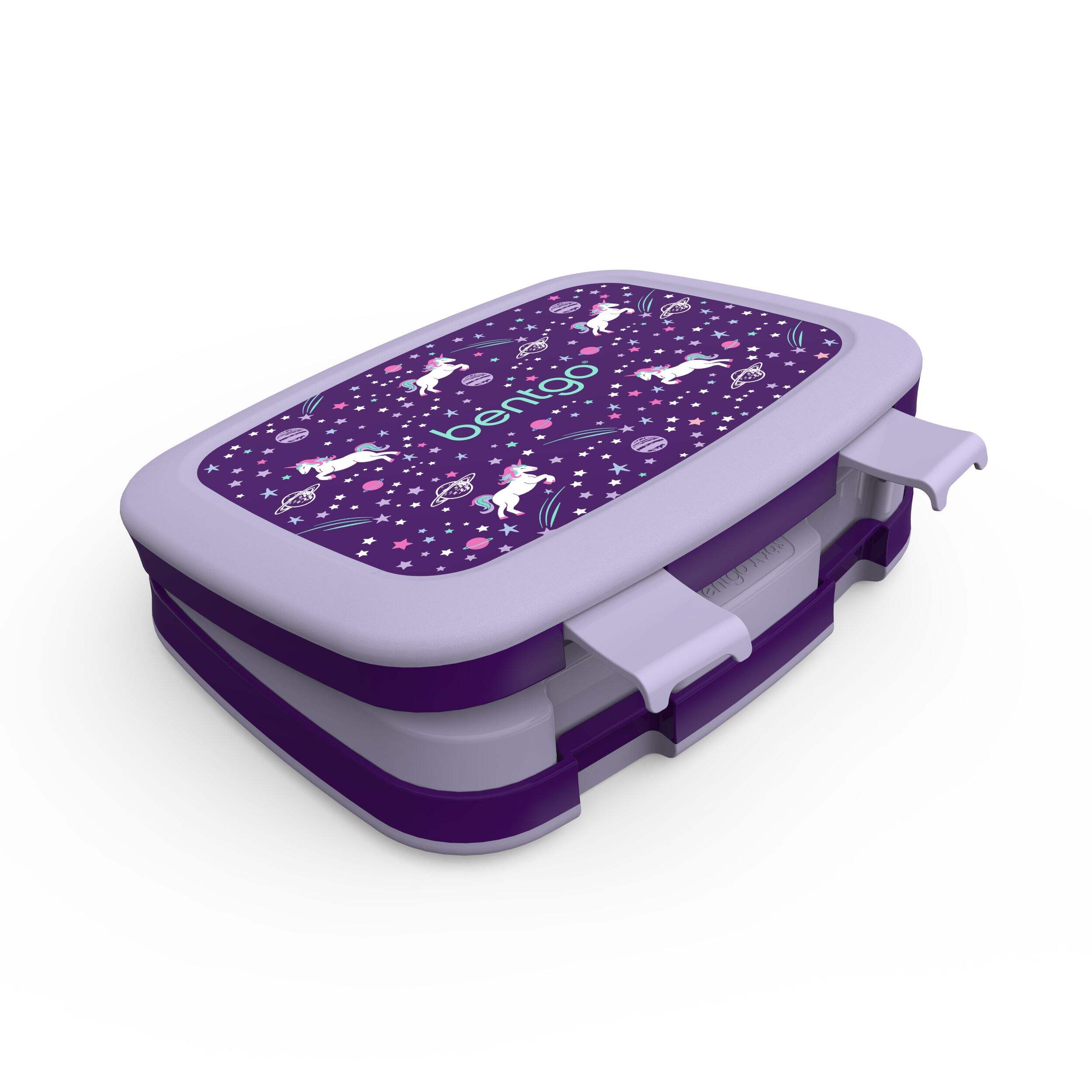 The Bentgo Kids' Prints Leak-Proof Lunch Box Food Storage Container features a vibrant unicorn print that kids adore. This bento-style lunch box boasts a leak-proof design to prevent spills and keep food fresh. The removable inner containers allow you to pack different foods separately, while the microwave and dishwasher safe construction ensures easy cleaning.