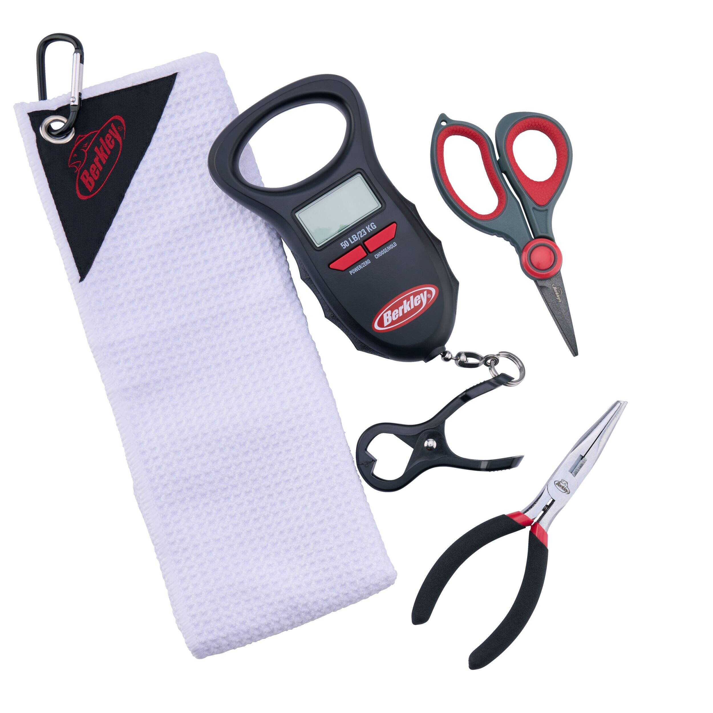 The Berkley® Angler’s Essentials Tool Kit provides anglers with the tools all anglers need when out on the water. The 50lb Digital Scale allows fish to be safely clipped onto the scale then weighed. The XCD Scissors feature stainless steel blades with ergonomic co-molded handle that is excellent for cutting braided and nylon fishing line. The chrome plated 6in pliers make for easy hook removal OR split ring and hook changes.