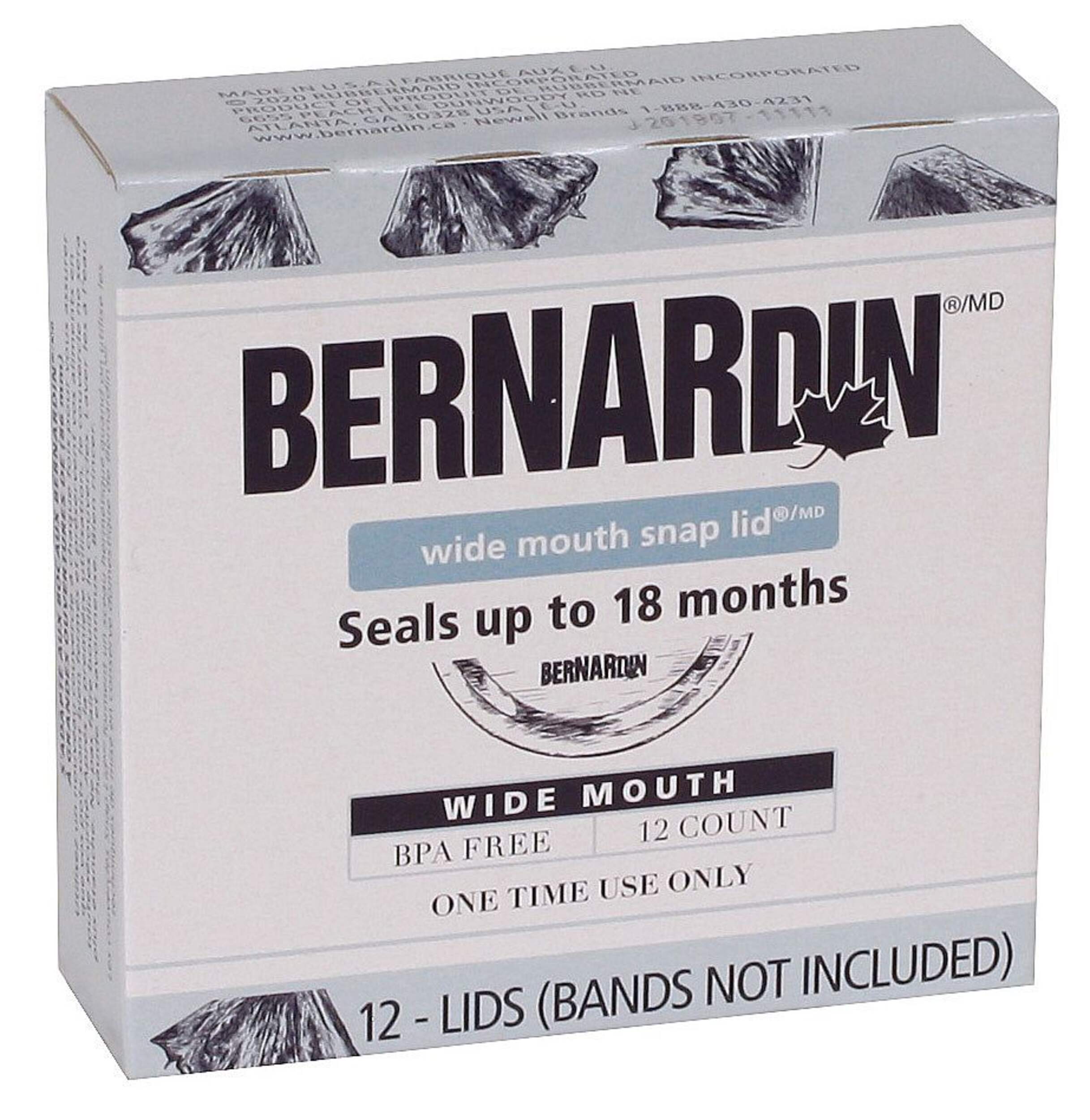 Keep your foods freshly preserved with Bernardin Wide Mouth Mason Jar Lids. Compatible with all Bernardin Wide Mouth glass Mason jars, these canning jar lids offer the sealing quality that canners have trusted for generations, ensuring no oxygen gets into the canning jar so your food remains preserved just the way you created it. Whether you're preserving jam to enjoy for long periods of time or storing freshly made salad dressing for the coming week, Bernardin Mason jar lids seal in freshness to keep your food tasting great. These metal Mason jar lids are BPA-free. When canning, lids are for one-time use only.