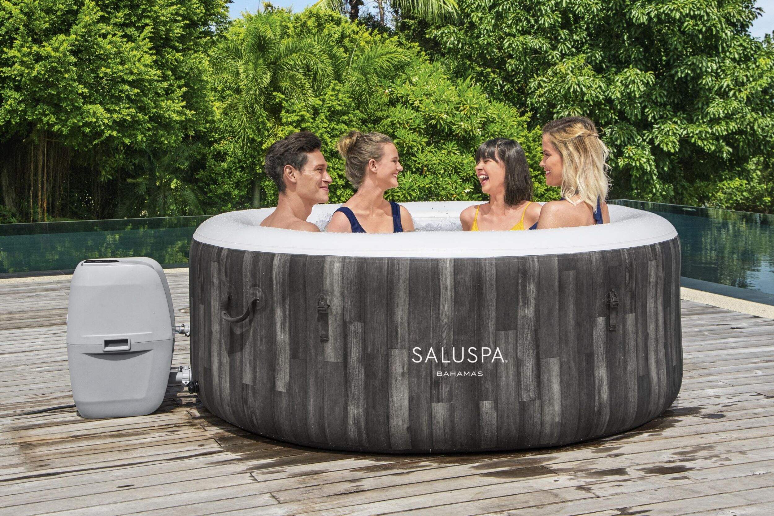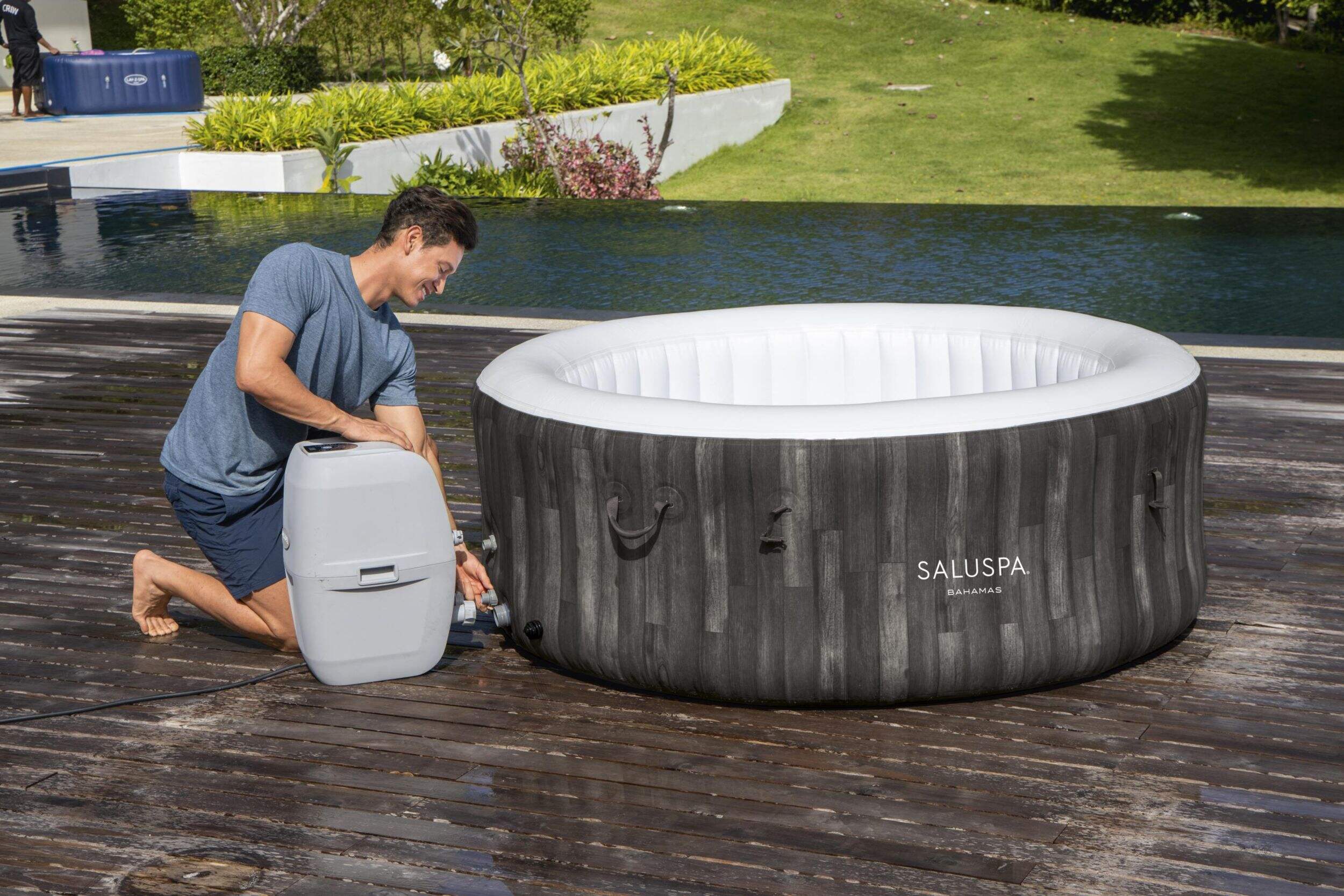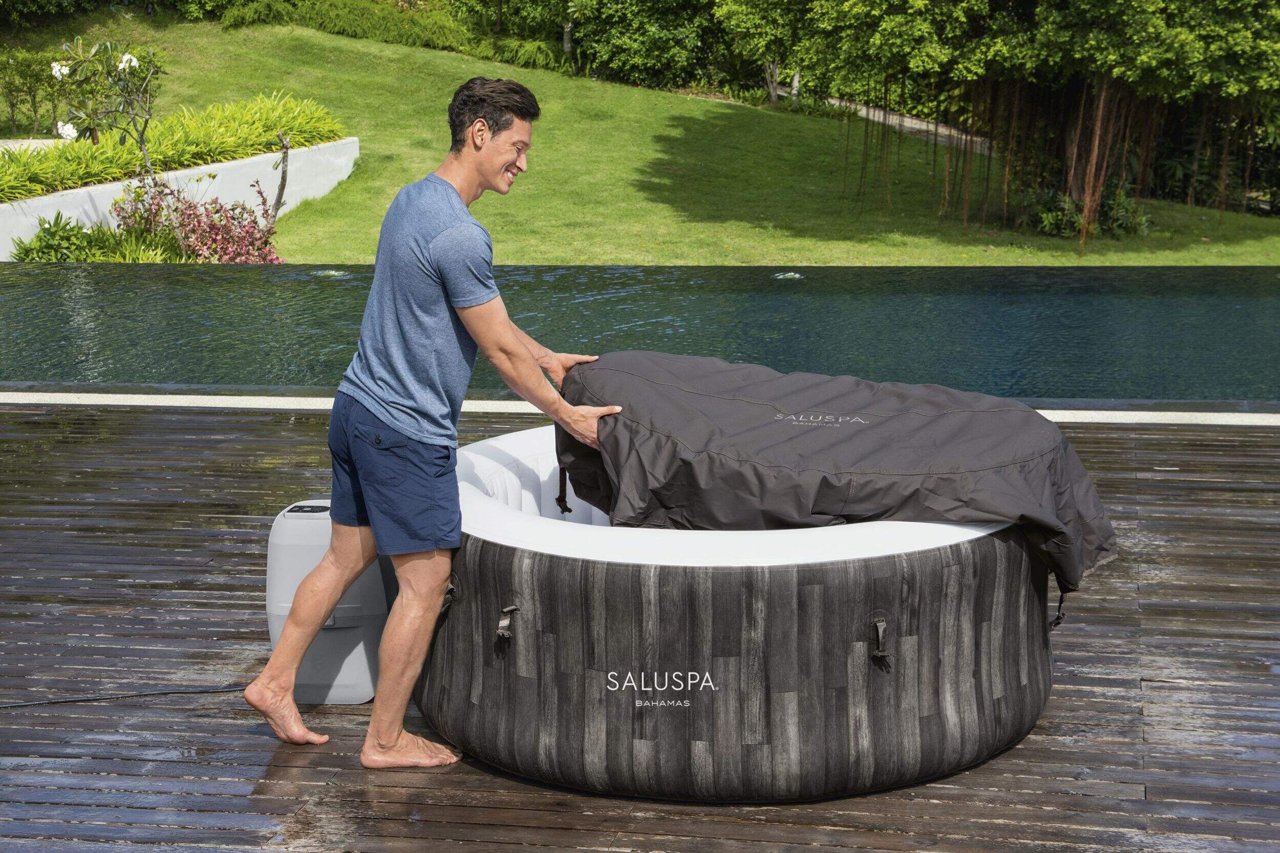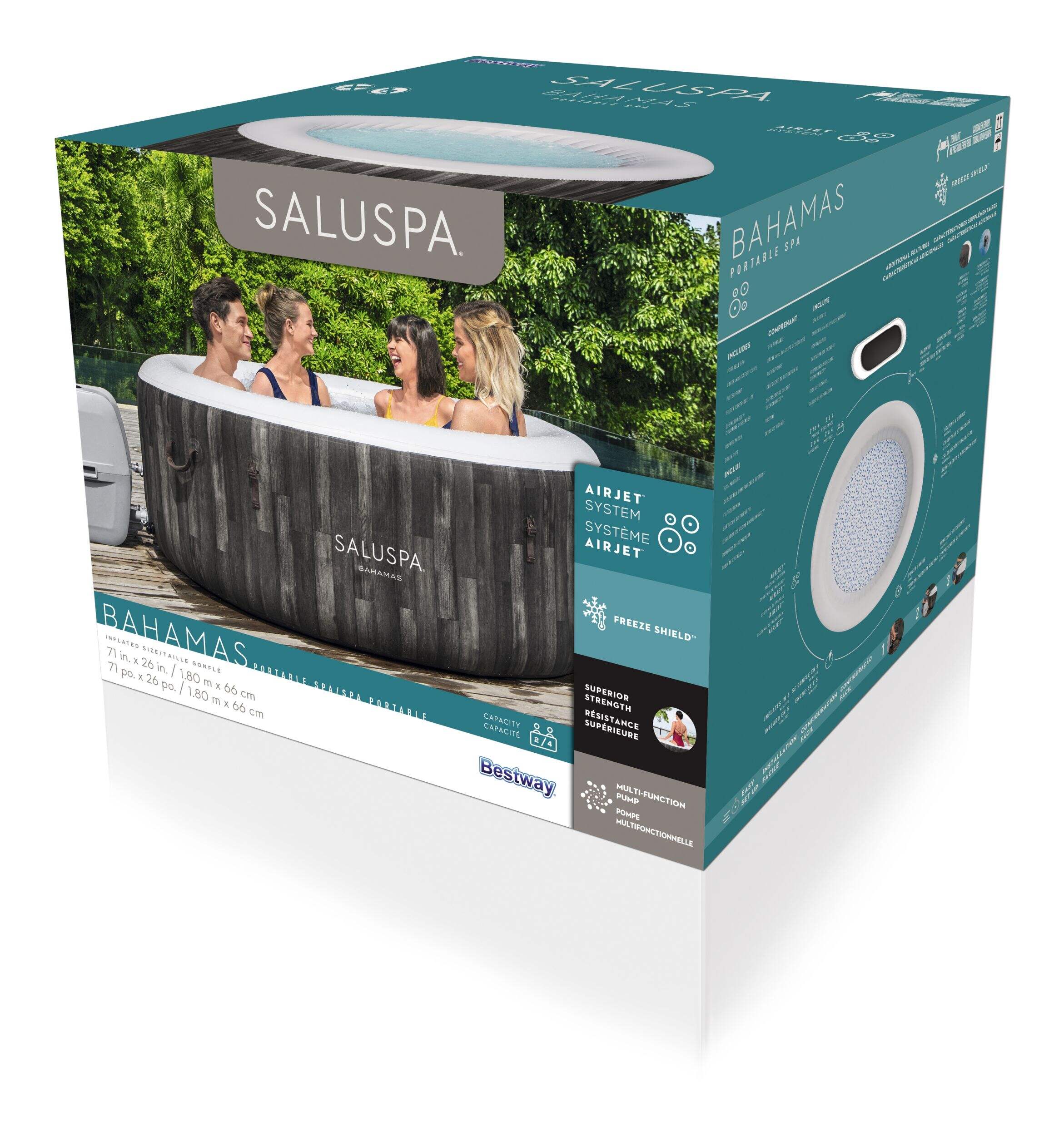 The Bestway SaluSpa Bahamas Round Inflatable Spa offers a relaxing and convenient way to enjoy a spa experience at home. With 120 powerful jets, this inflatable spa provides soothing hydrotherapy for up to 4 adults. Measuring 71 x 26-in, it’s compact yet spacious, perfect for smaller outdoor spaces. The durable, easy-to-set-up design includes a digital control panel, allowing you to adjust the temperature and jets effortlessly for optimal relaxation.