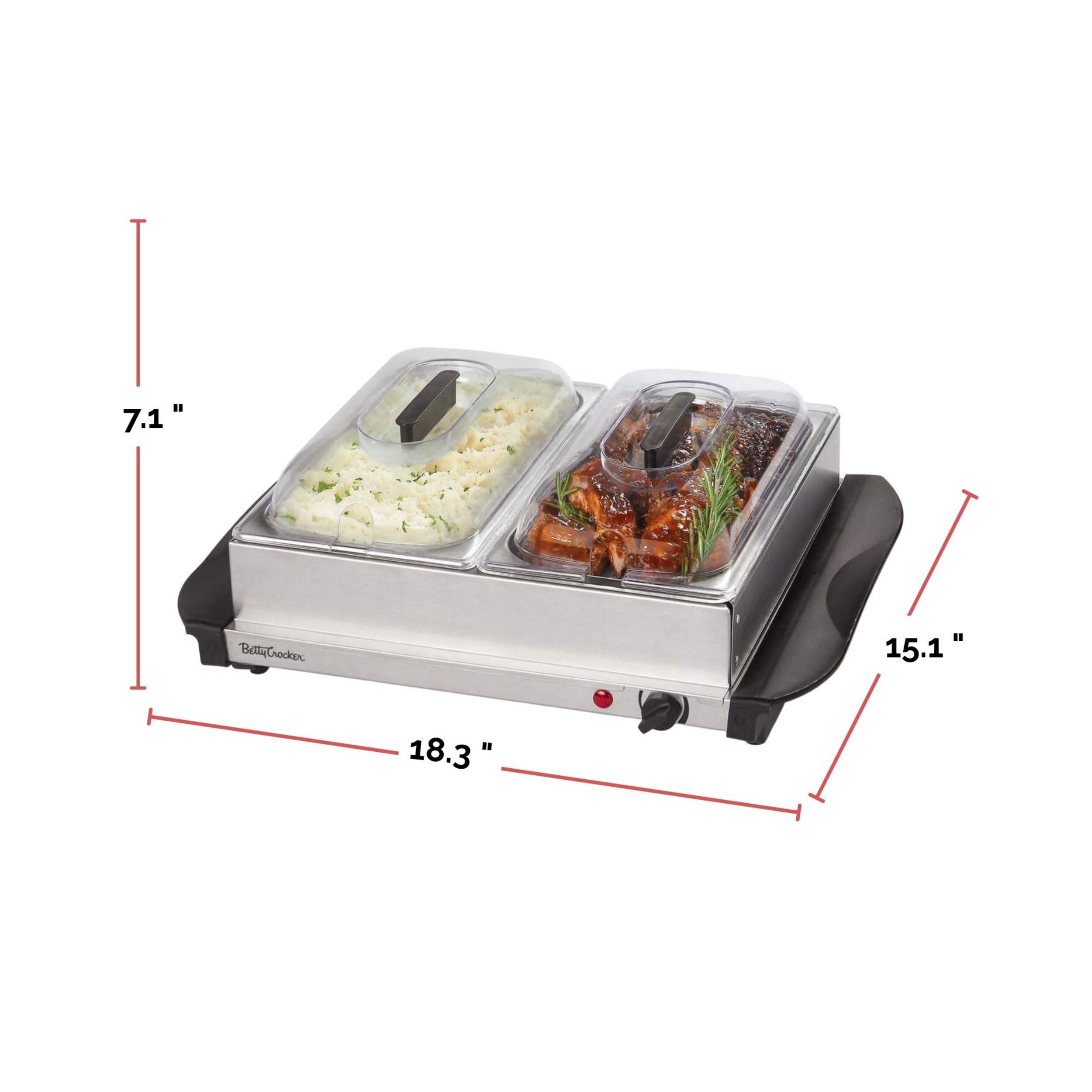 The Betty Crocker Buffet Server & Warming Tray allows you to keep food at the perfect temperature for serving. This elegant tray is designed with adjustable heat control, making it easy to maintain an ideal warmth level for delicious dishes. Crafted from durable materials, this warming tray all but guarantees long-lasting performance that can elevate your hosting with a sophisticated appearance.