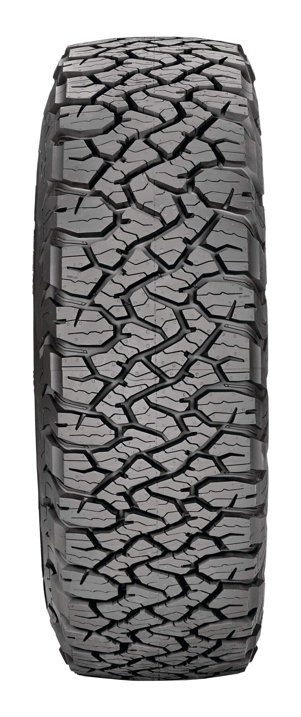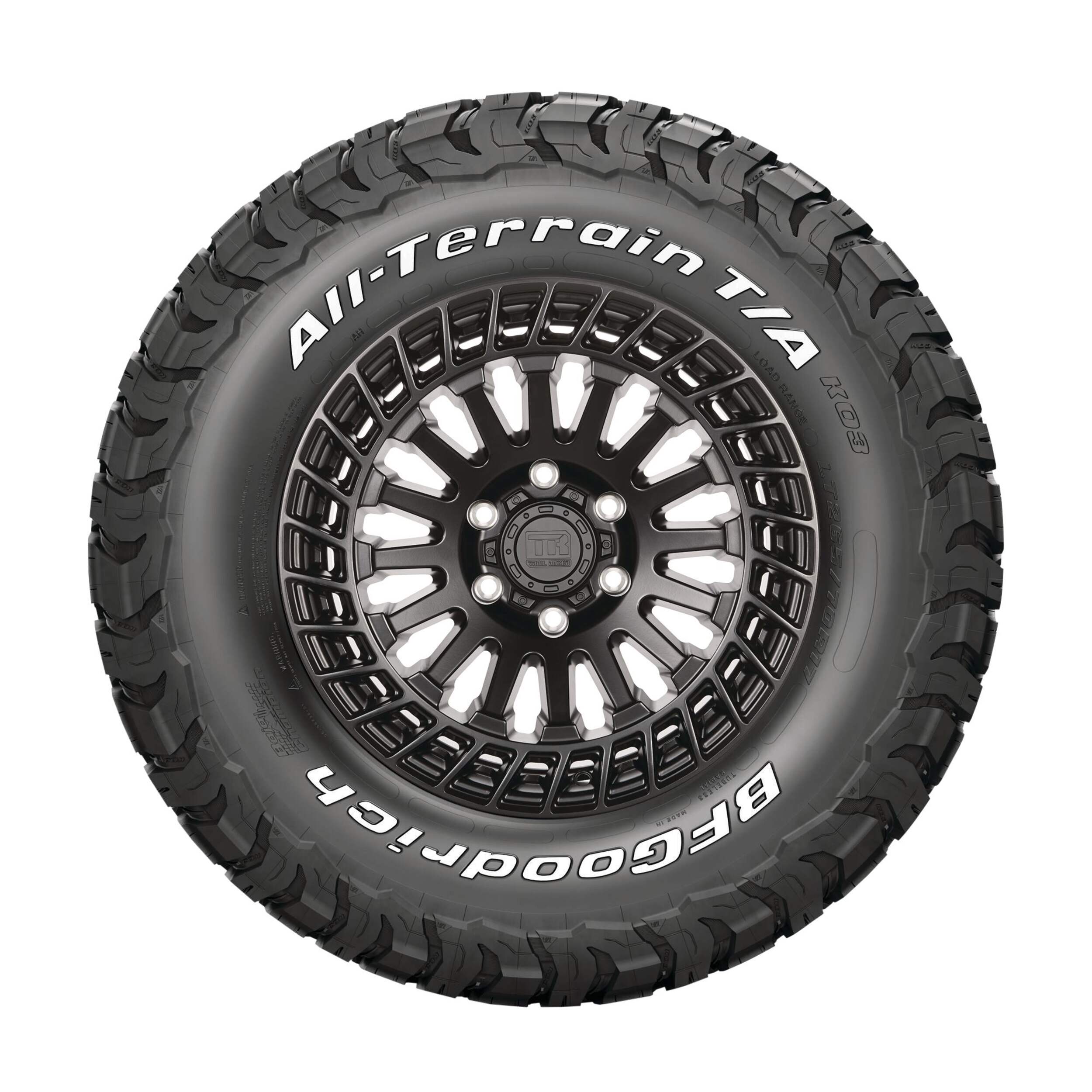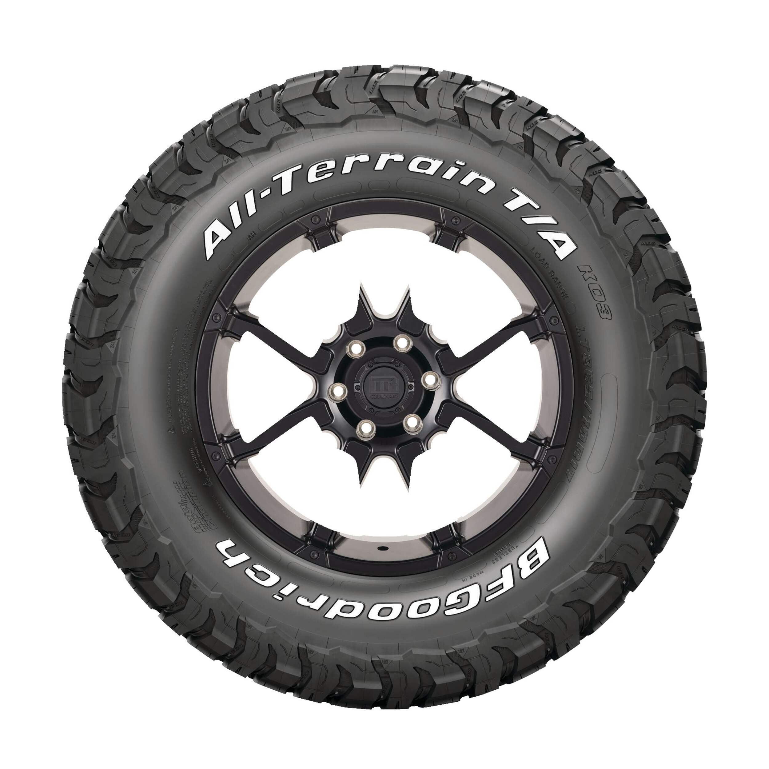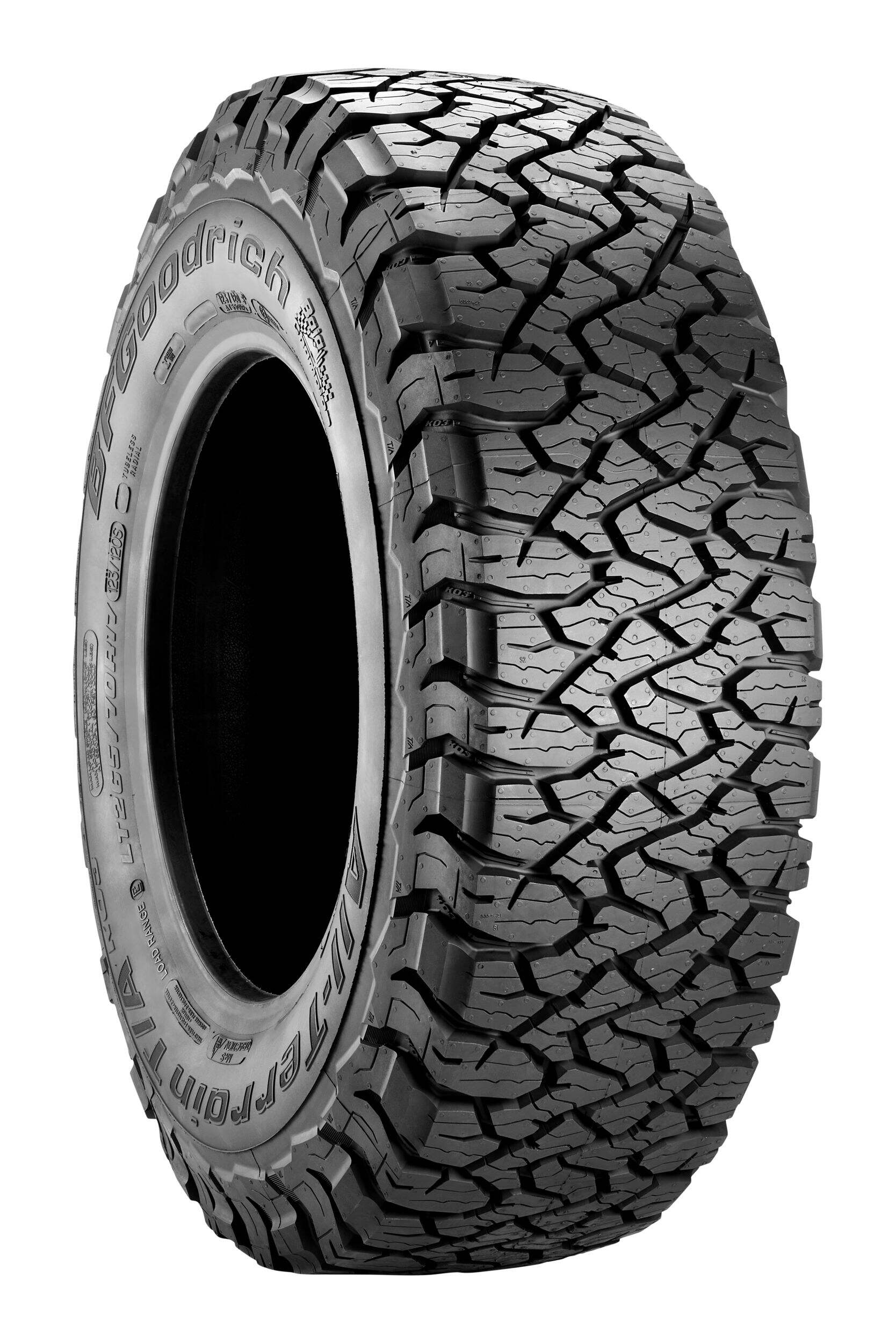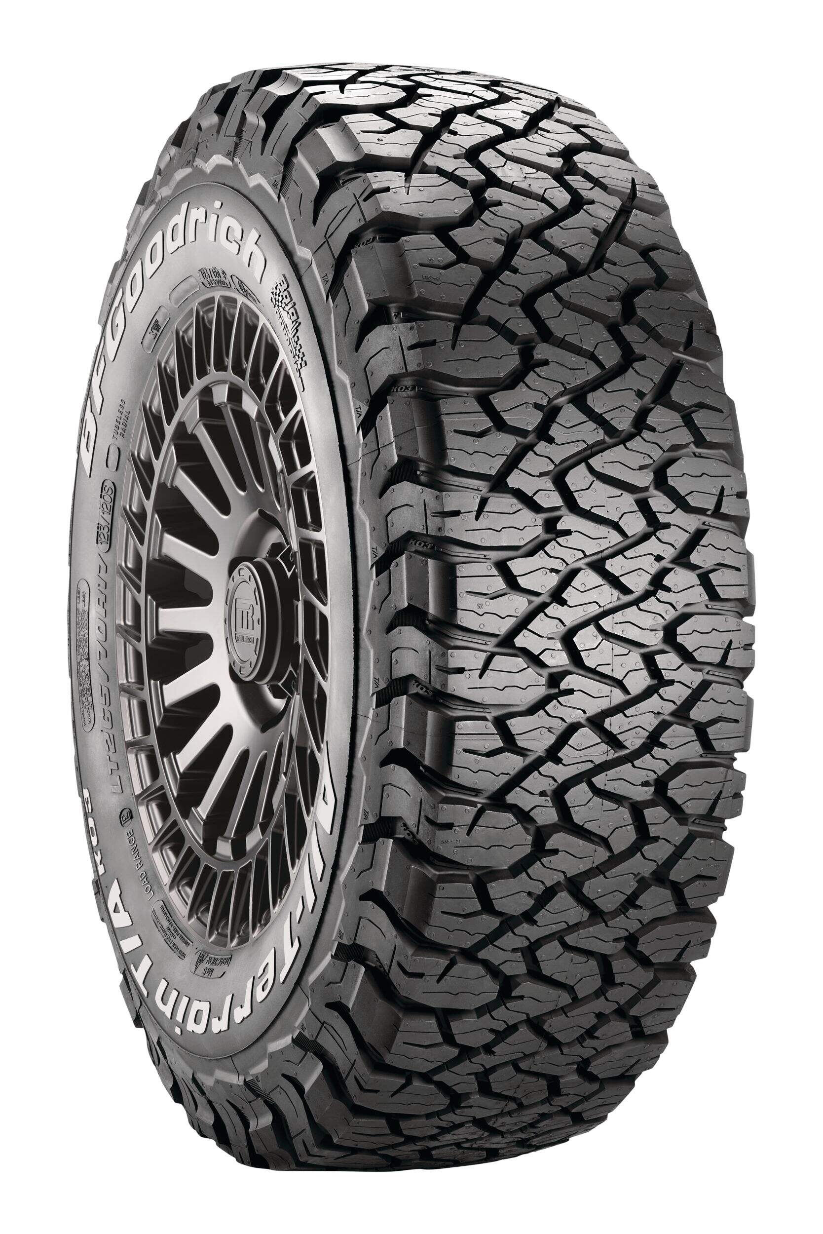 BFGoodrich KO3 tires feature a reformulated cut-, chip- and tear-resistant tread compound for delivering outstanding durability, improved wear-life and traction in all weather conditions, even light snow. The tires meet the industry's severe snow service requirements and are branded with the three-peak mountain snowflake (3PMSF) symbol.