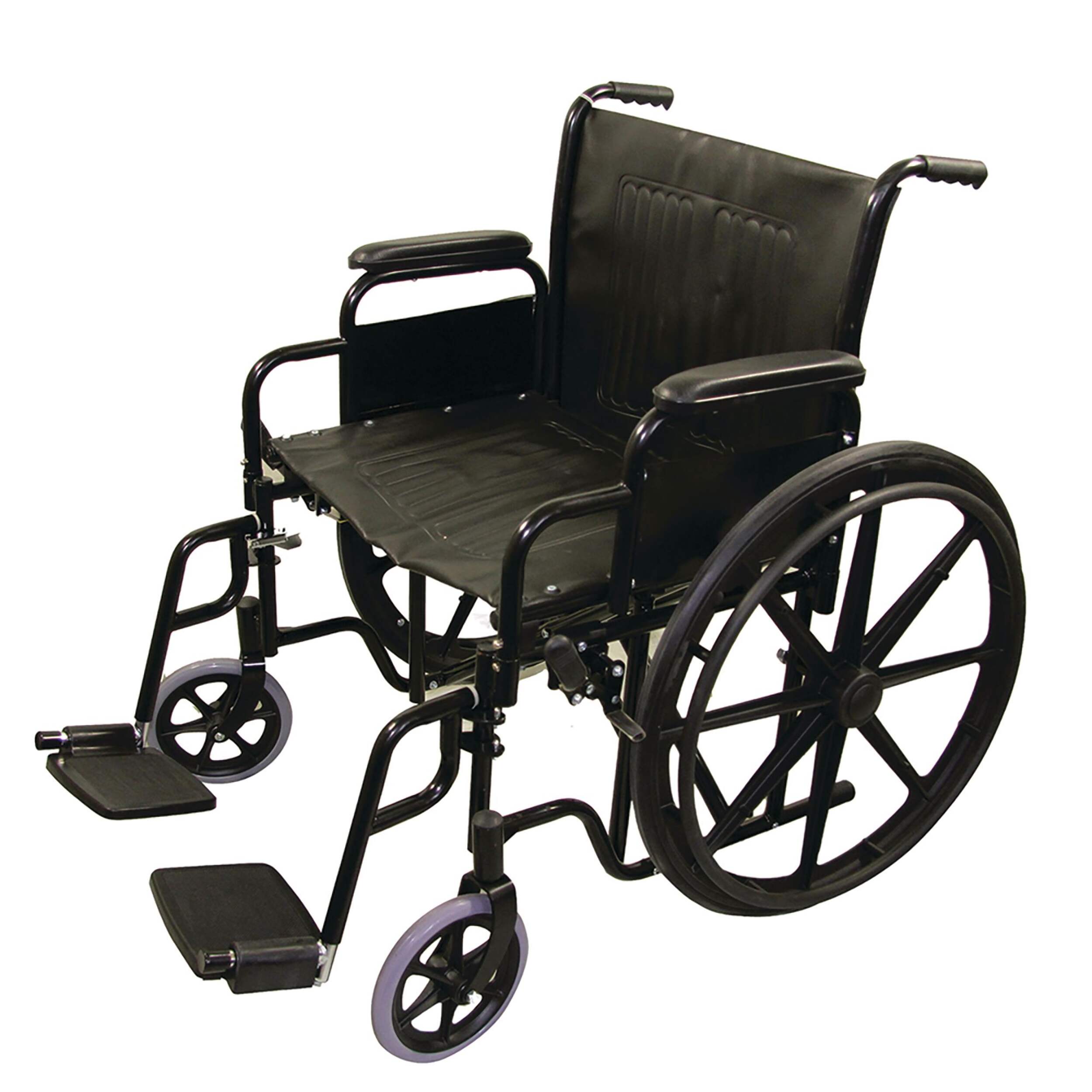 This heavy duty bariatric wheelchair helps make life a bit easier, with a tough steel folding frame to handle weights up to 500 lbs. The removable arm and footrests allow for easy transfers in and out, while the size 22 inch width accommodates larger frames. The height adjustable seat and solid wheels with wide tread mean you'll go over bumps with ease. A no-nonsense chair for no-nonsense mobility.